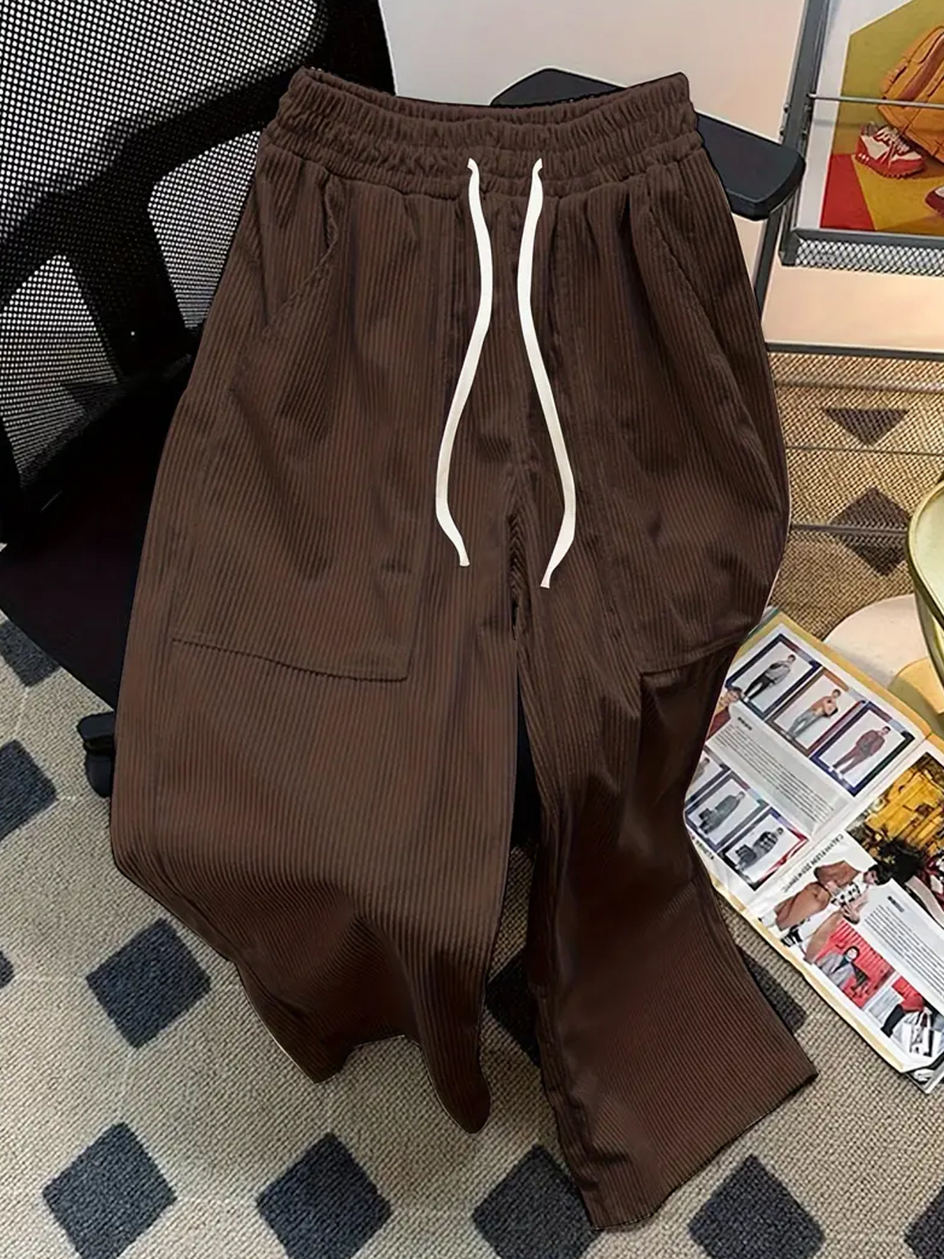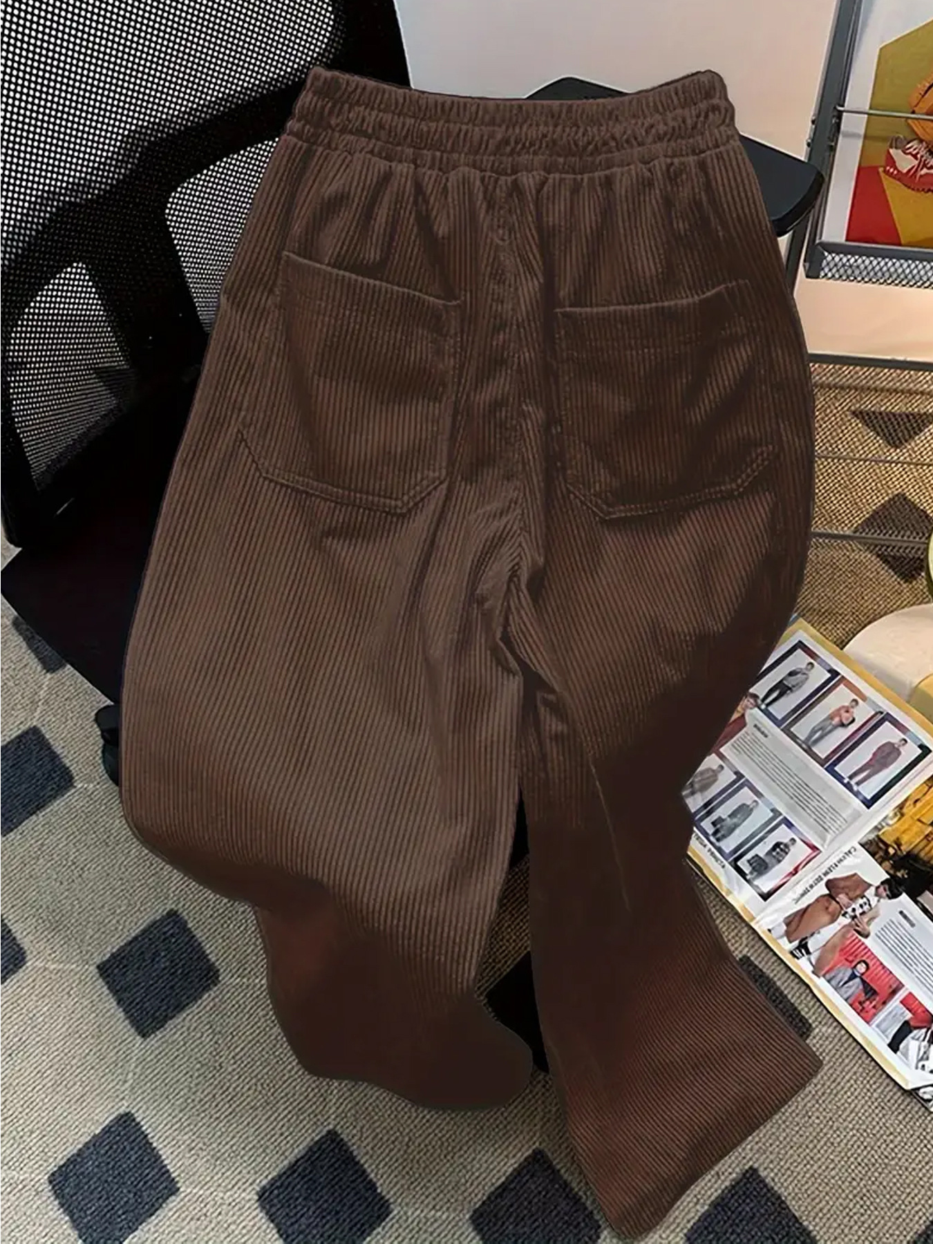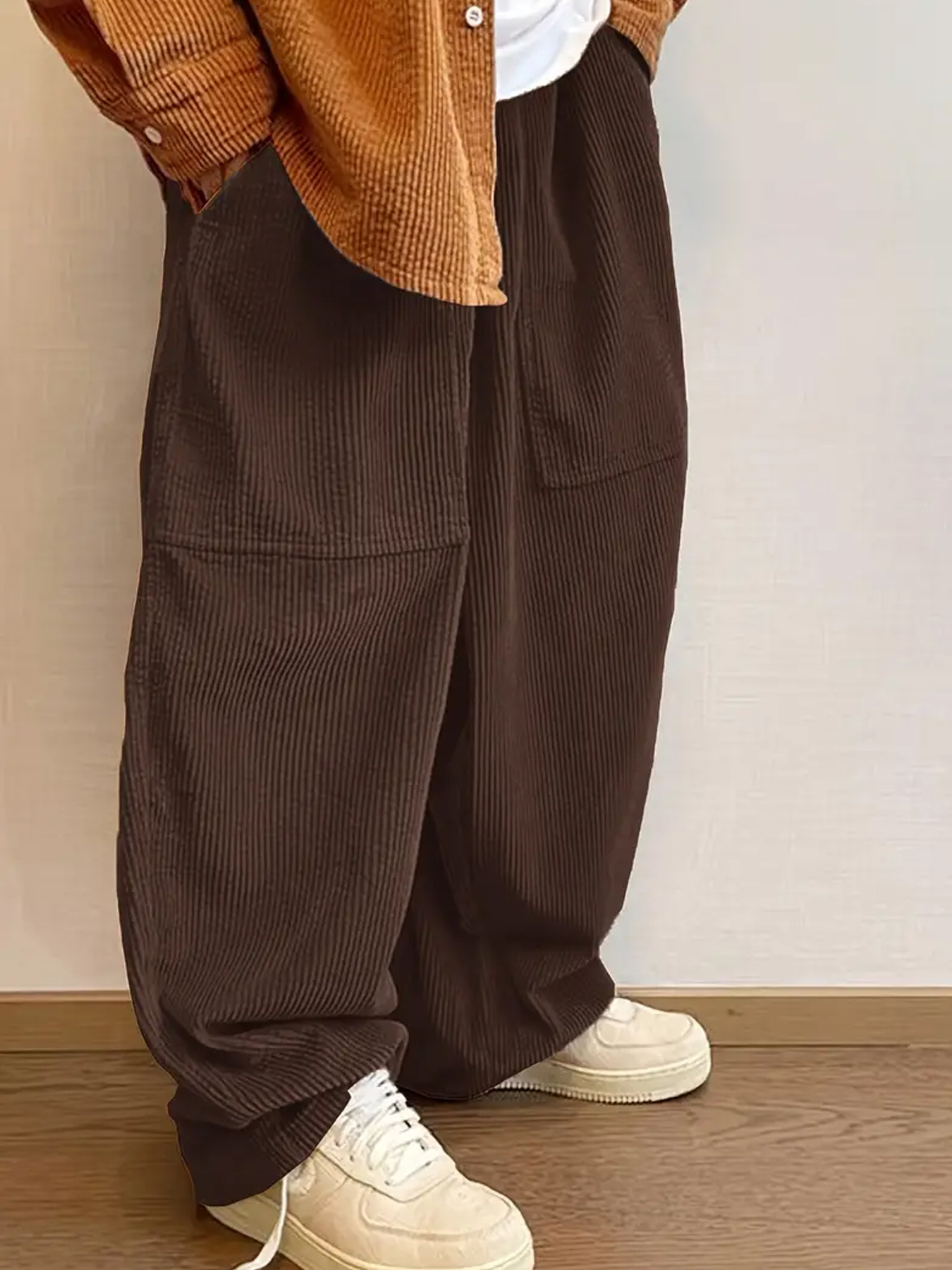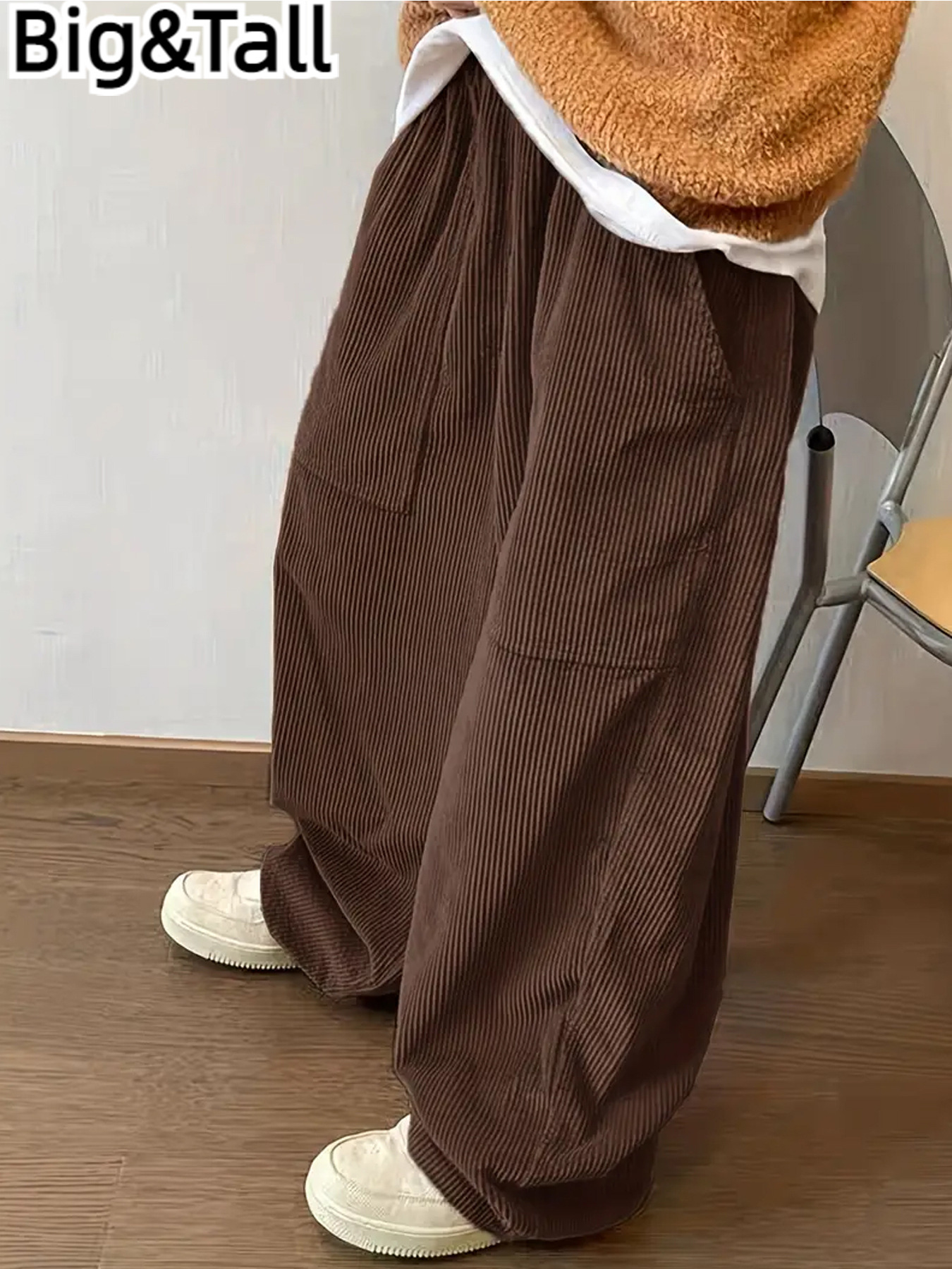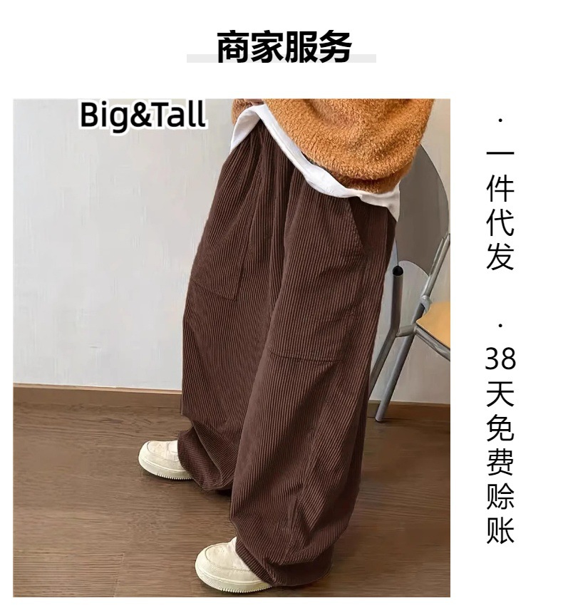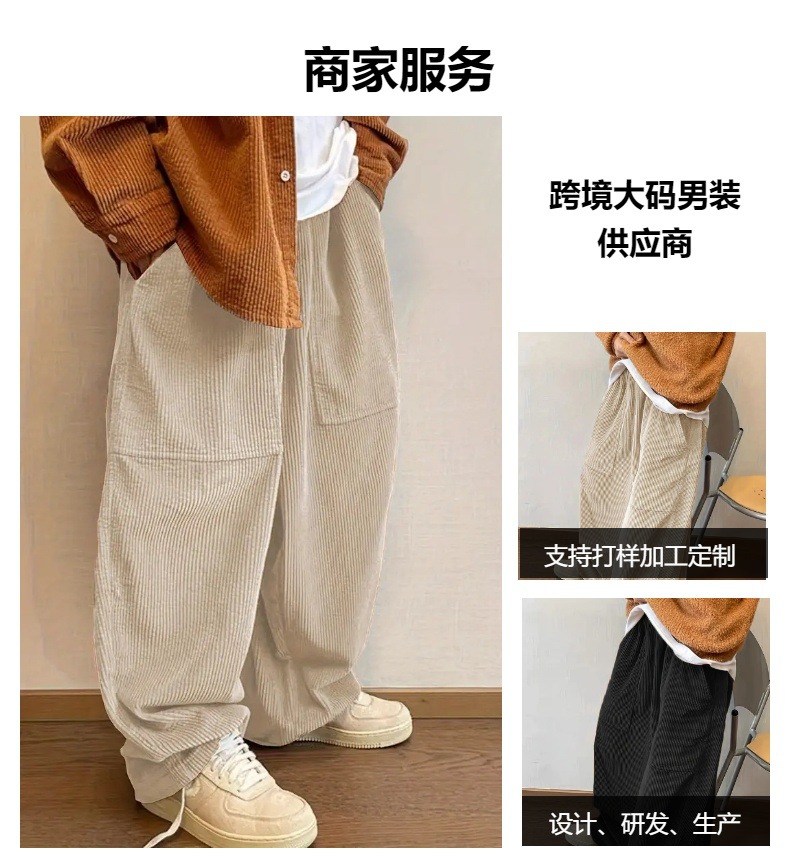 Популярные за рубежом свободные вельветовые брюки больших размеров с эластичной талией, в стиле ретро, широкие, универсальные, модные, европейского размера, прямого кроя.