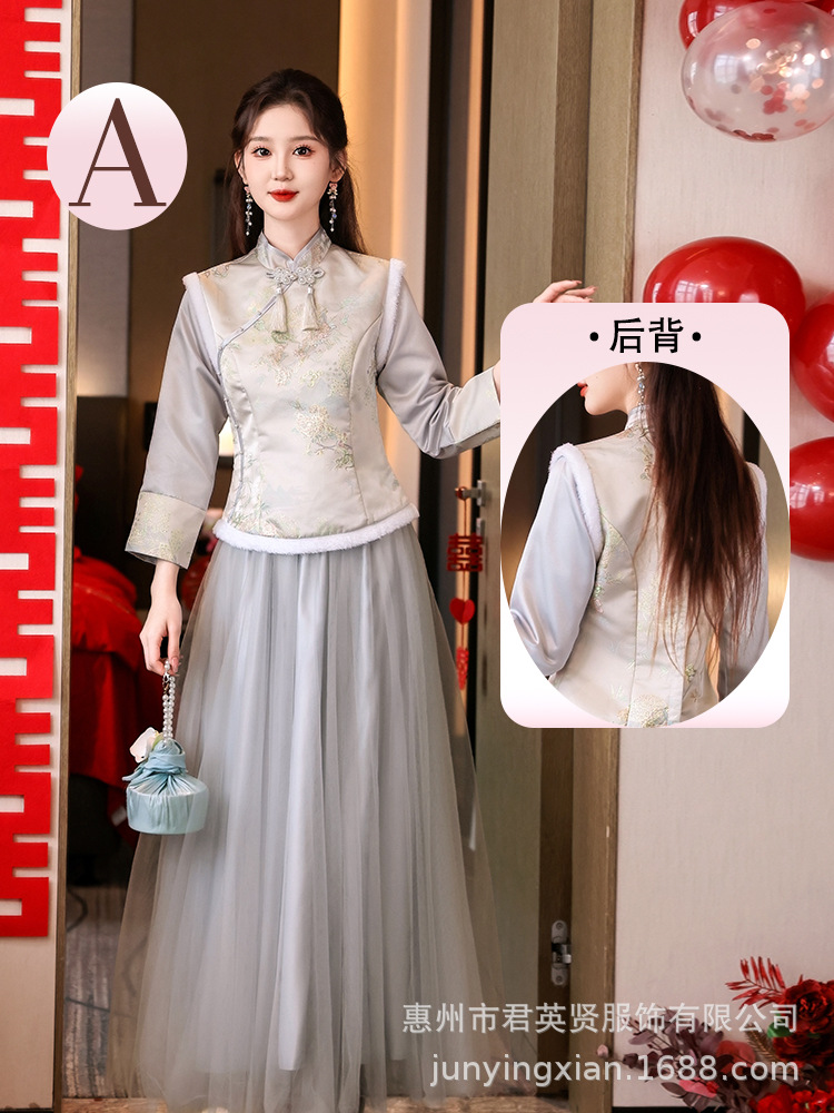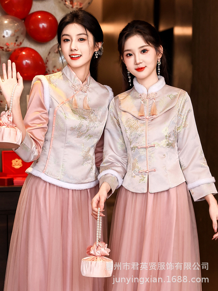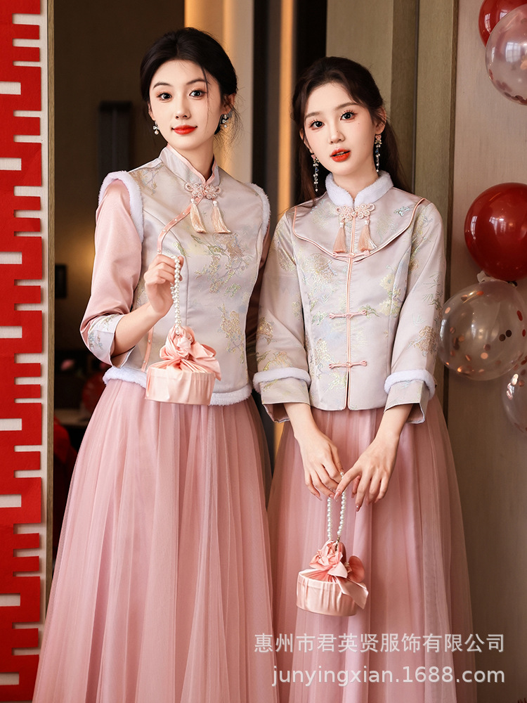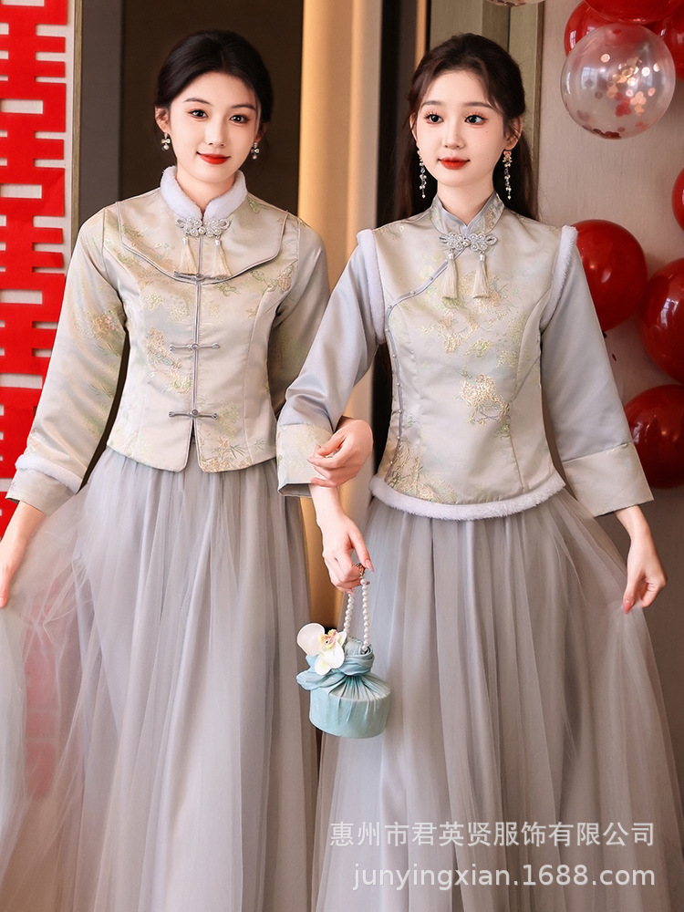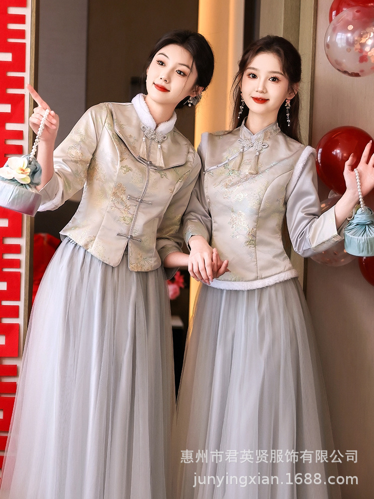Новое платье подружки невесты в стиле шинуазри, новинка лета 2021, маленькое высококачественное тонкое платье подружки невесты Cheongsam для женщин