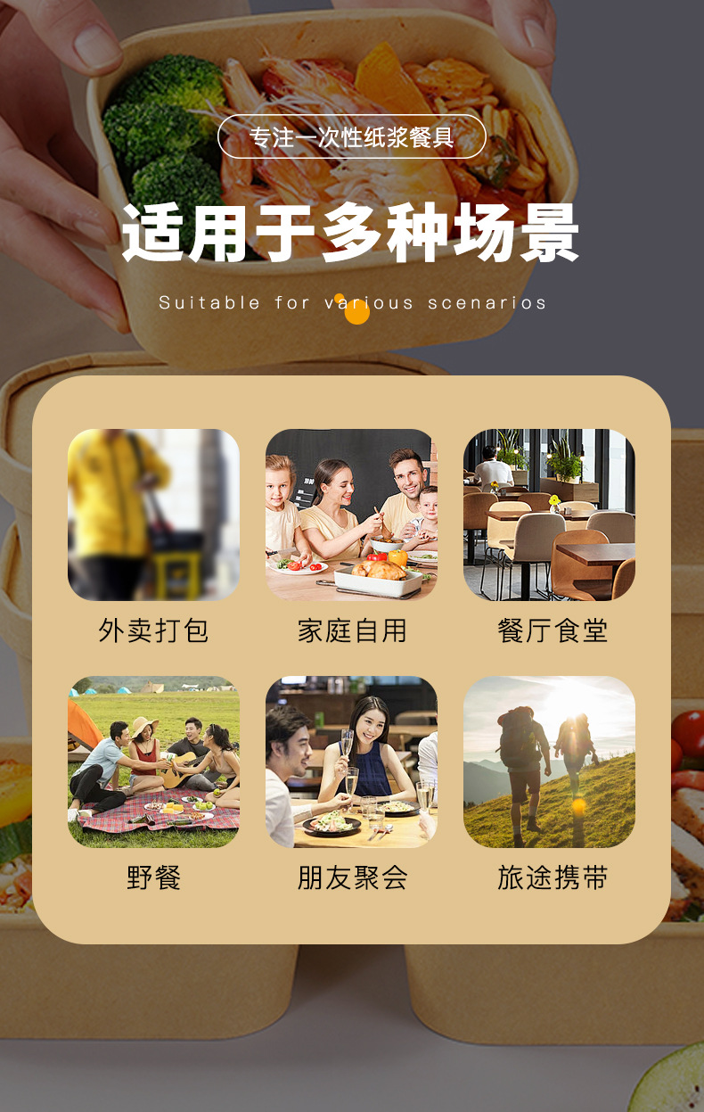 Одноразовые крафт-бумажные ланч-боксы прямоугольные бумажные ланч-боксы на вынос