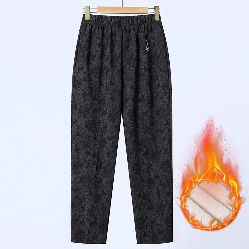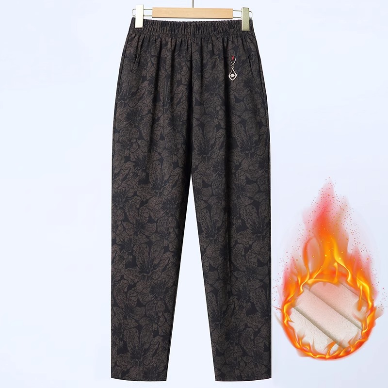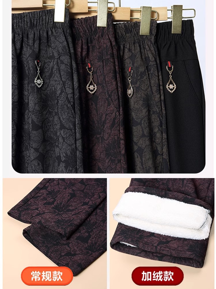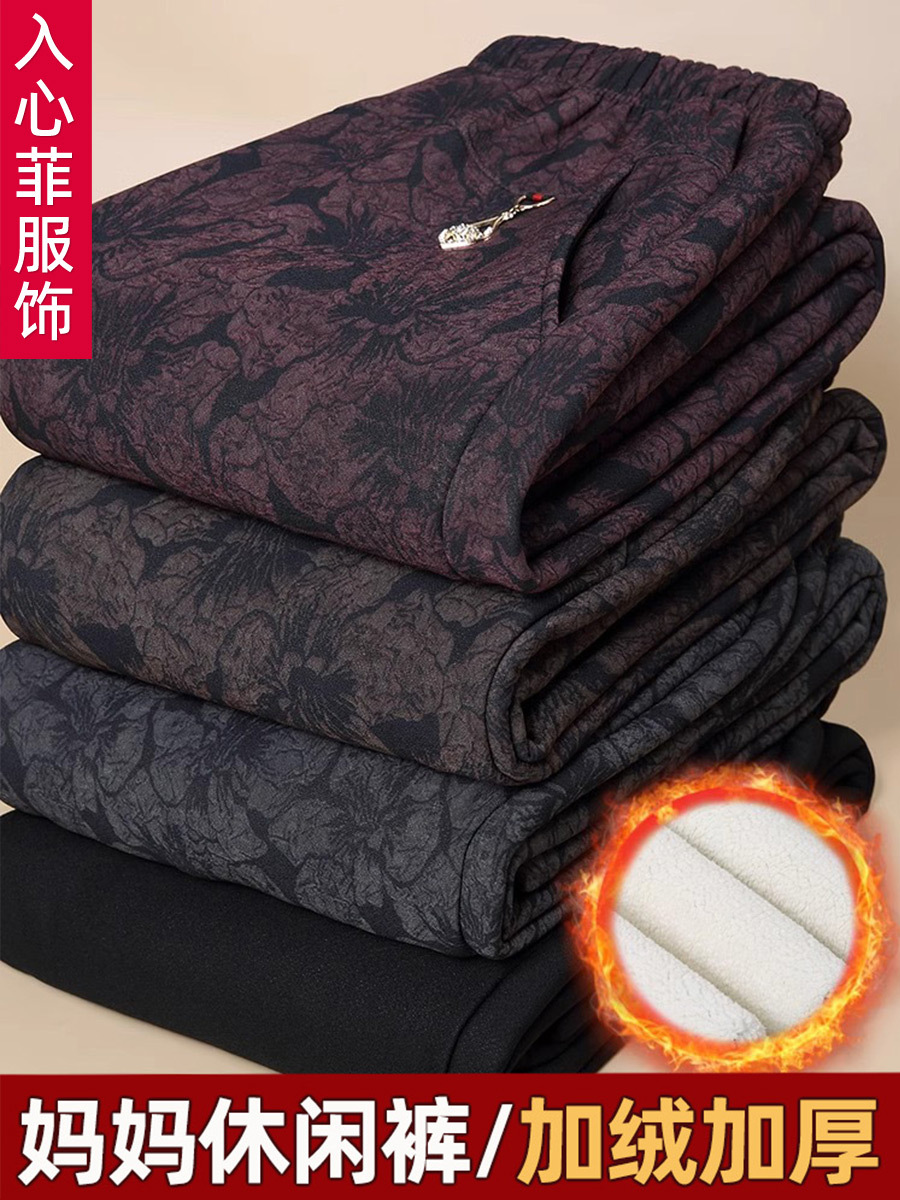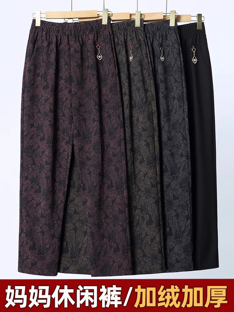 Мама брюки Зимние пожилые женские брюки бархатные толстые свободные прямые повседневные цветочные брюки весна и осень бабушка носит на улице