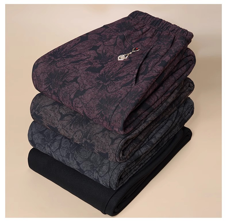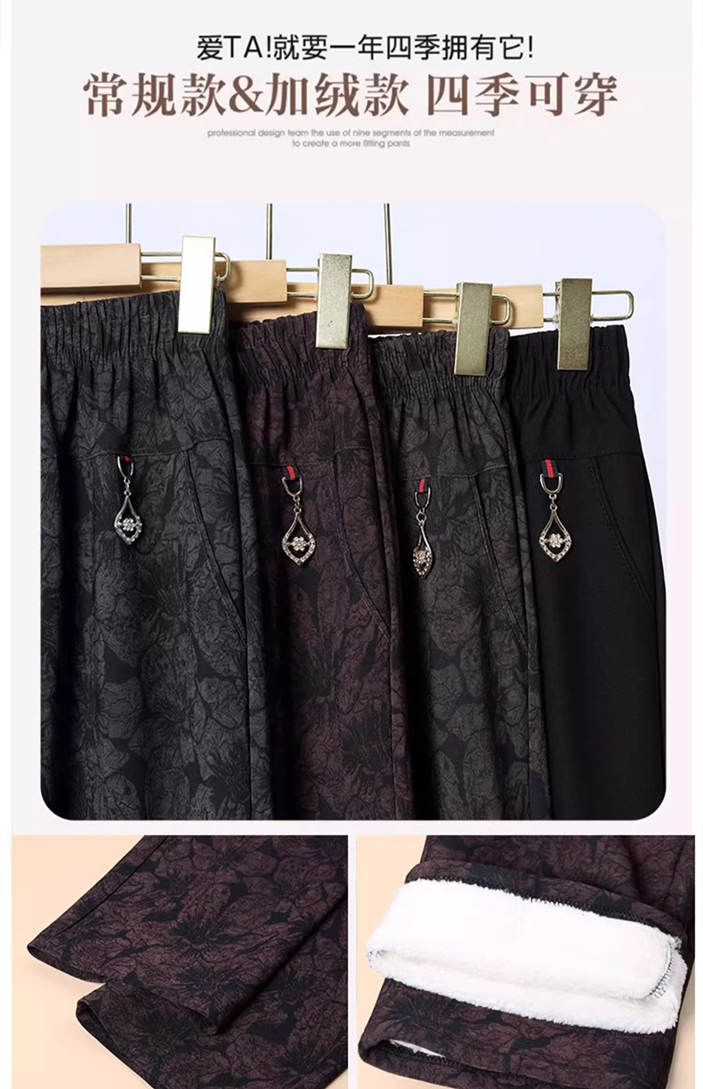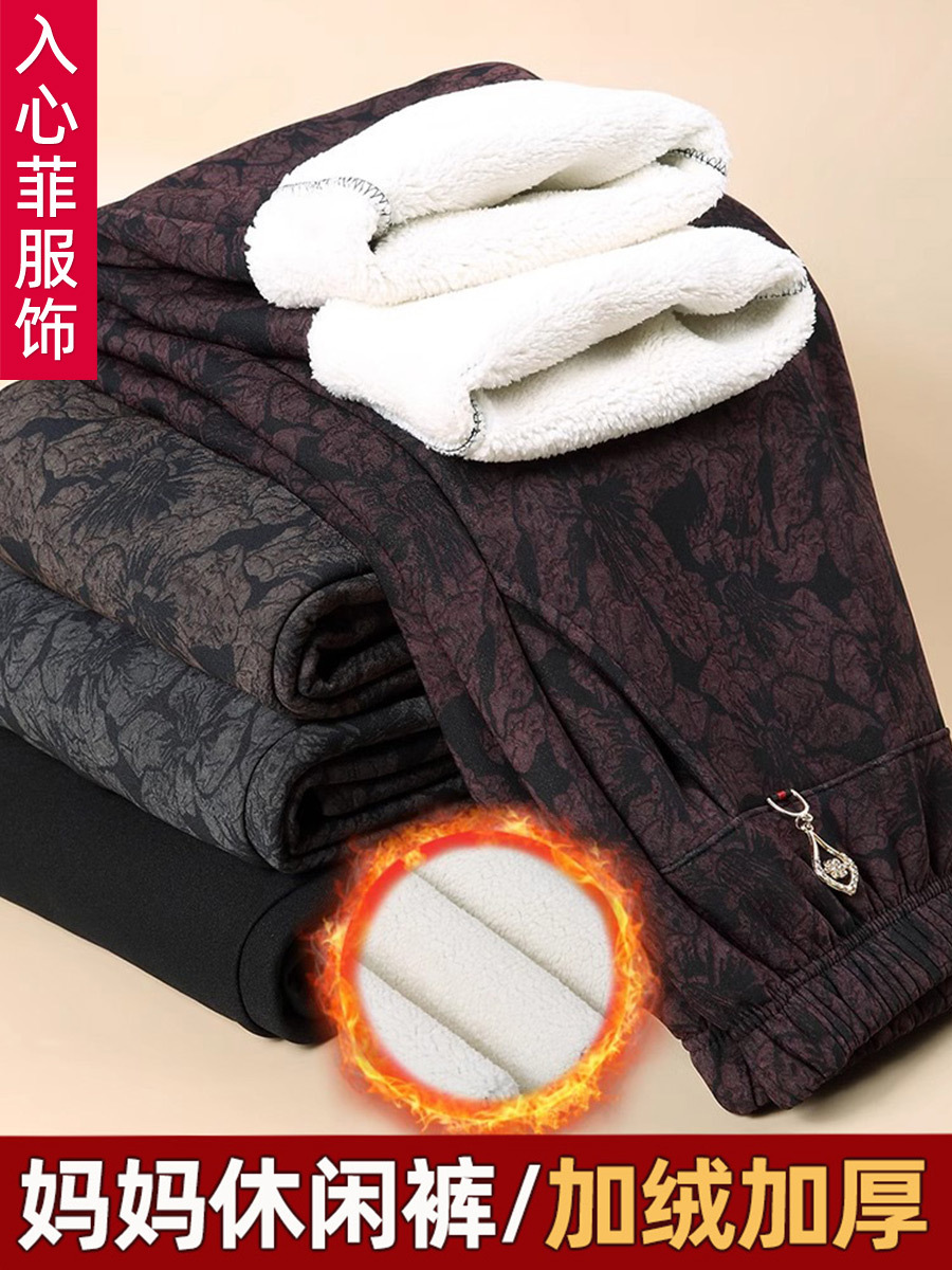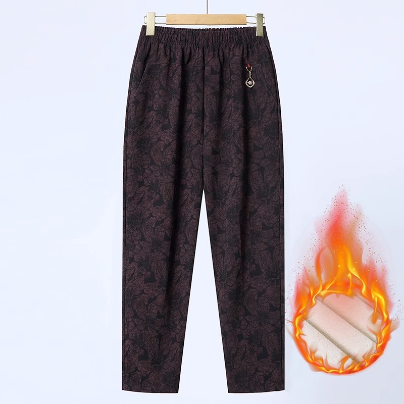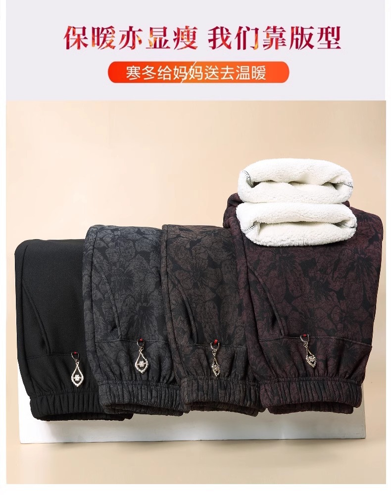Мама брюки Зимние пожилые женские брюки бархатные толстые свободные прямые повседневные цветочные брюки весна и осень бабушка носит на улице