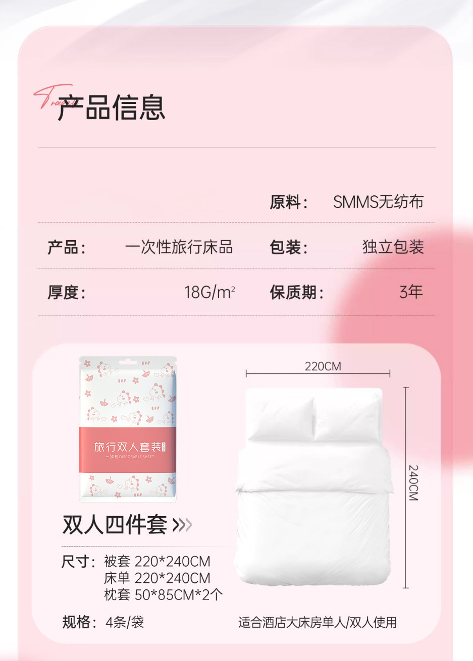 Одноразовые простыни для путешествий Гостиничный одеяло наволочки для путешествий Три комплекта для двойного одеяла для одеяла