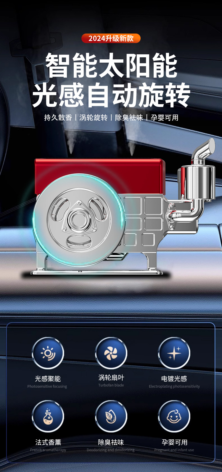 Новинка для трансграничной торговли: автомобильный освежитель воздуха на солнечной батарее, держатель для парфюма, элитный декор для салона автомобиля и трактора