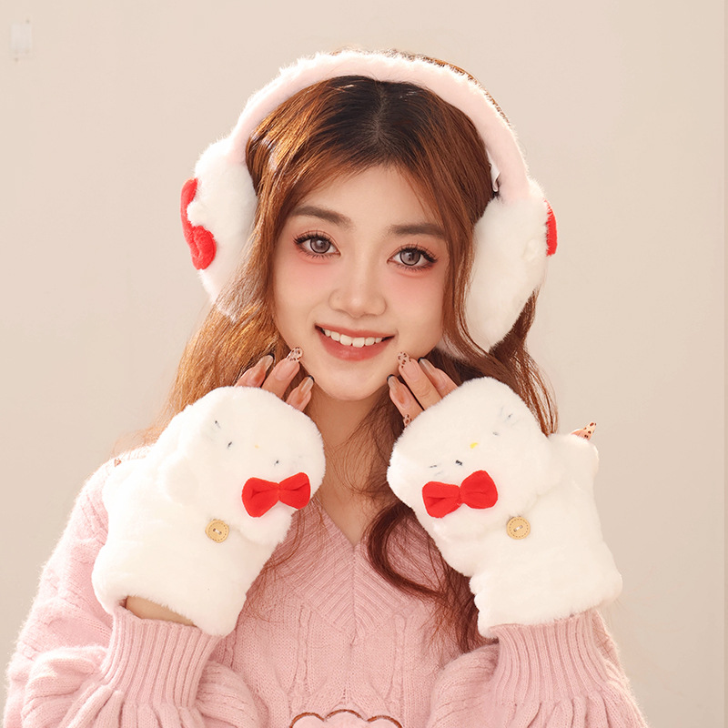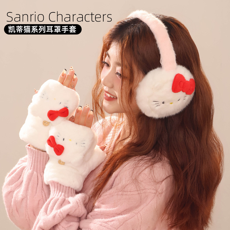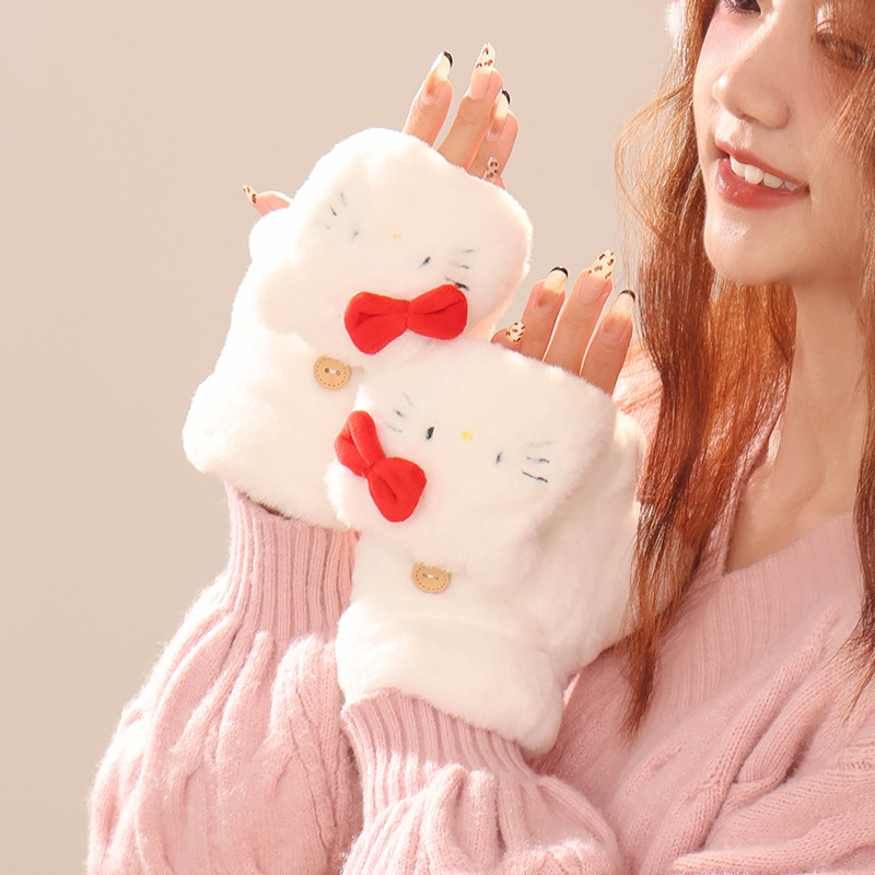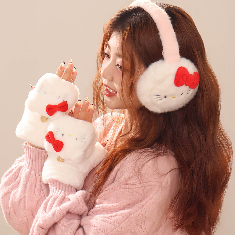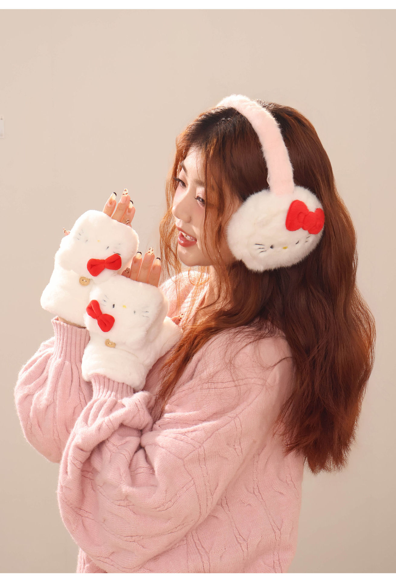 Hellokitty Hellokitty Подлинная милая девушка сердце теплая милая пуховая перчатка наушники рождественские подарки на Новый год