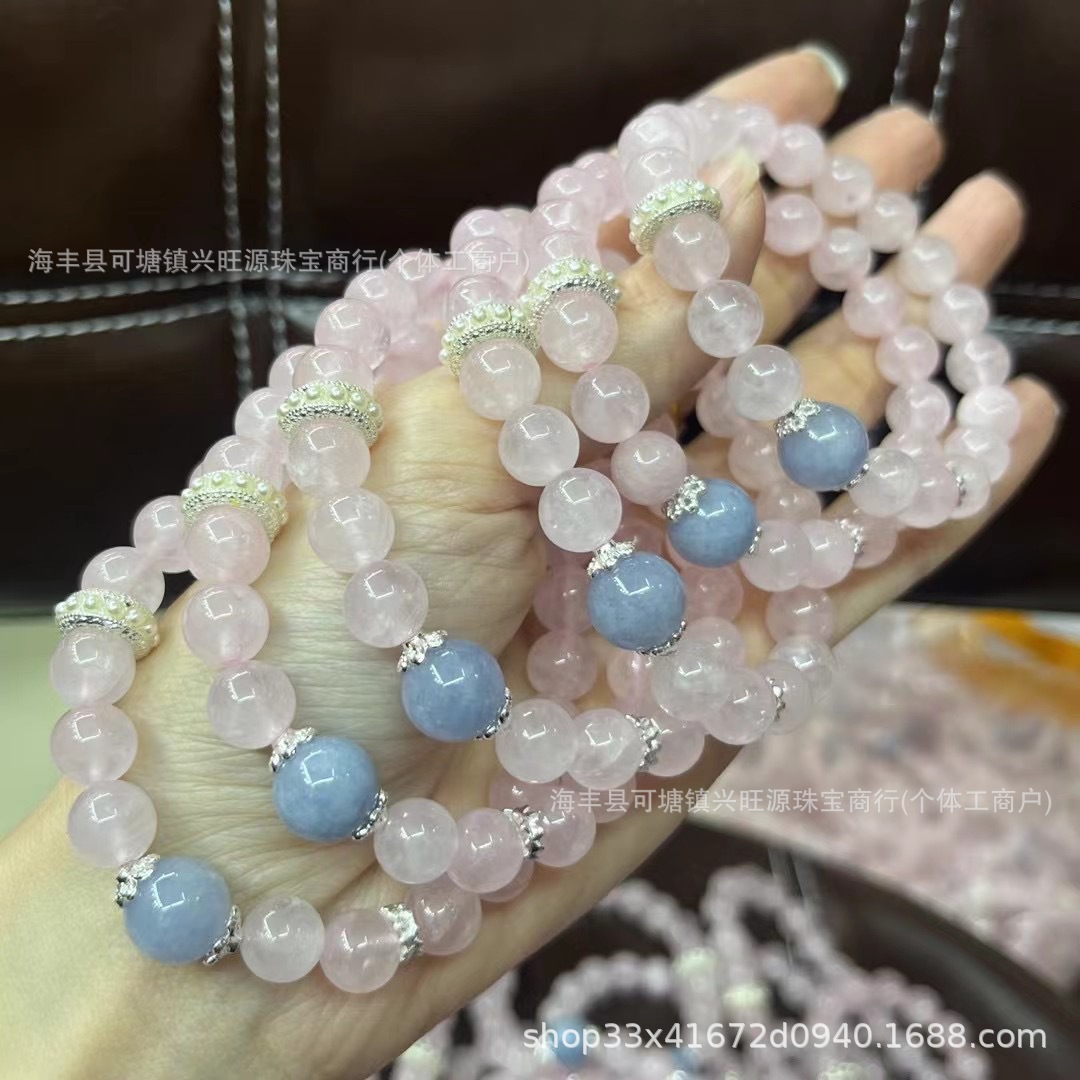 马达加斯加天然粉晶手链海蓝宝手串招桃花粉水晶少女饰品网红爆款 批发量越大价格越低,可供直播间长期合作,欢迎来电私聊