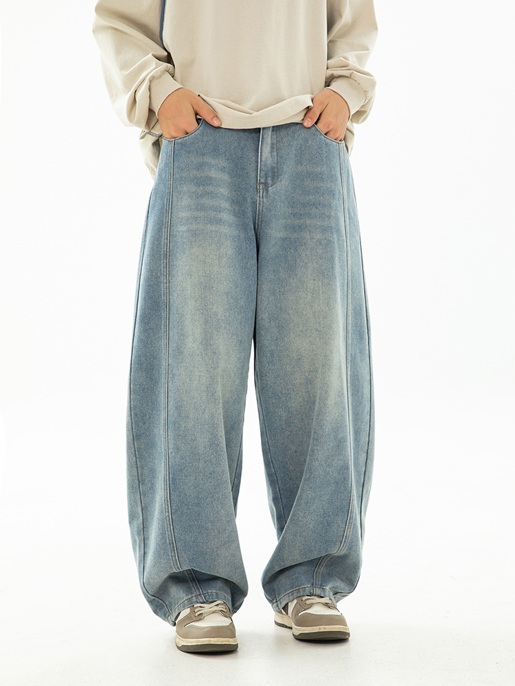 Ретро мойка силуэты джинсы мужской 2025 весна новая сплит структура ятаган штаны прилив свободные длинные брюки