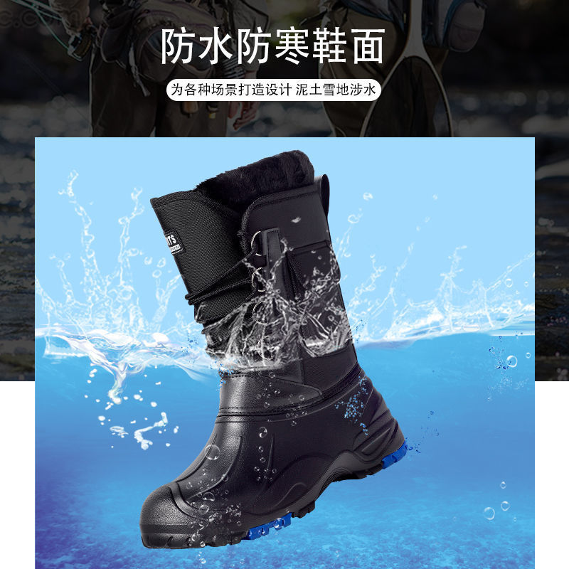 Новые рыболовные туфли утолщенные снежные сапоги мужские кашемировые сапоги противоскользящие гвозди хлопчатобумажные сапоги на открытом воздухе зимние сапоги зимние сапоги