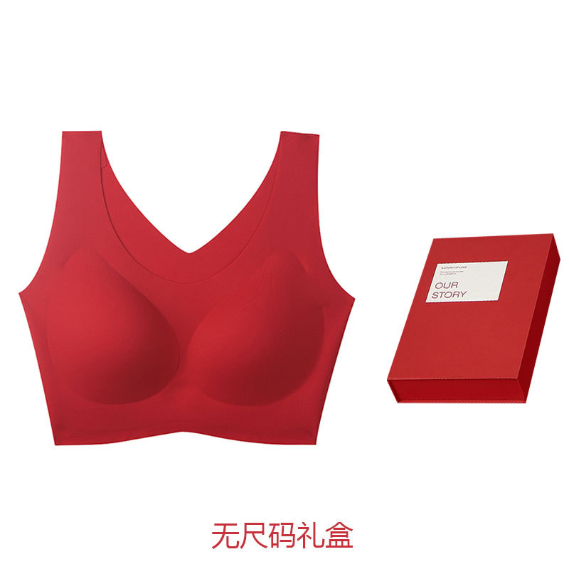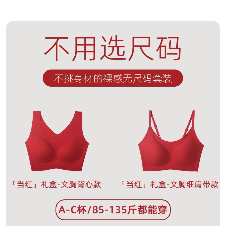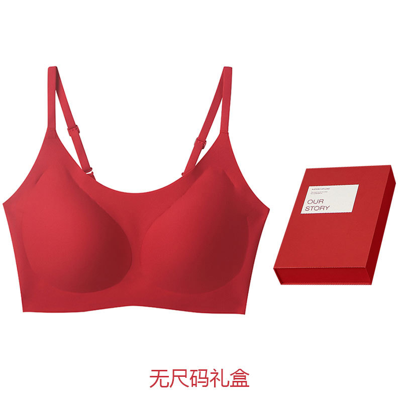 Подарочная коробка натальный год, красное нижнее белье, дамы тонкая спина без следов, фиксированная чашка, цельное бюстгальтер без размера