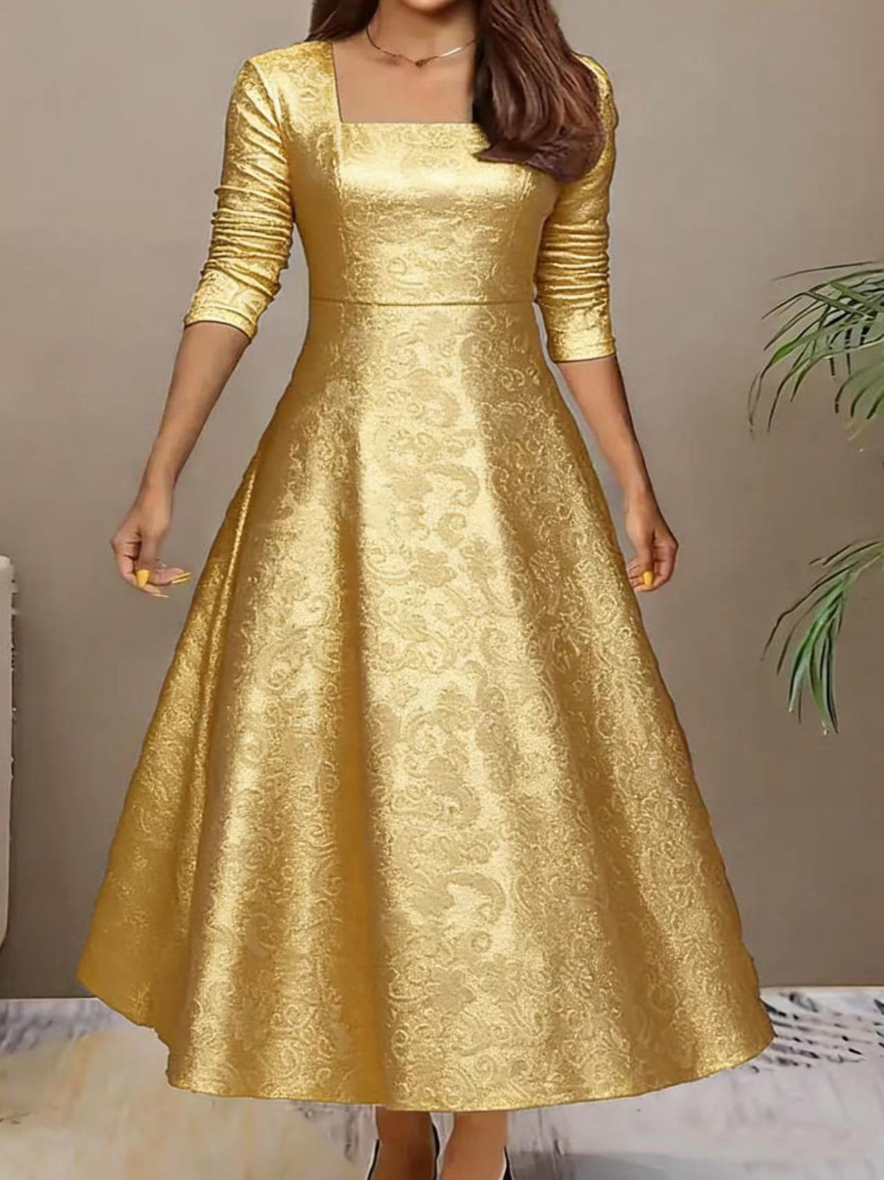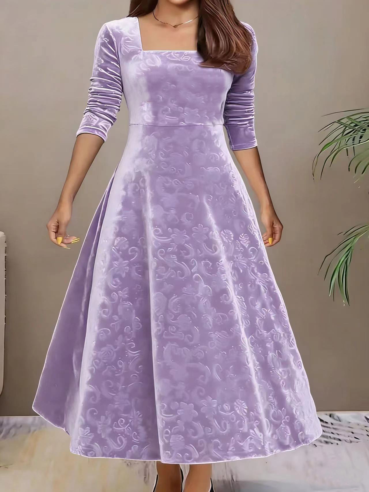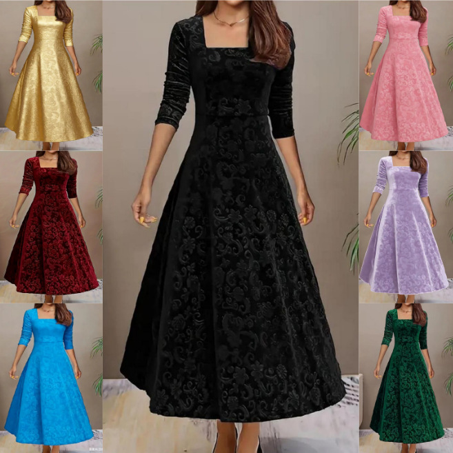 2024 Европейская и американская мода больших размеров: элегантное однотонное жаккардовое платье с длинным рукавом, квадратным вырезом, свободного кроя, очень большого размера, из вельвета.