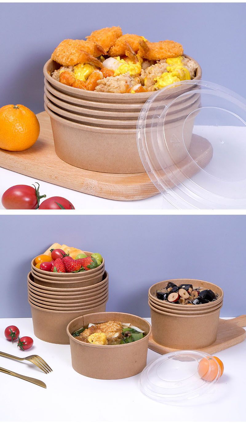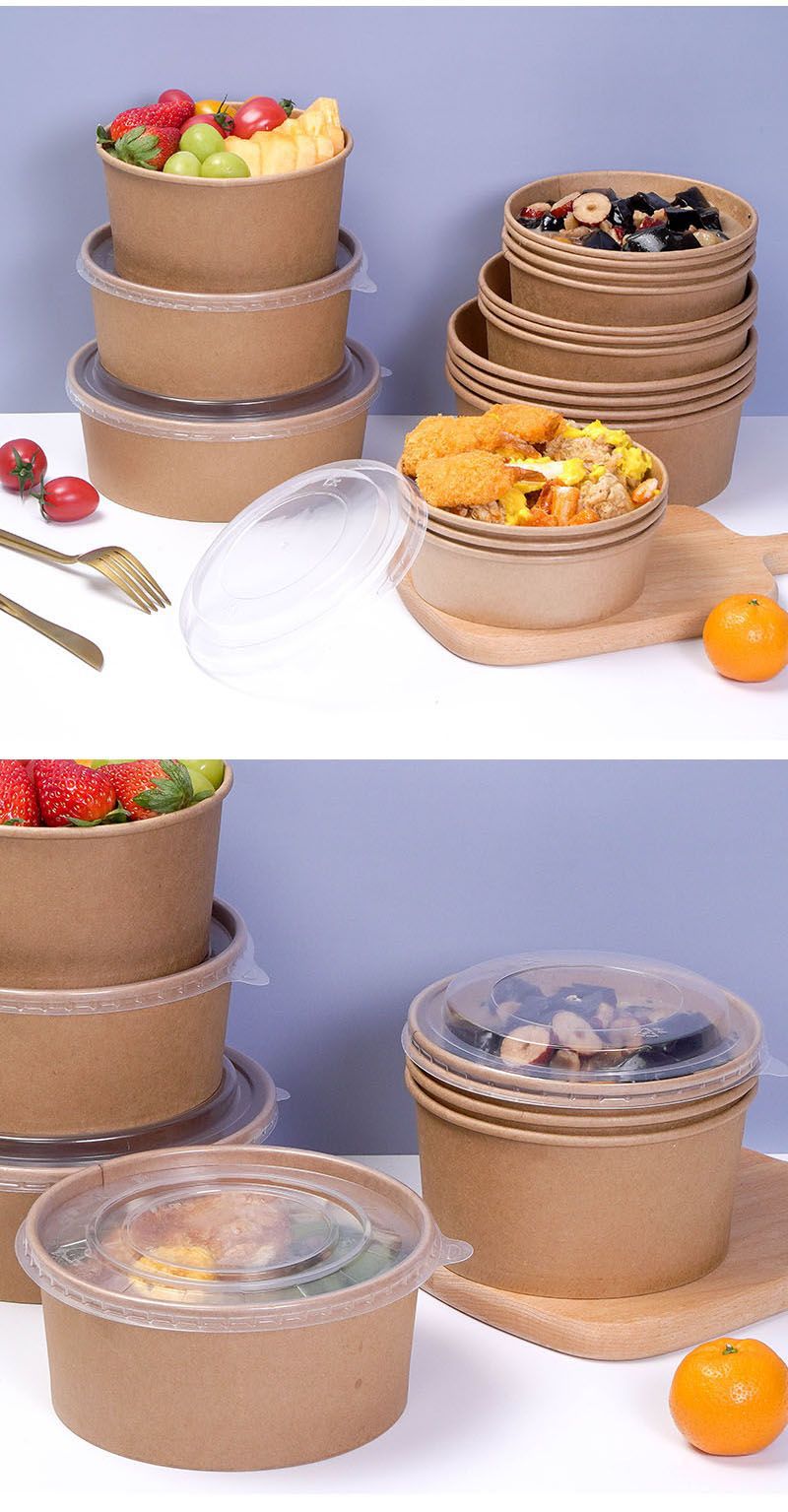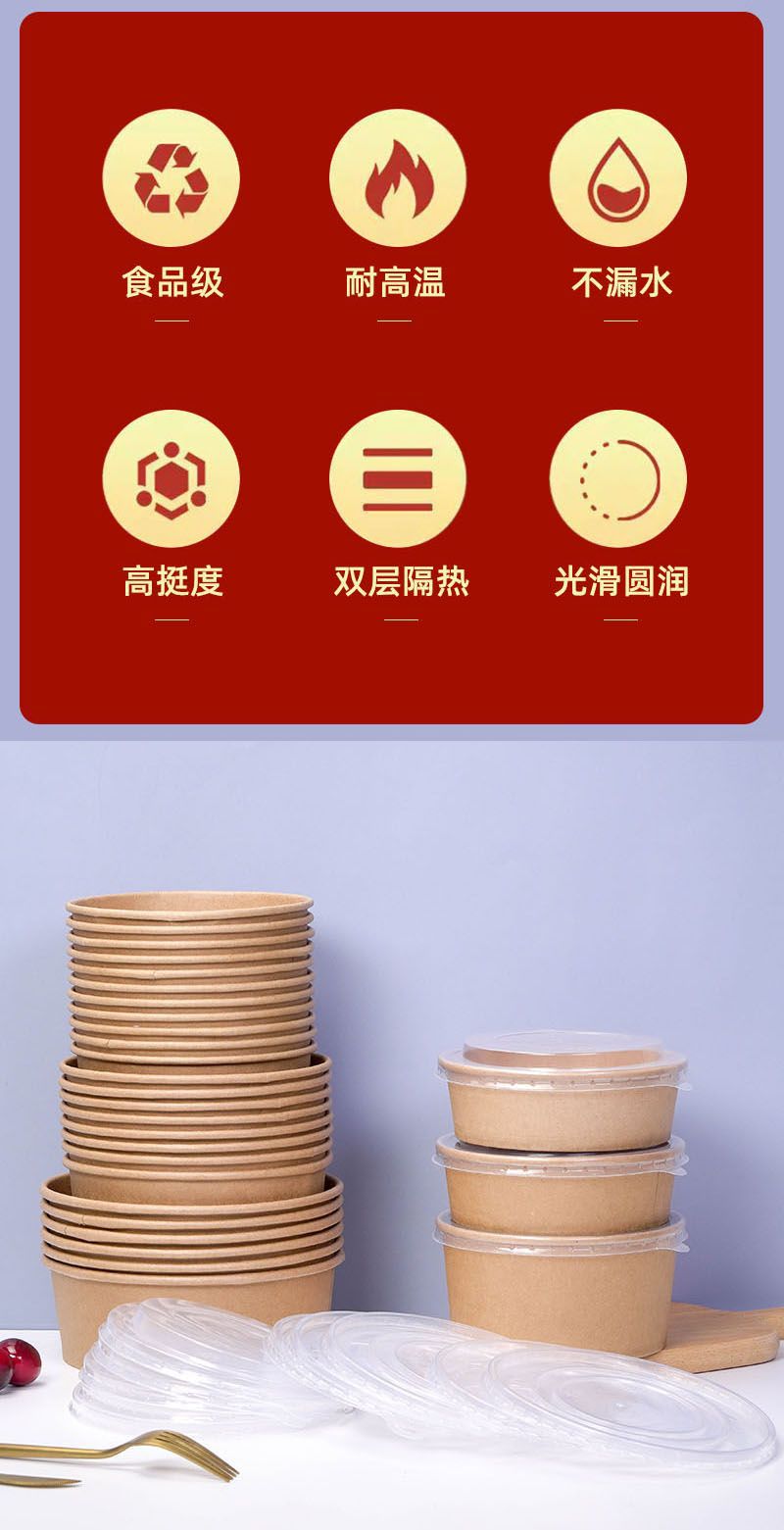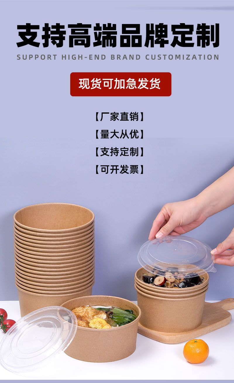Одноразовая бумажная миска крафт-бумага миска может быть напечатана на вынос упакованная коробка бумажная миска круглая миска супа ведро супа коробка быстрого питания оптом