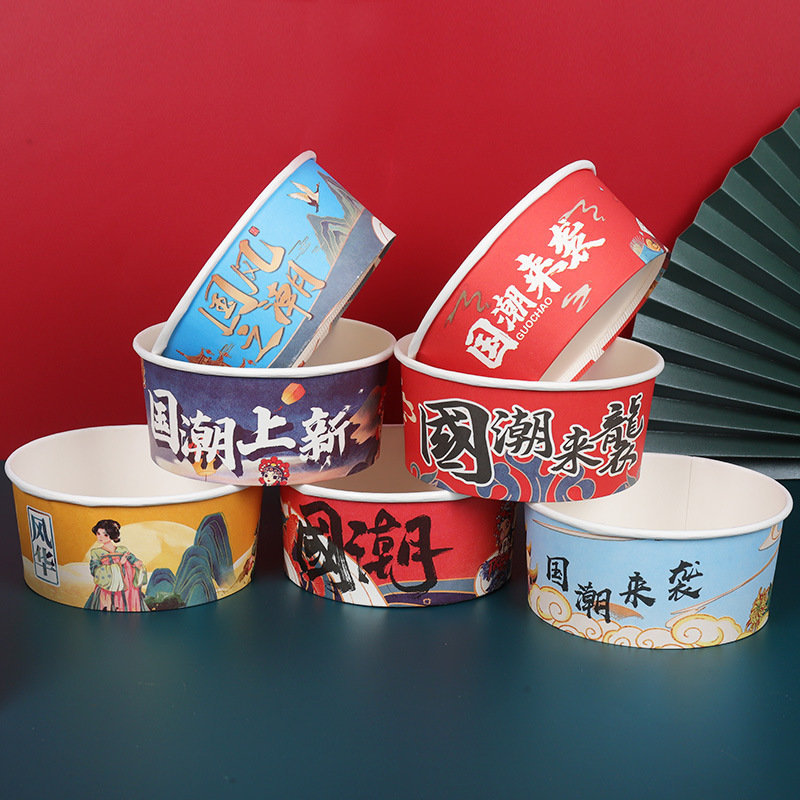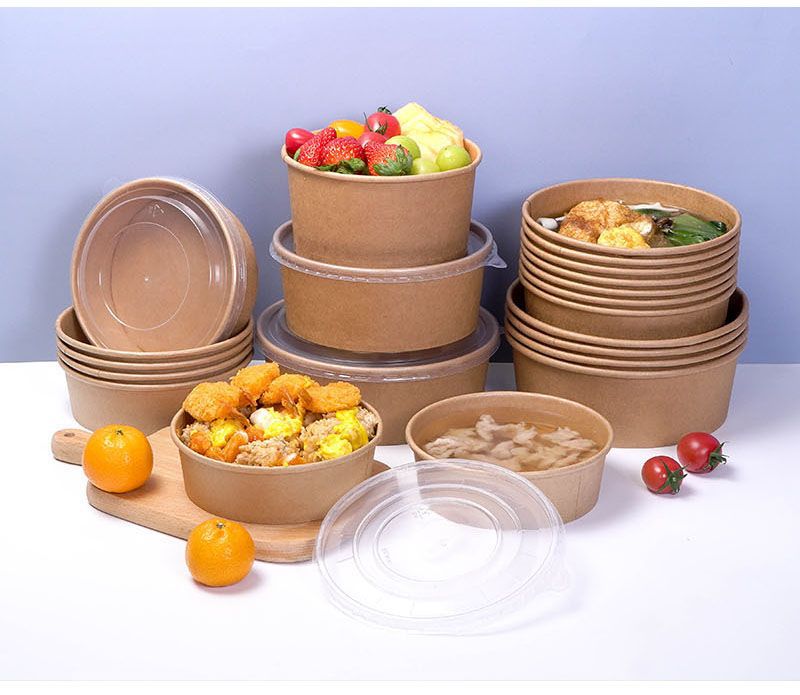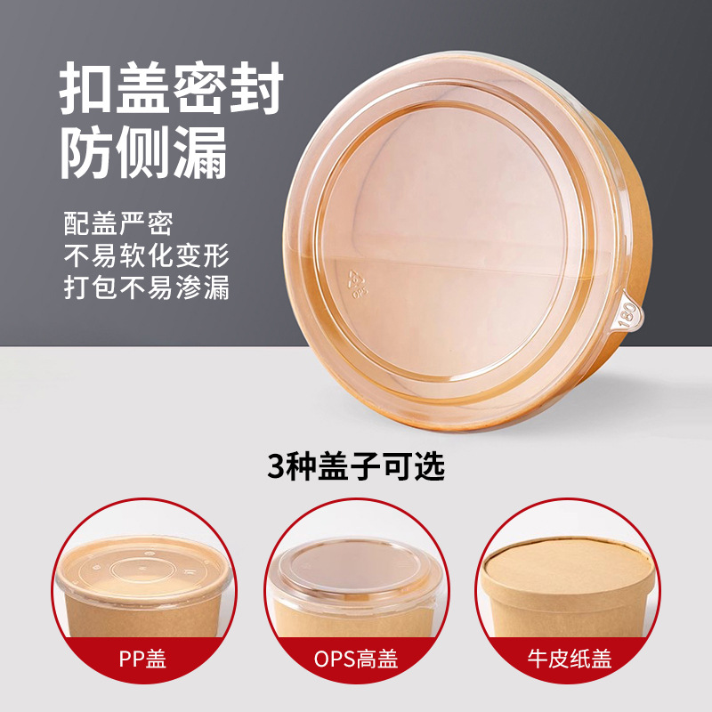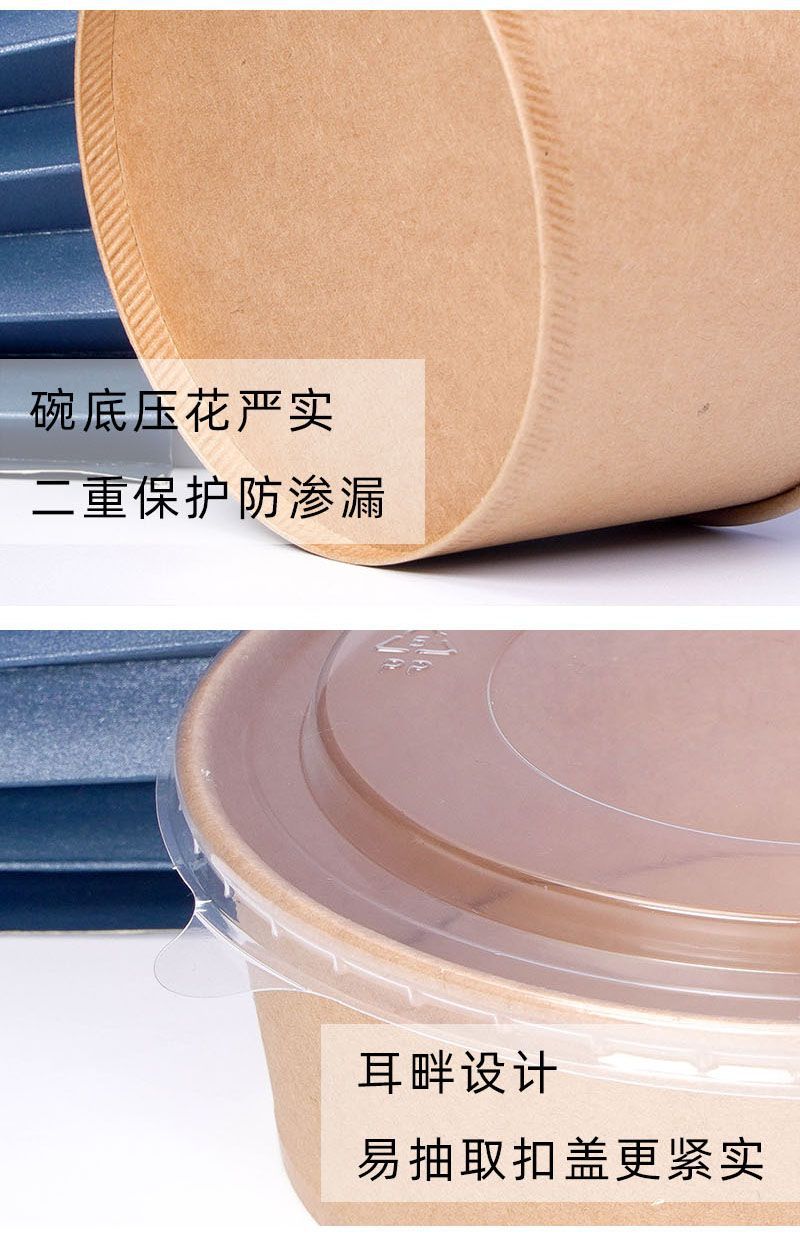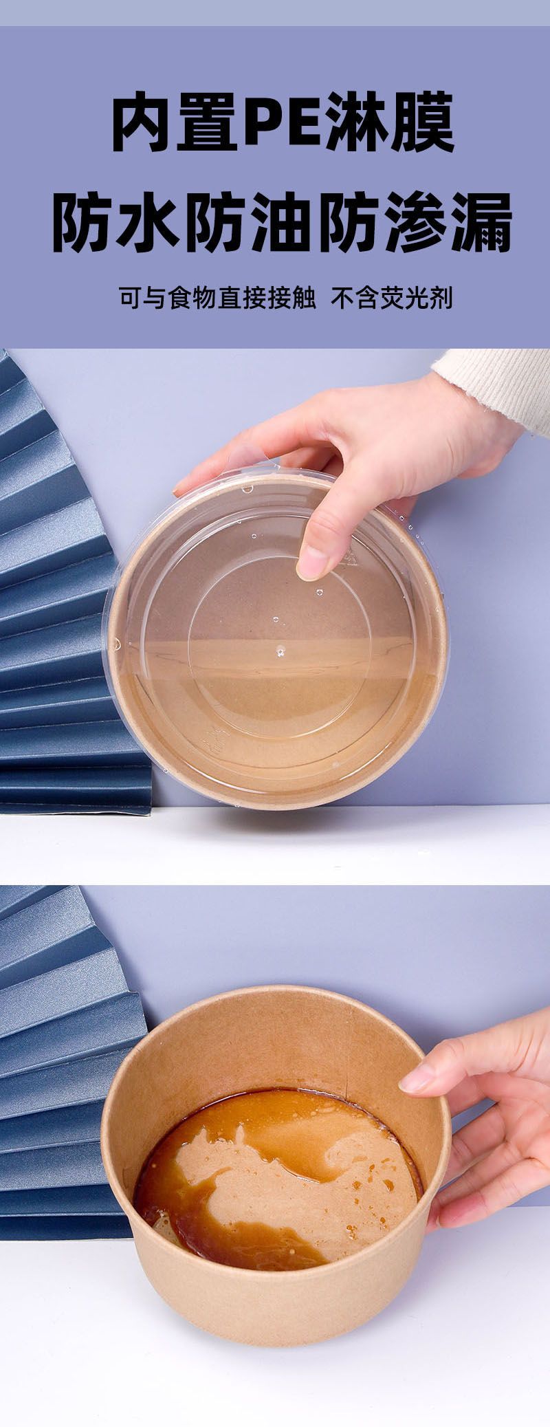 Одноразовая бумажная миска крафт-бумага миска может быть напечатана на вынос упакованная коробка бумажная миска круглая миска супа ведро супа коробка быстрого питания оптом