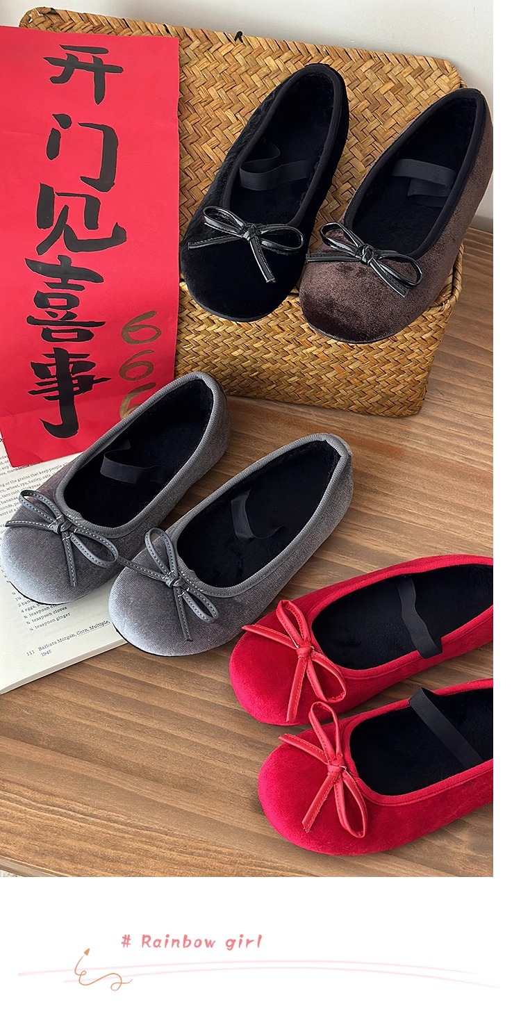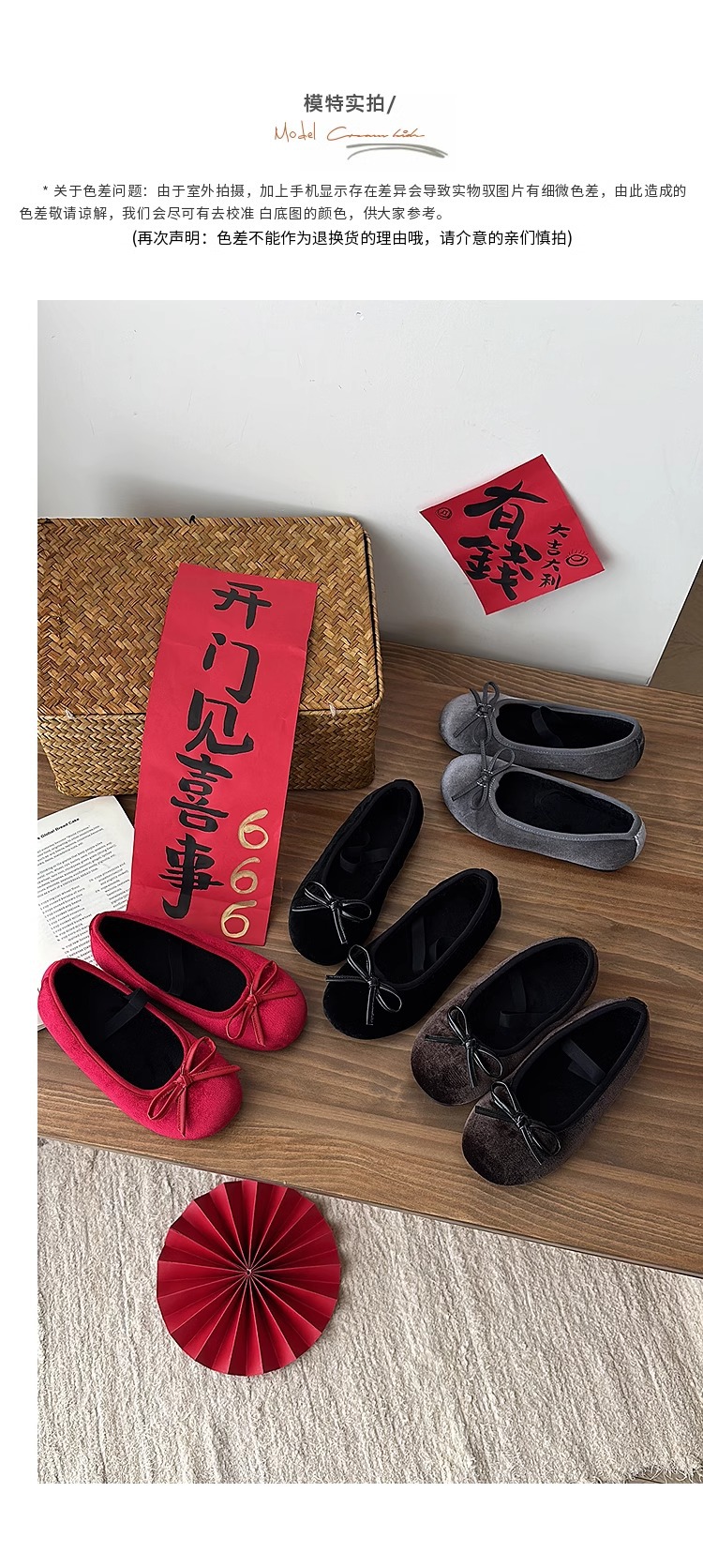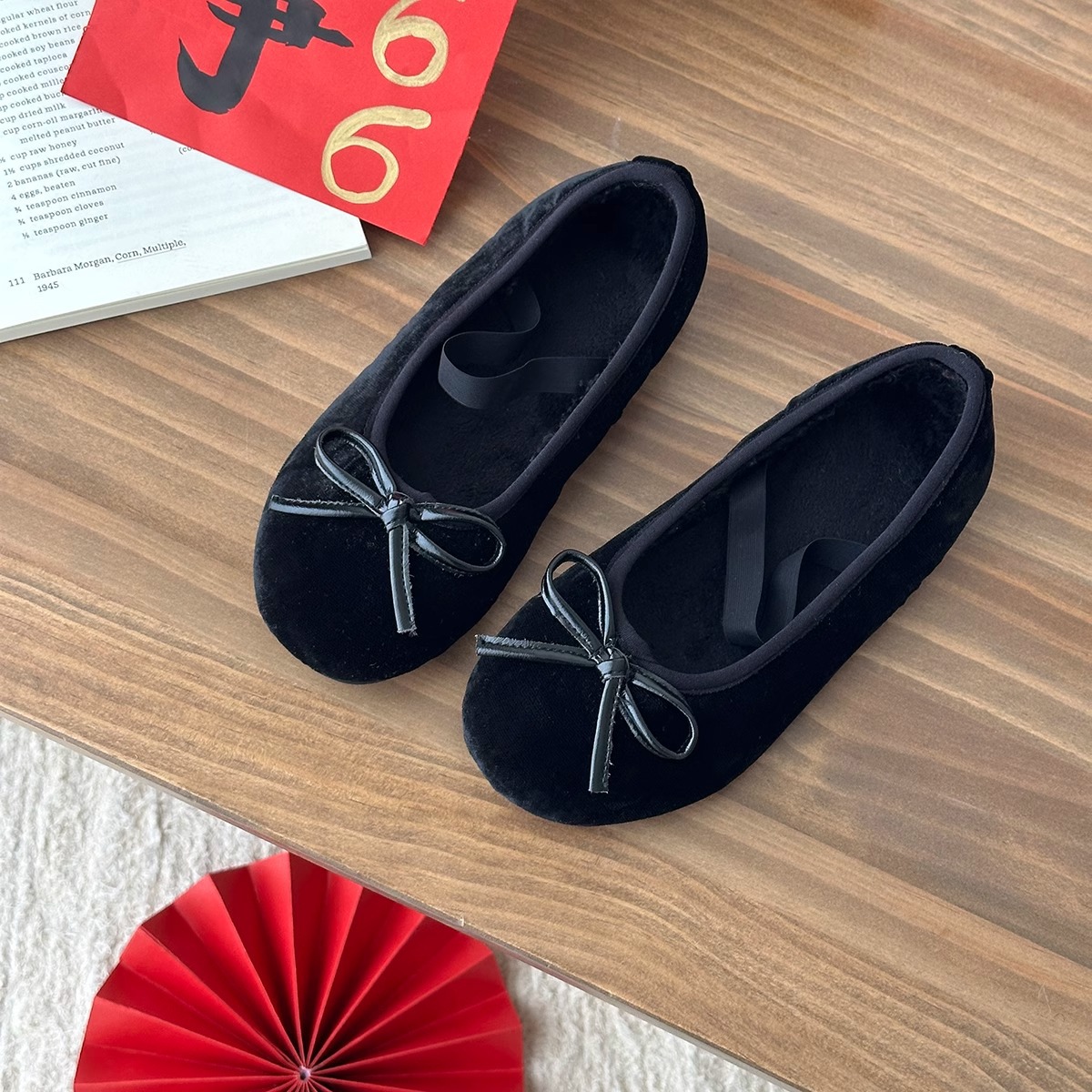 Обувь для родителей и детей обувь для девочек принцессы обувь плюс бархат осень и зима новая балетная обувь детская обувь бант плоская обувь женщина