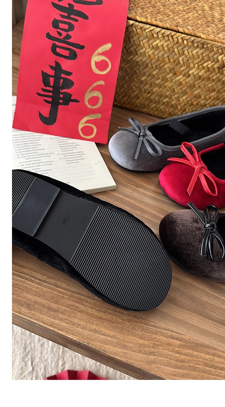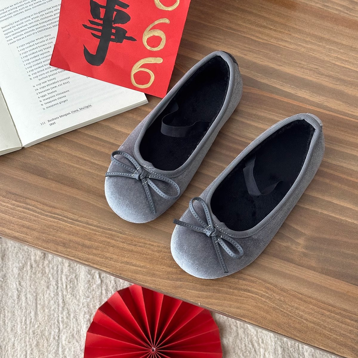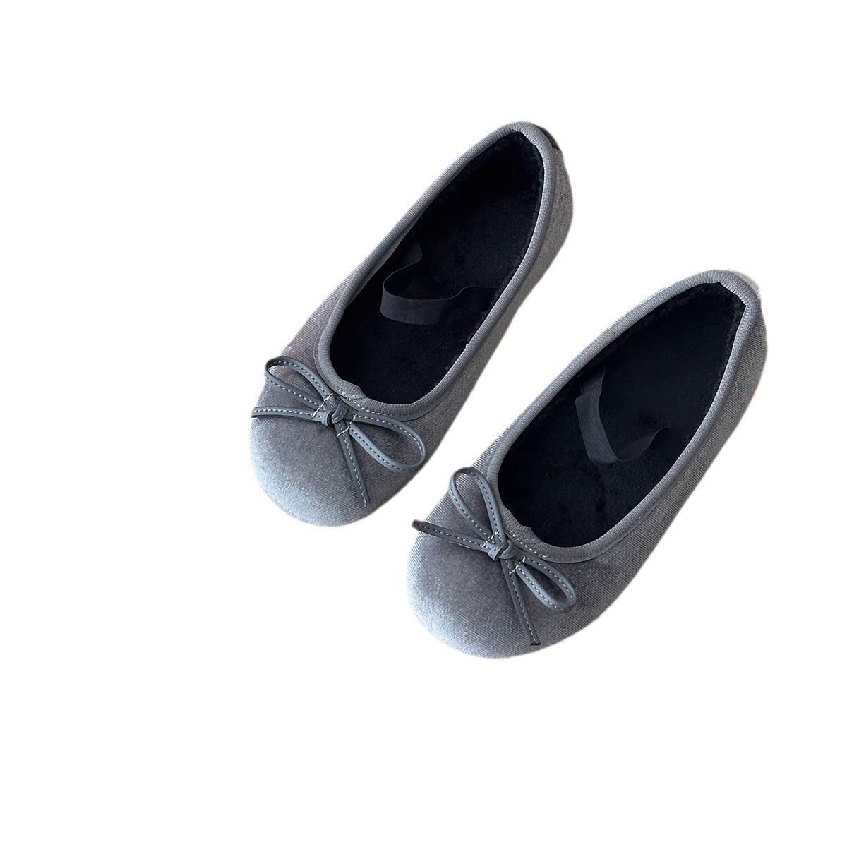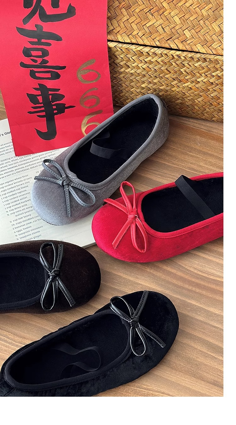 Обувь для родителей и детей обувь для девочек принцессы обувь плюс бархат осень и зима новая балетная обувь детская обувь бант плоская обувь женщина