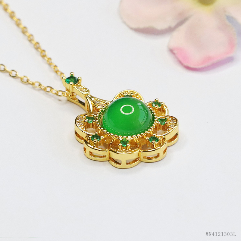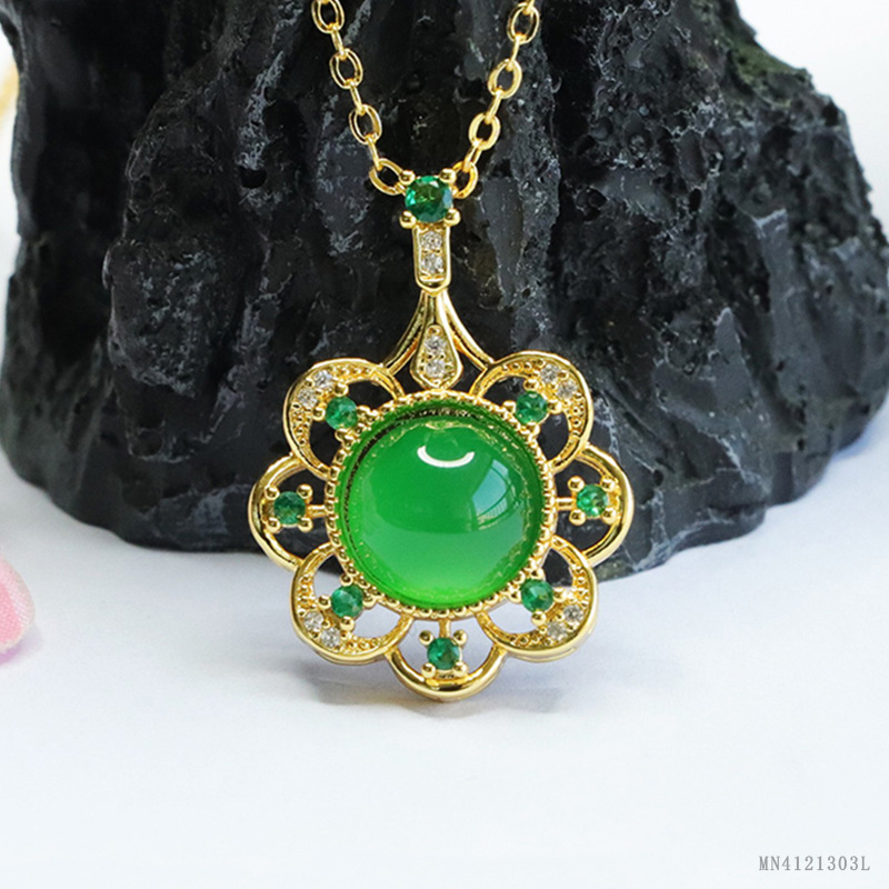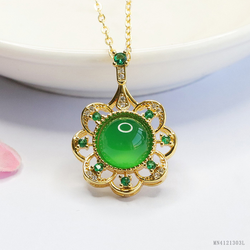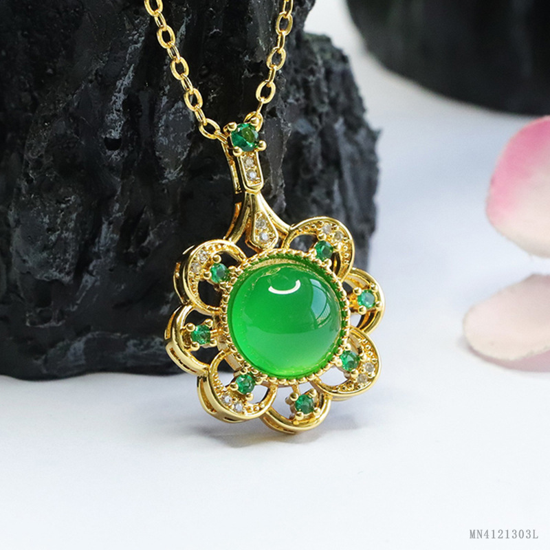 Yiyu натуральный вид льда зеленый агат кулон халцедон цветок ожерелье женский прямой эфир волос оптом MN4121303L