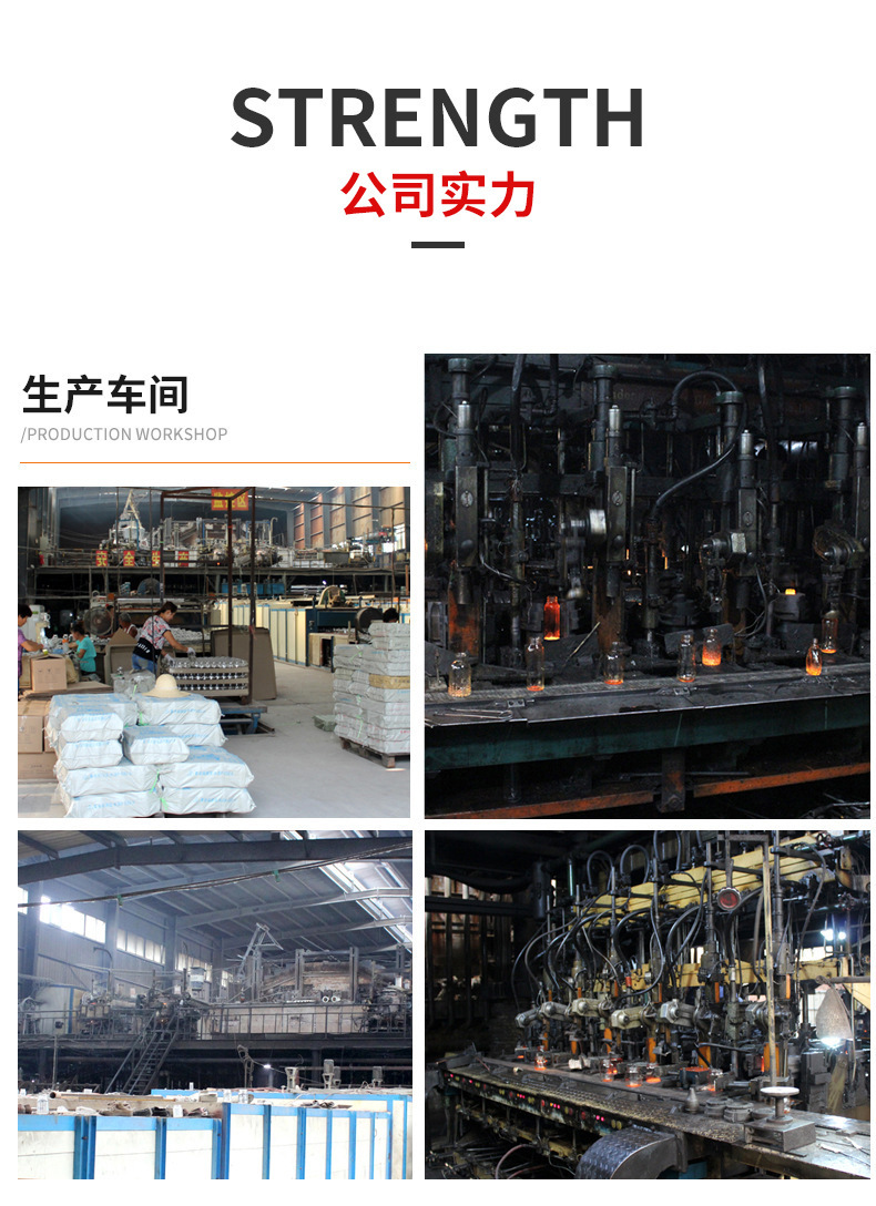 徐州联铭玻璃制品有限公司是白酒瓶、酒瓶、喜酒瓶、定制酒瓶等产品专业生产加工的公司,拥有完整、科学的质量管理体系。徐州鹏越玻璃制品有限公司的诚信、实力和产品质量获得业界的认可。公司长期恪守以"专业、诚信、创新"的经营理念,在取得良好业绩的同时,将更好的回报社会,继续奉行:"质量是企业的生命,客户是企业的源泉,信誉是企业的根本"经营宗旨,不断完善产品质量,实现企业、管理、品牌的目标。 公司技术力量雄厚,管理细致,售后服务完善,始终坚持以质量为本,信誉良好为宗旨,为社会各界行业提供高品质的产品和服务。