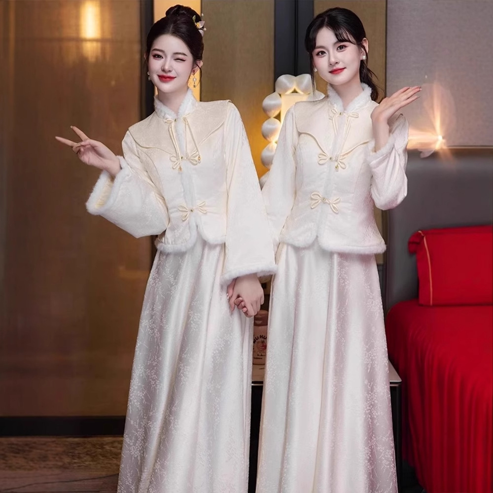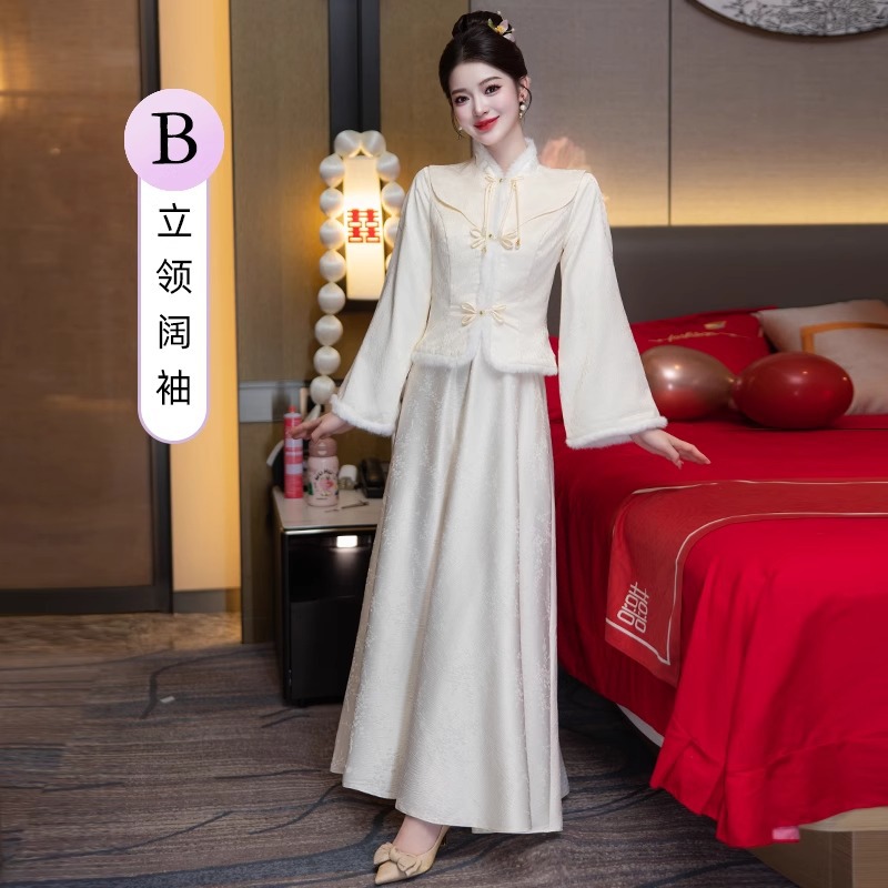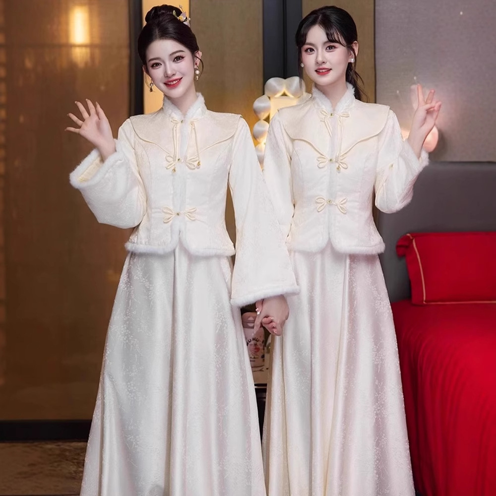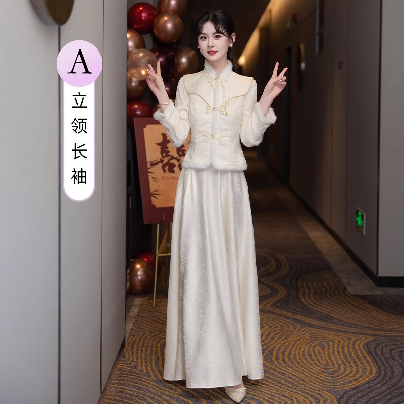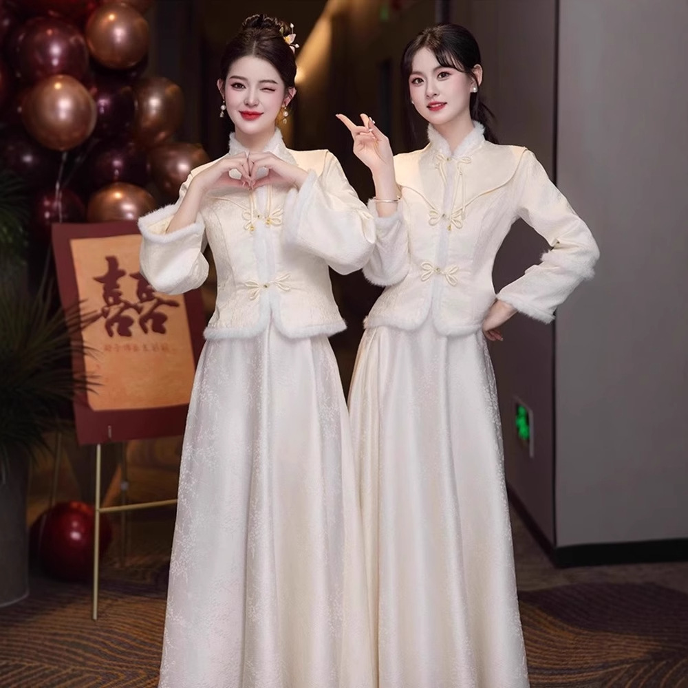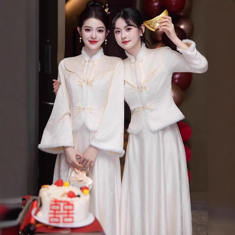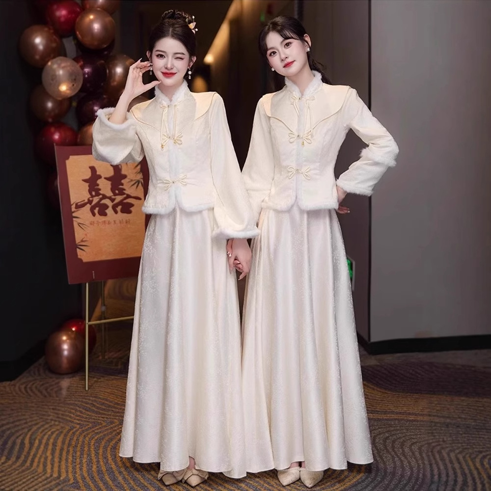 Платья для подружек невесты в китайском стиле для весенних и осенних свадеб, китайское платье-ципао для подружек невесты, национальный стиль, высококачественное платье с длинными рукавами, можно носить повседневно.