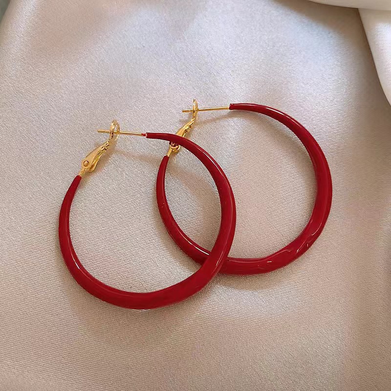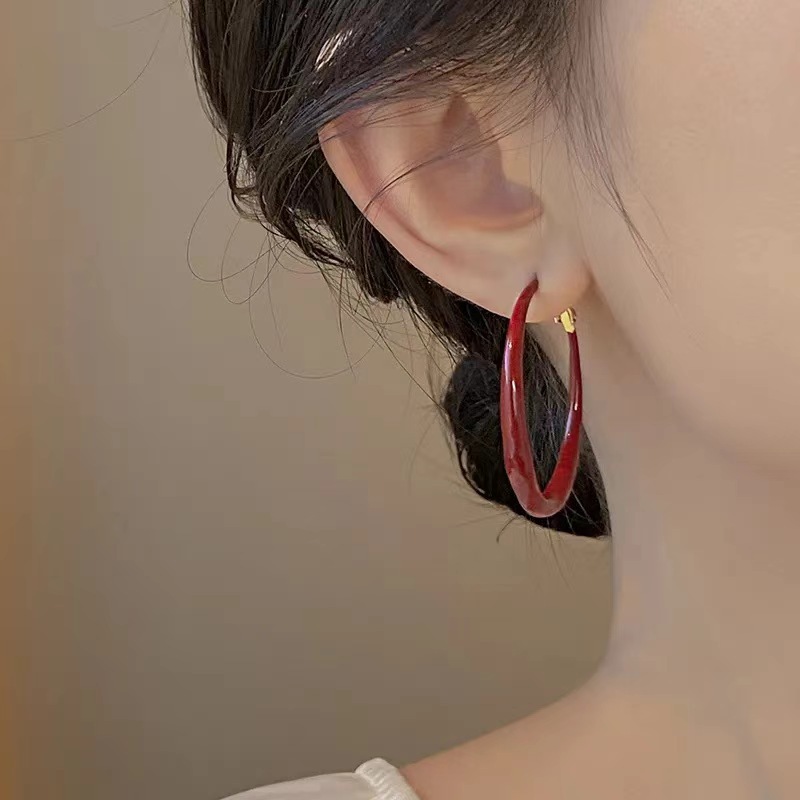 Новые женские серьги-кольца из красной эмали в европейском и американском стиле, стильные винтажные серьги для женщин в нишевом дизайне.