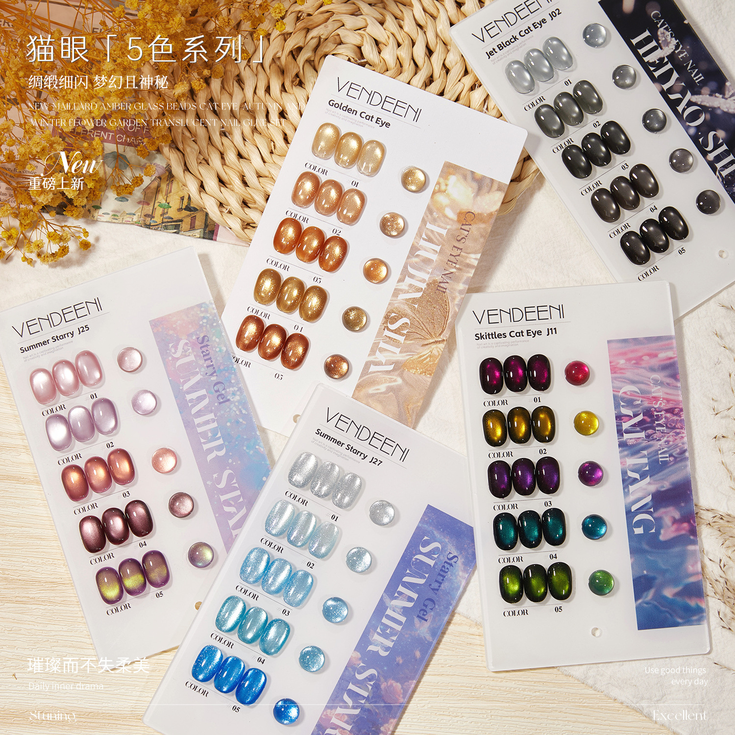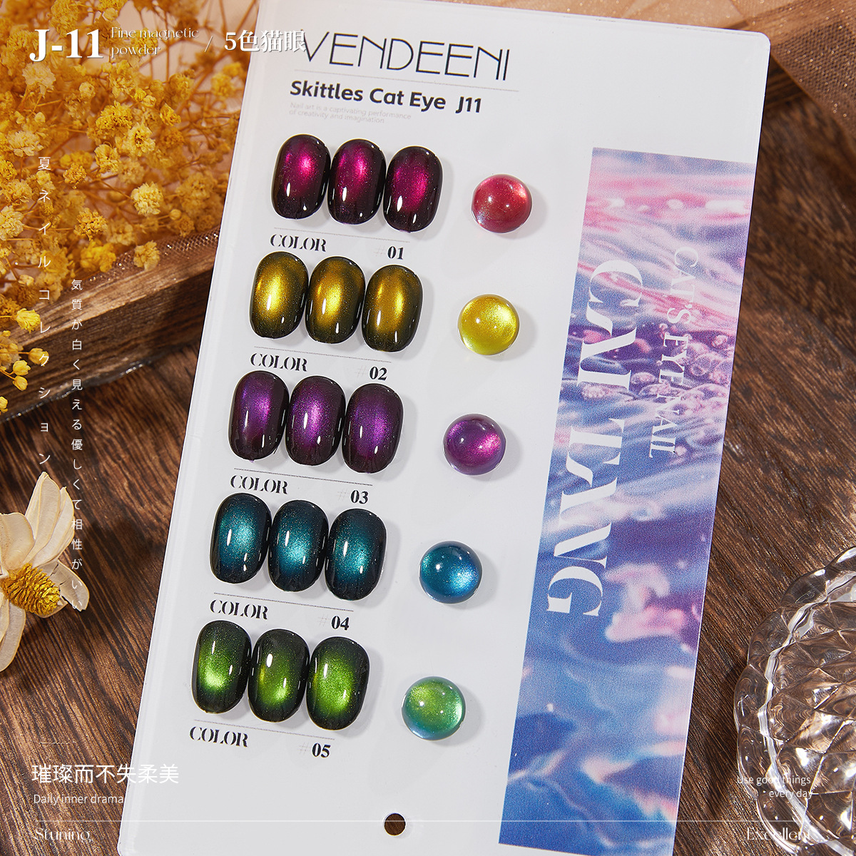 Серия J, 5 цветов, кошачий глаз