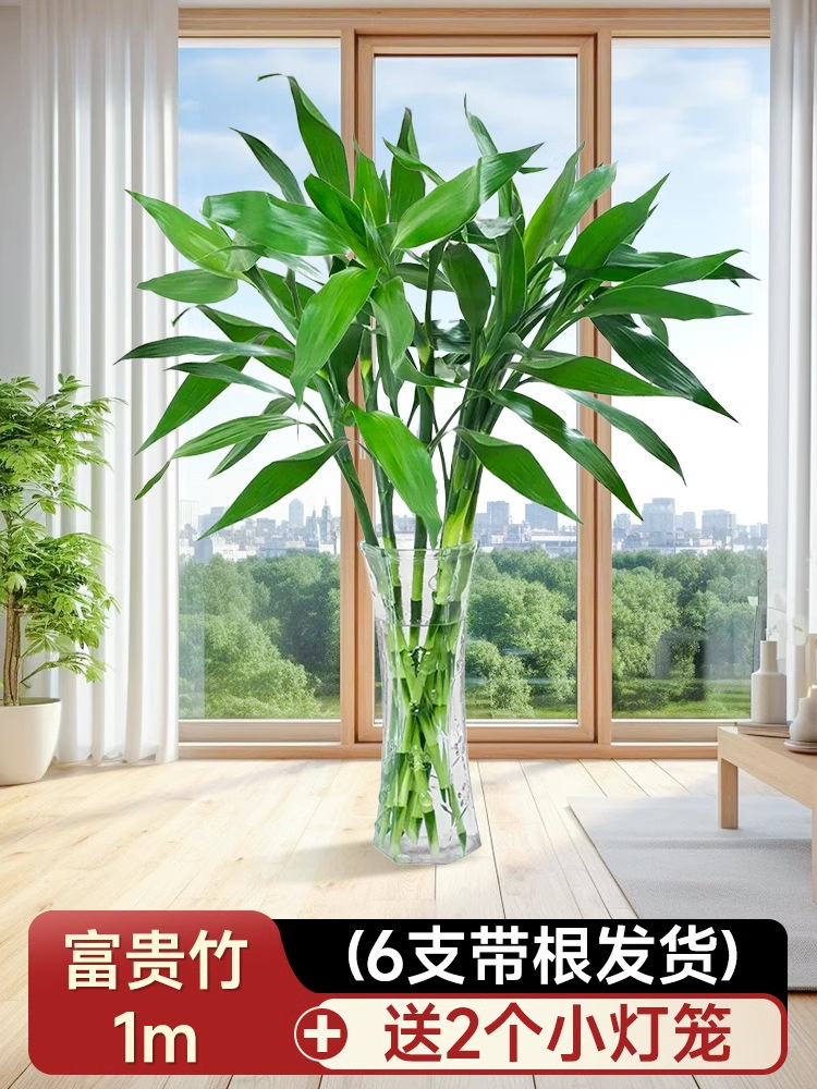 Премиум-растение с толстым стеблем, гидропонное растение Lucky Bamboo для богатства и процветания, бамбук с восходящими узлами, небольшое комнатное зеленое растение в горшке.