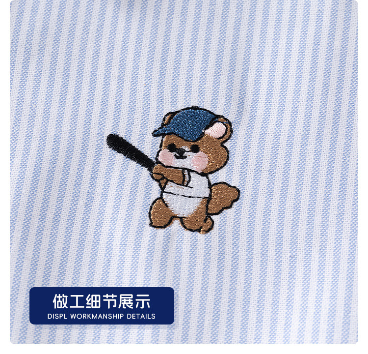 Бейсбольная рубашка в синюю полоску; Кремово-белая бейсбольная рубашка с медведем; Синяя бейсбольная рубашка с медведем; Абрикосовая полосатая бейсбольная рубашка с медведем