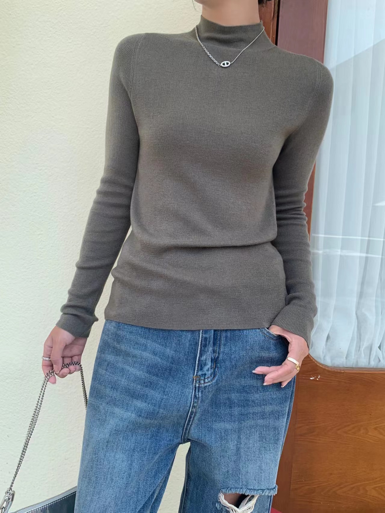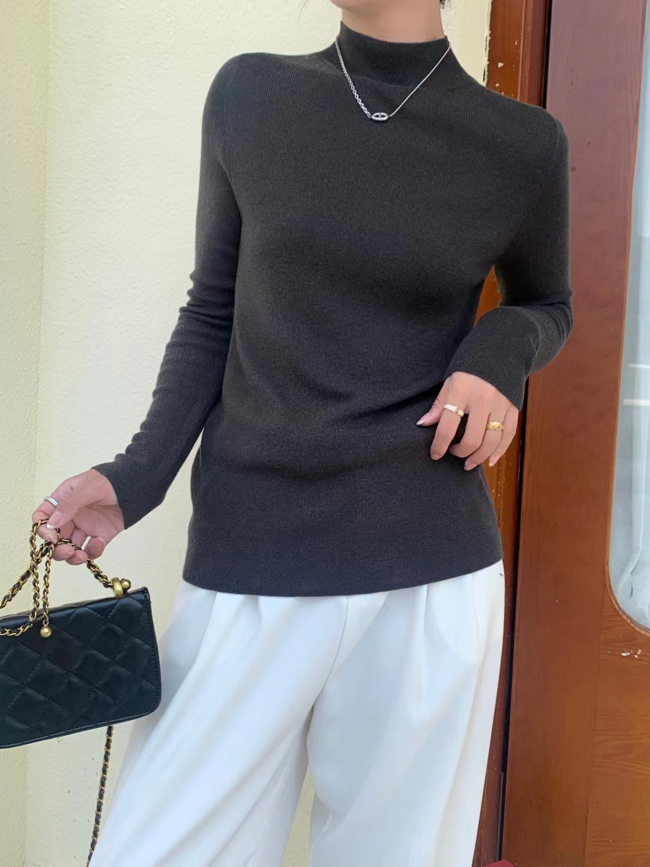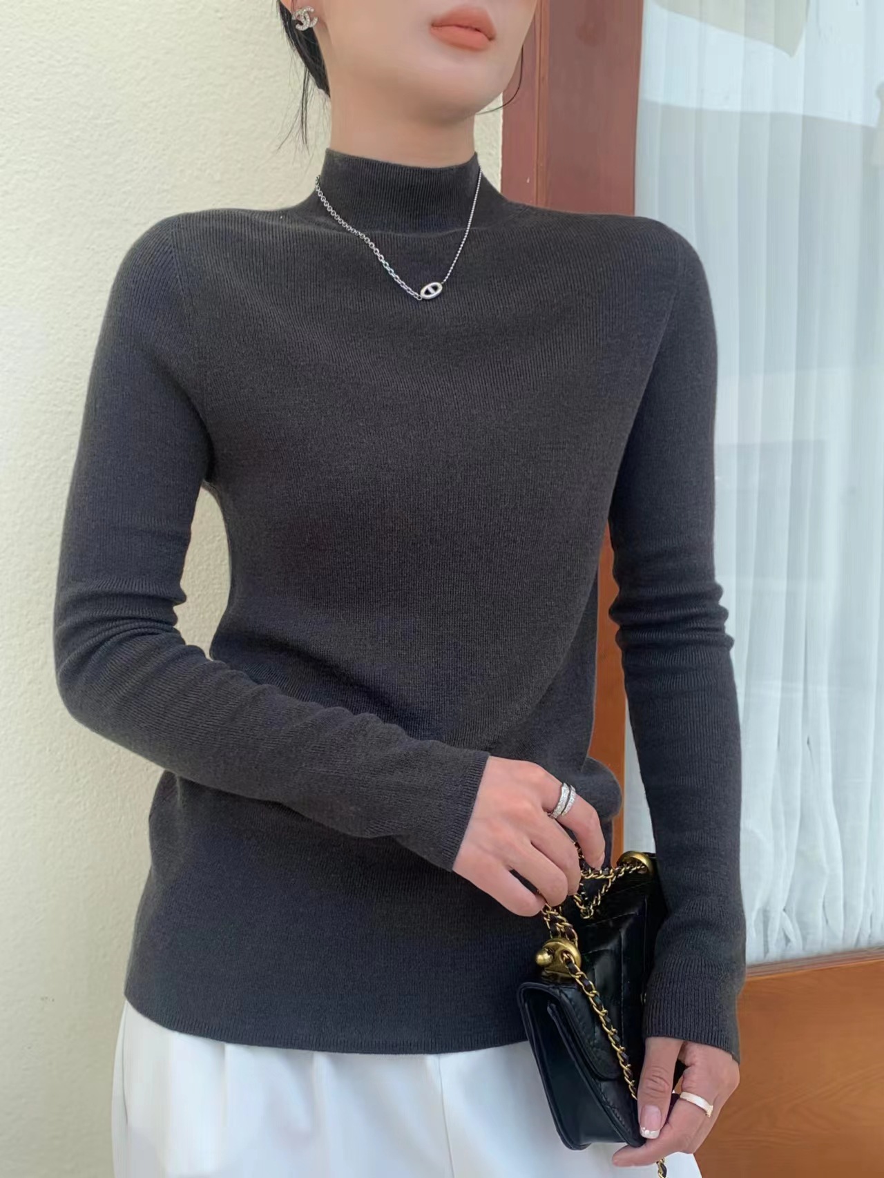 Шерстяная кашемировая нижняя рубашка с половиной воротника шелковицы