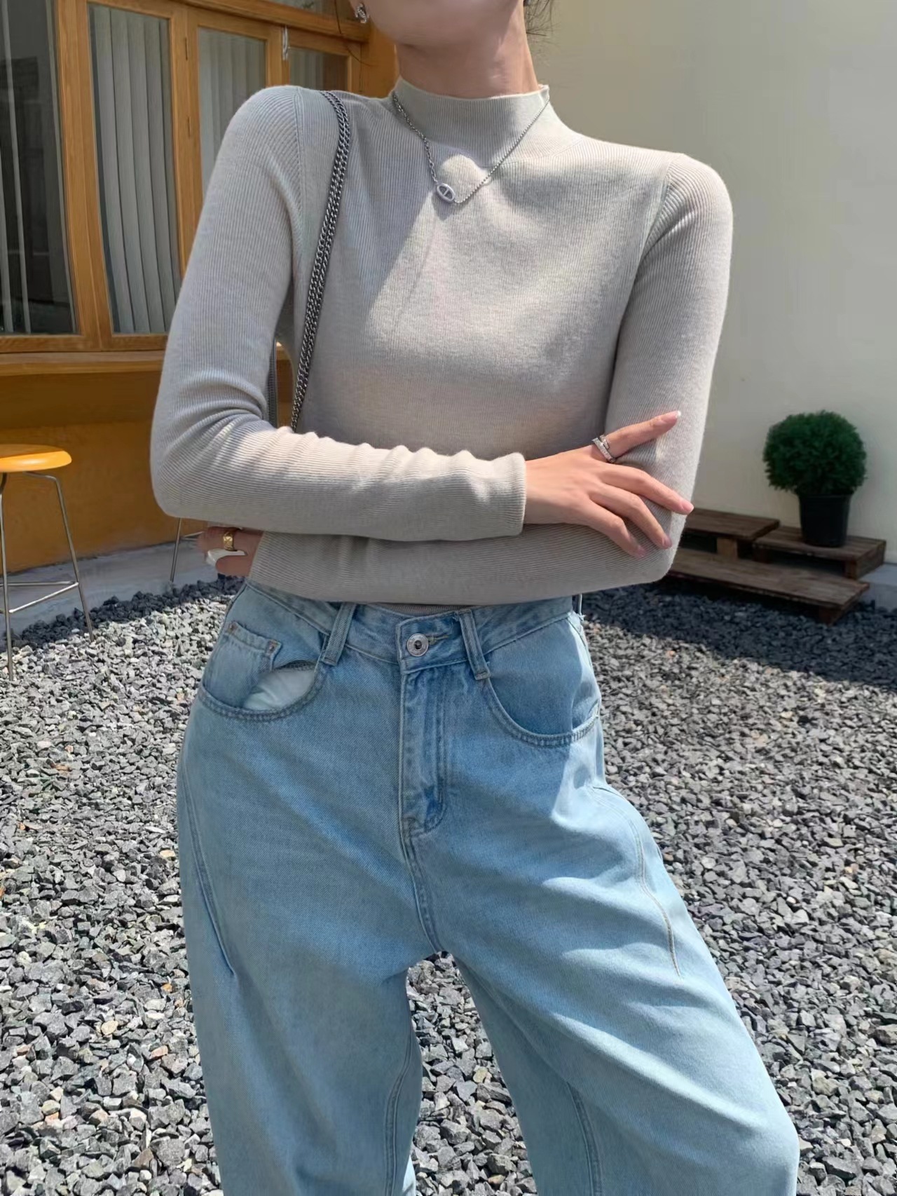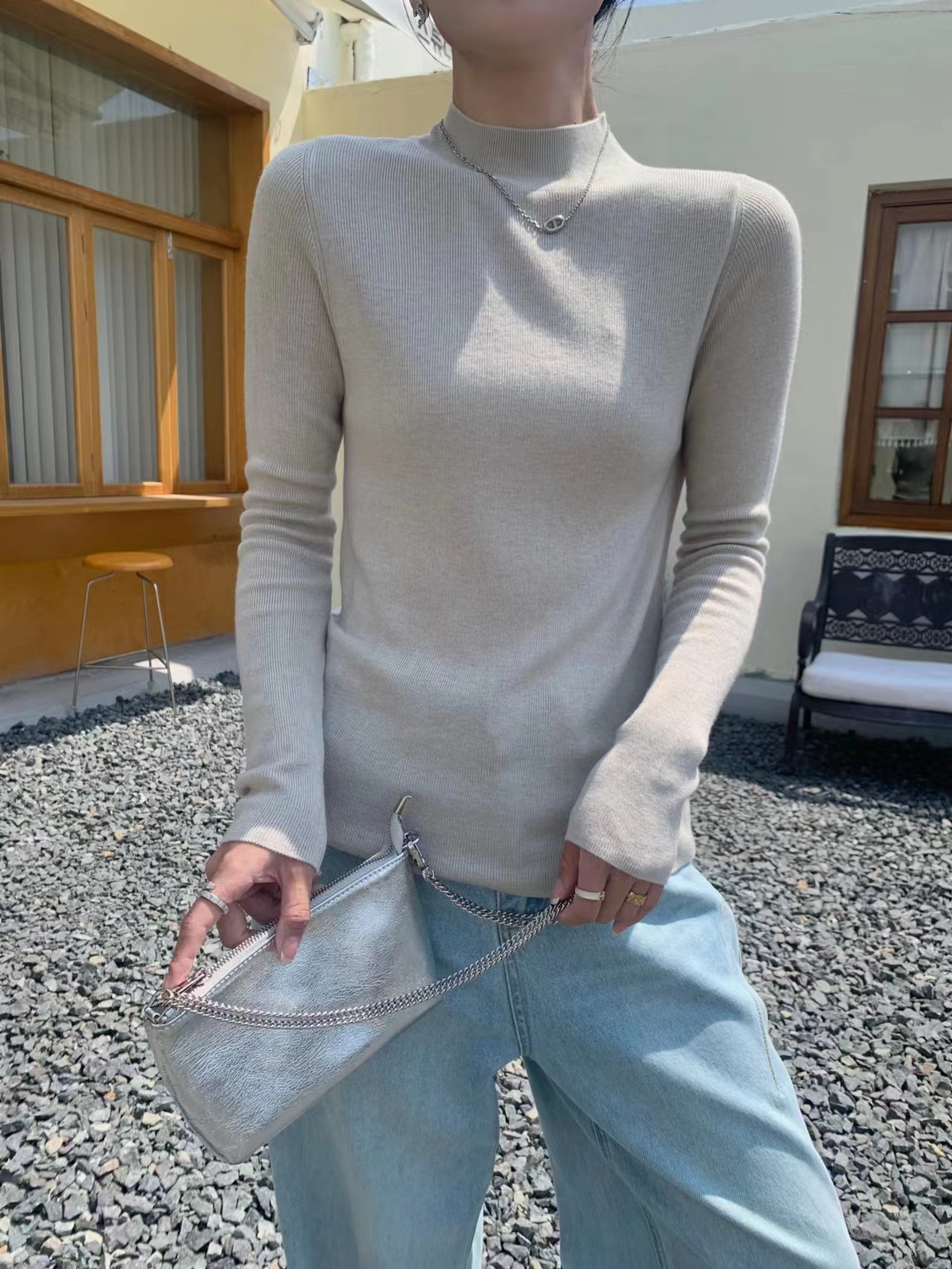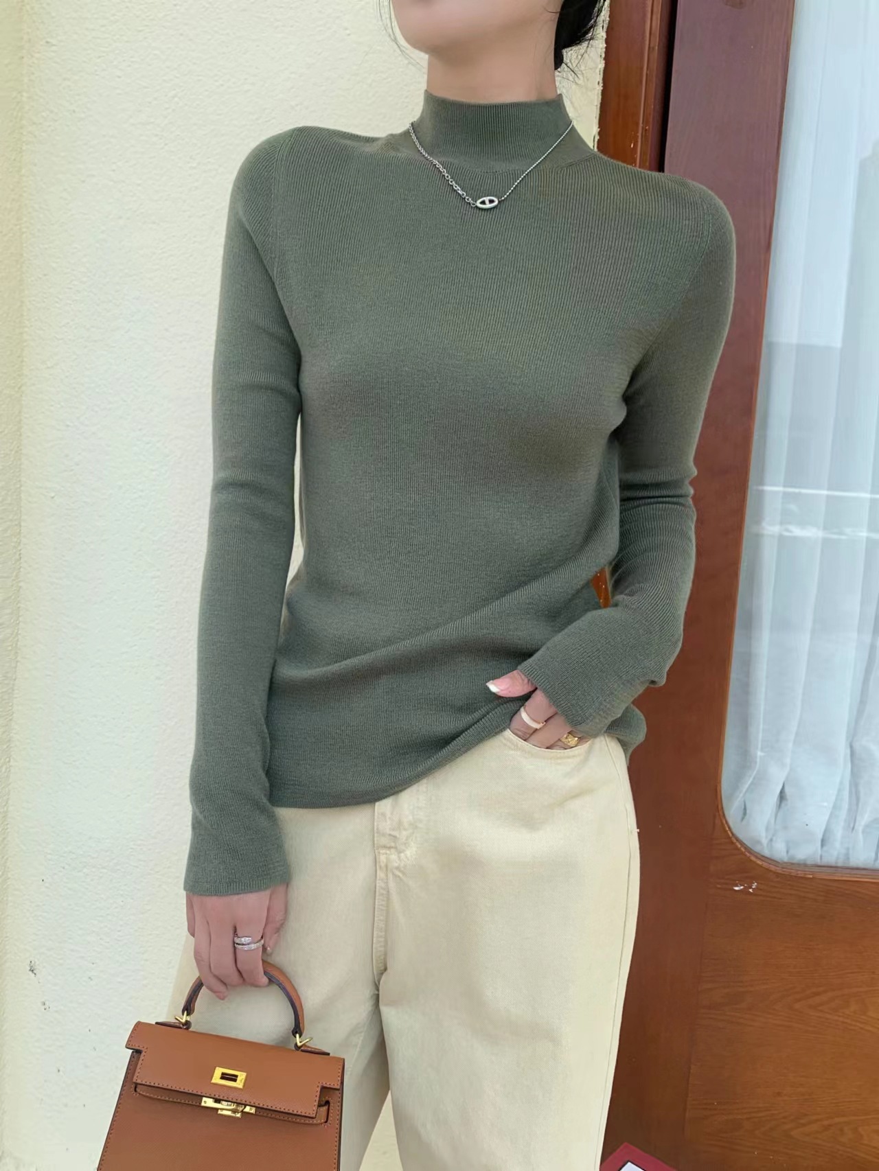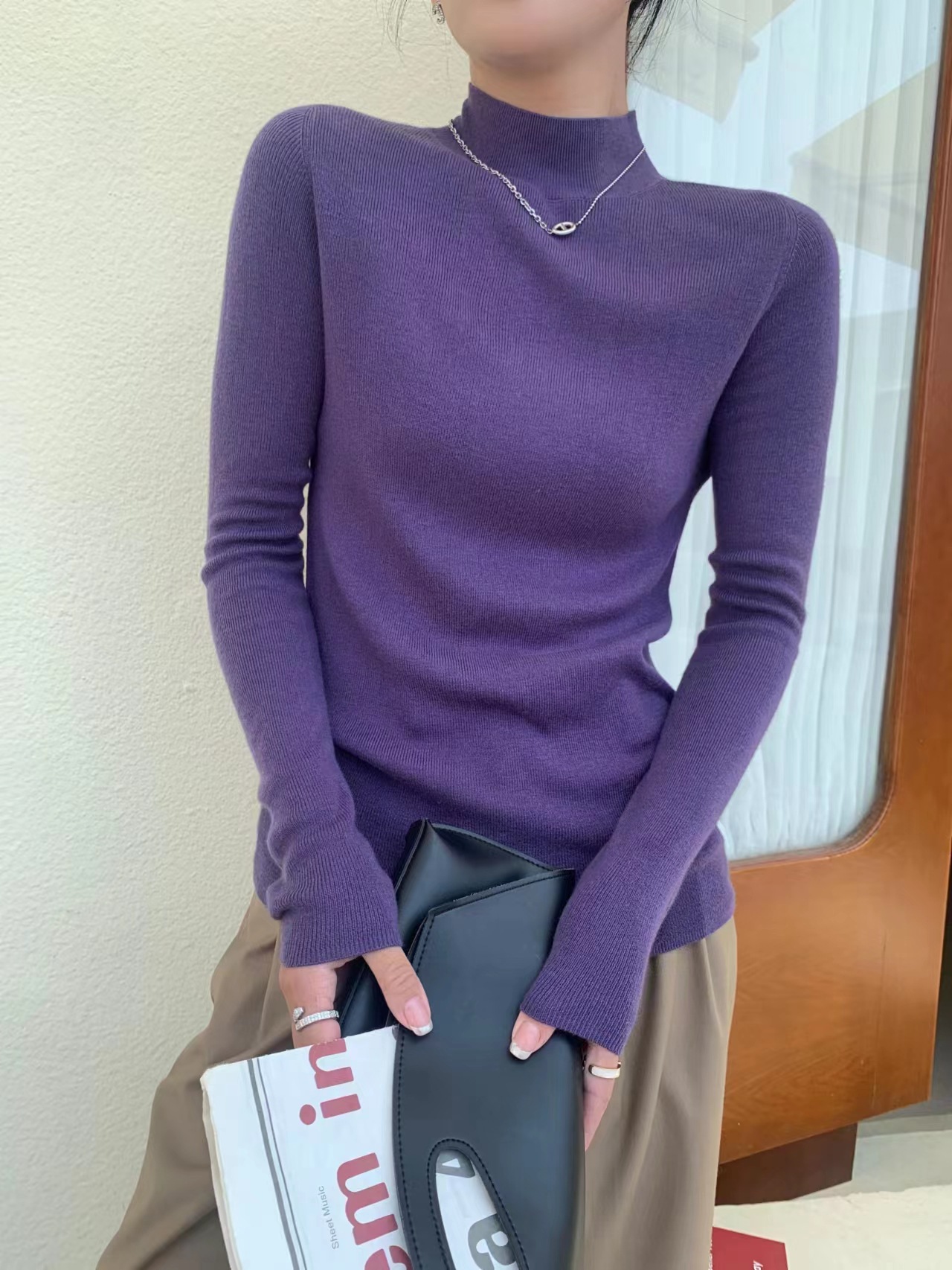 Шерстяная кашемировая нижняя рубашка с половиной воротника шелковицы