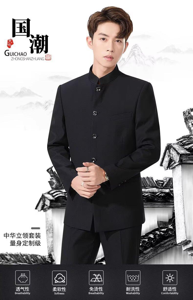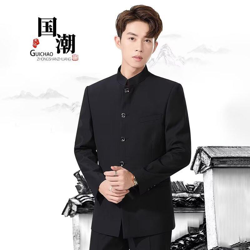 Мужской костюм Чжуншань Новый китайский стиль с воротником-поводком