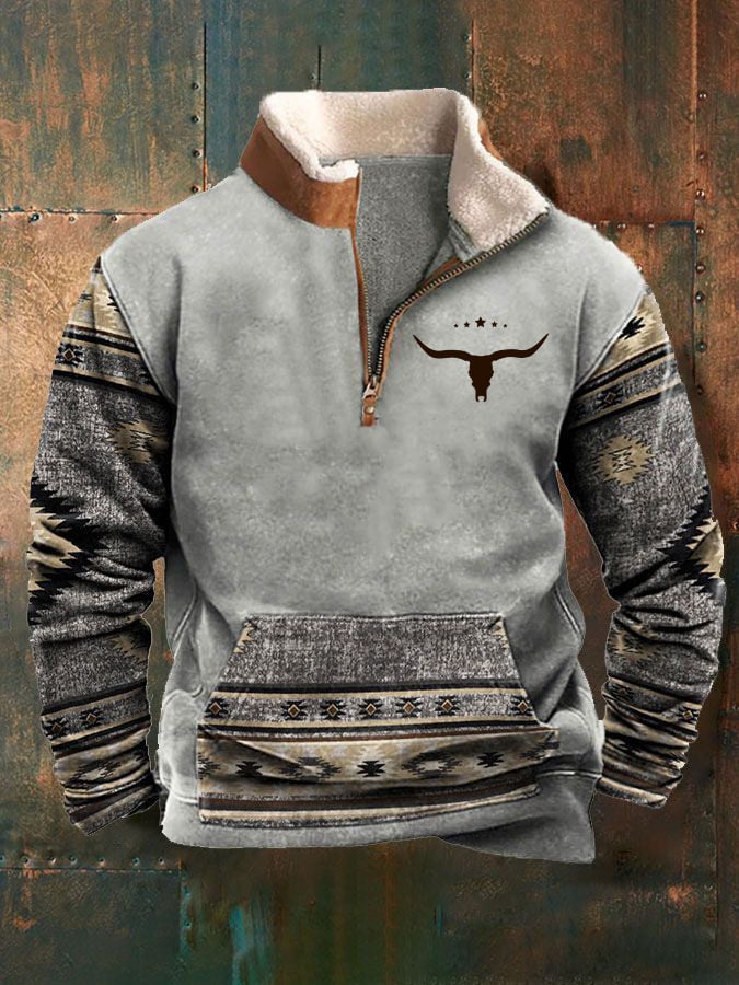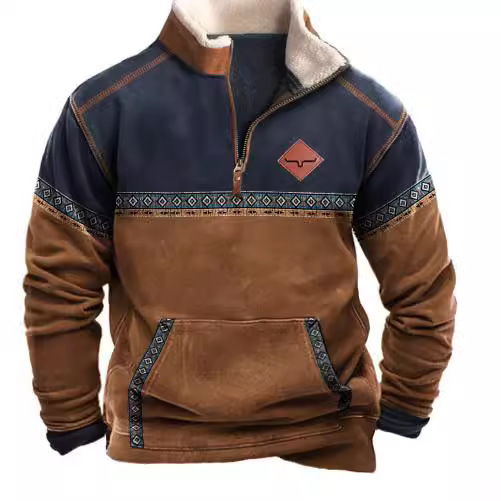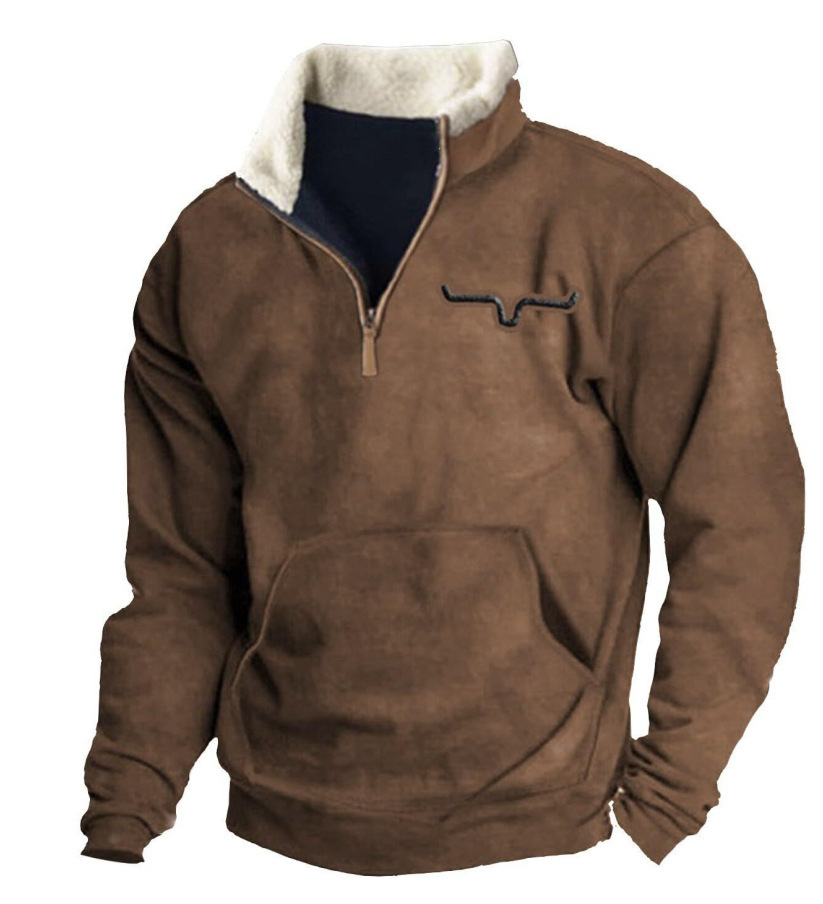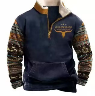 Amazon Весенний и Осенний мужской шерстяной воротник с длинным рукавом Половина застежки-молнии принт повседневная мода европейская и американская мода куртка 285