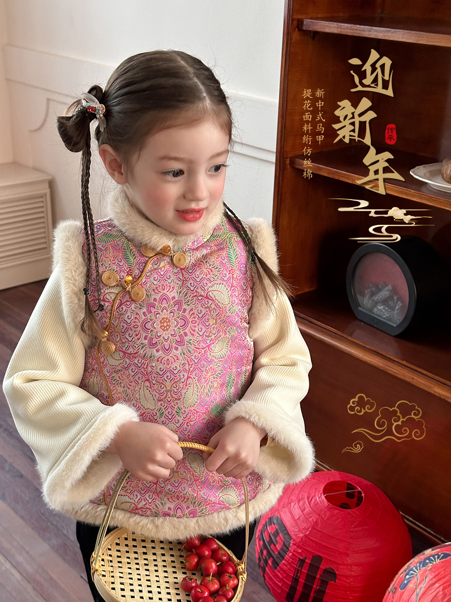 [Плюшевая утолщение] Aimo Bebe девушка новый китайский теплая новогодние куртки жаккарда чонсам жилет