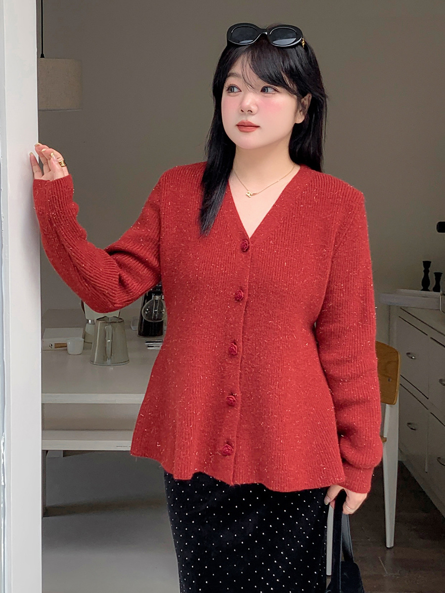 Корейский серебряный шелковый вязаный кардиган с v-образным вырезом, зимний новый свитер на пуговицах с маленьким ароматным цветком, 441964