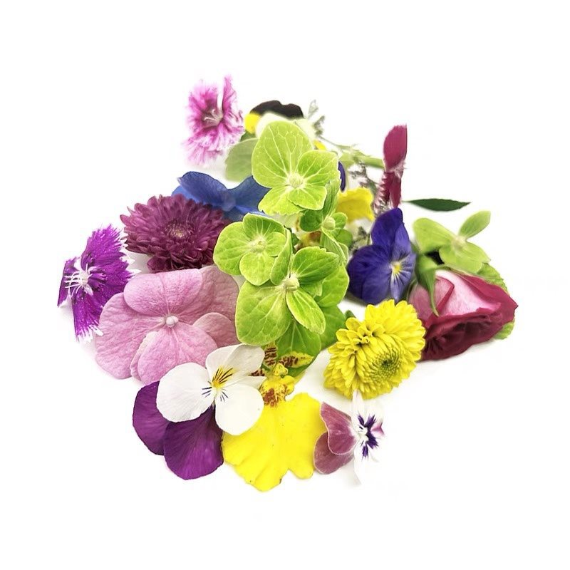 Свежие астры, съедобные цветы, западная кухня в отеле, запеченные напитки, японские холодные блюда, сашими, украшение тарелок.