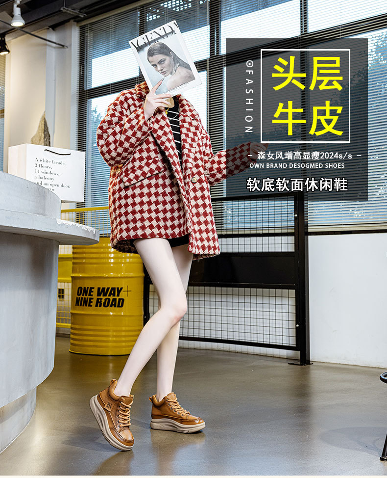 Женская обувь из воловьей кожи первого слоя, новинка зимы 2024, бархатные туфли с высоким берцем, женская повседневная обувь, женские кроссовки в стиле ретро, спортивная обувь женская
