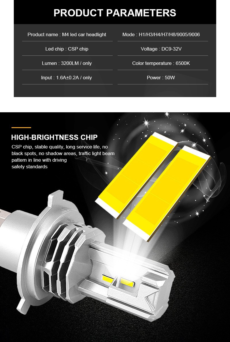 Эксклюзивная трансграничная поставка автомобильных ламп M4led: фары дальнего и ближнего света с прямым подключением, передние фары, противотуманные фары, модифицированные белые лампы H7.