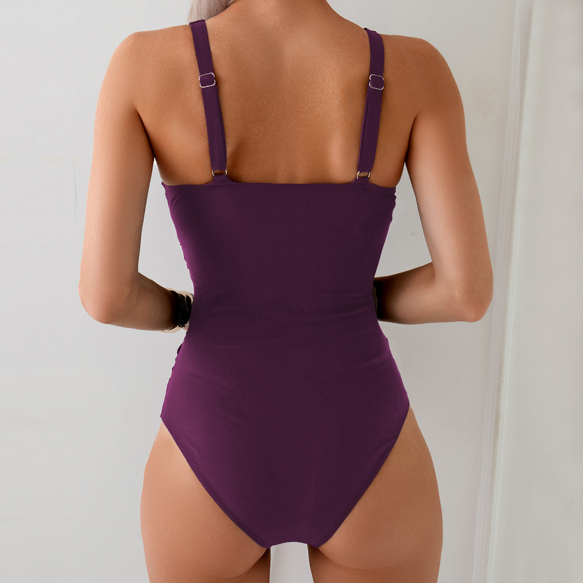 Цельный купальник 2026 года, однотонный, в европейском и американском стиле, популярный, с перекрестными бретелями, нейлоновый, для женщин, с эффектом пуш-ап, для внешней торговли