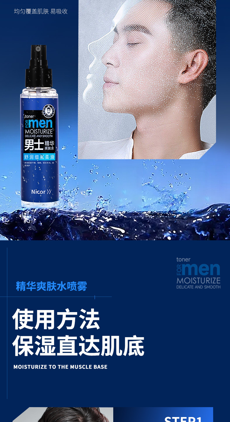 Nicor Мужская эссенция Тонер 100 мл Тонкий увлажняющий спрей Тонер для увлажнения пор