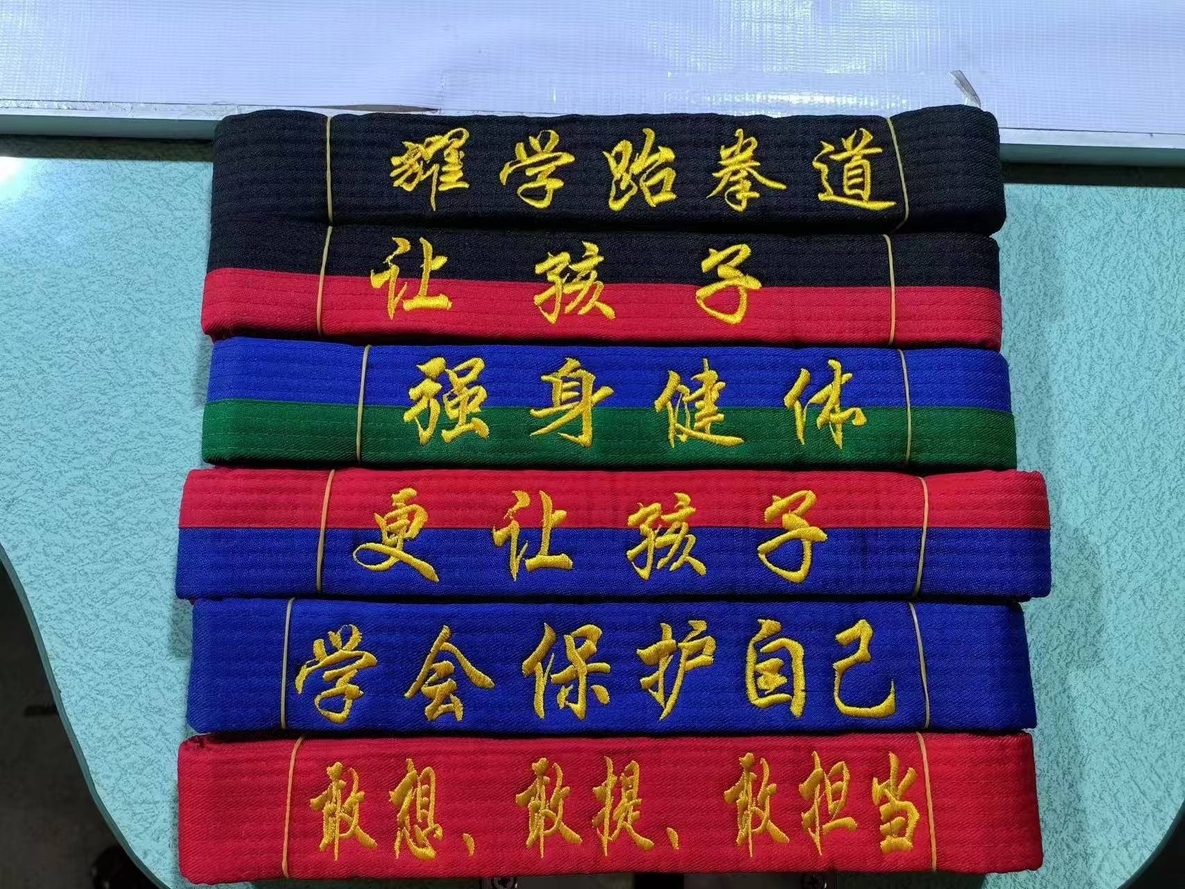 Вышивка лентой [Китайская ассоциация тхэквондо + имя]; Вышивка лентой [Союз мирового тхэквондо + Имя]; Вышивка лентой [название зала + имя]; Вышивка лентой [по индивидуальному заказу]; [Без вышивки] Ремень по сниженной цене.