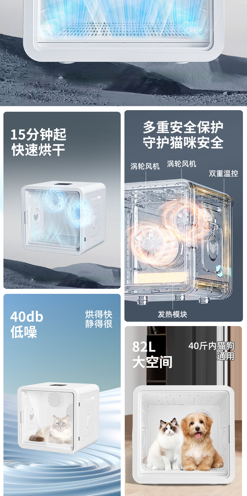 Pet сушильная коробка собака универсальная сушилка 82L большой емкости двойной ветер интеллектуальная сушильная машина автоматическая сушильная машина