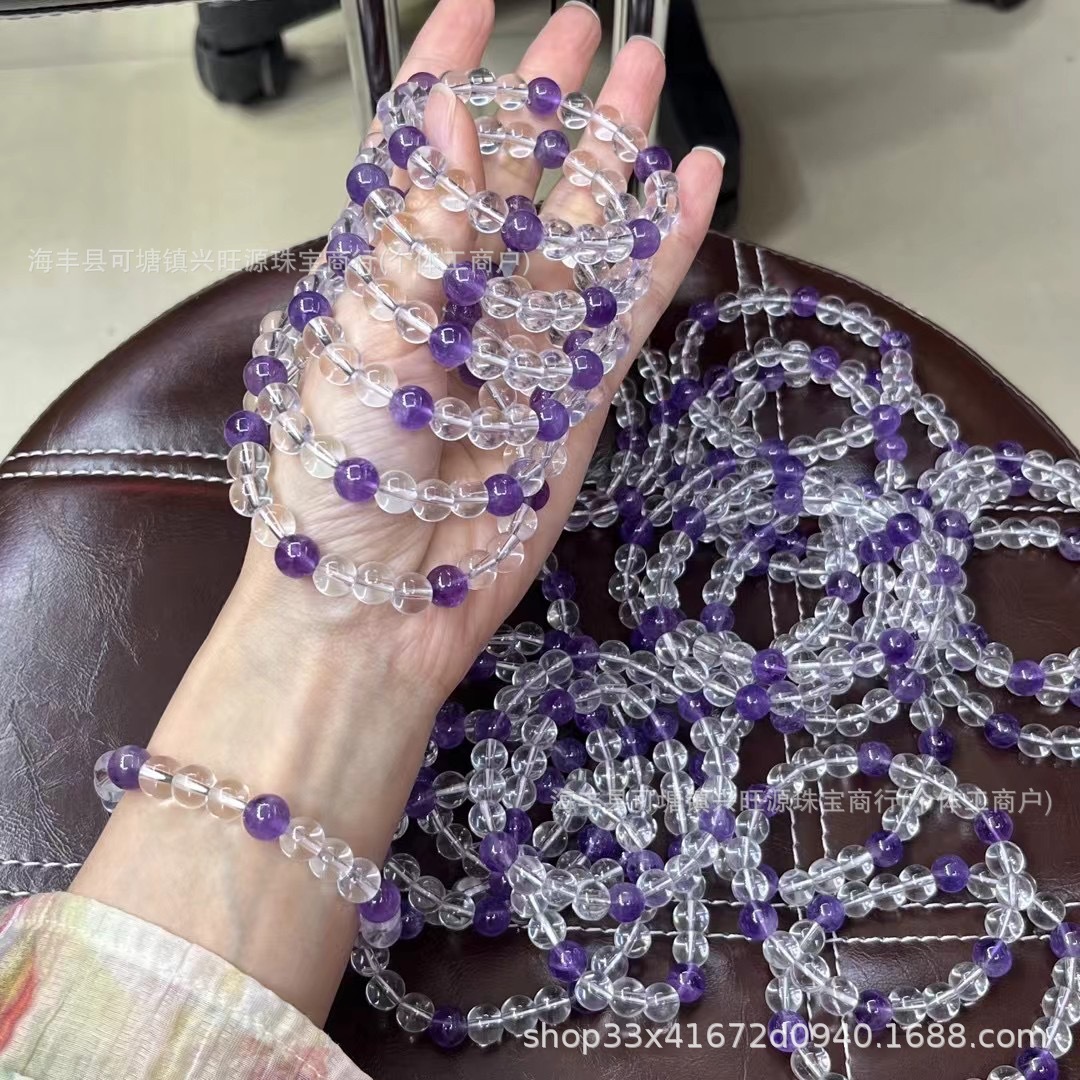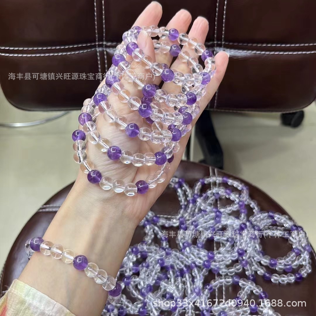 兴旺源珠宝九紫离火紫水晶搭白玻璃冰种手链清新夏天女生福利直播 批发量越大价格越低,可供直播间长期合作,欢迎来电私聊
