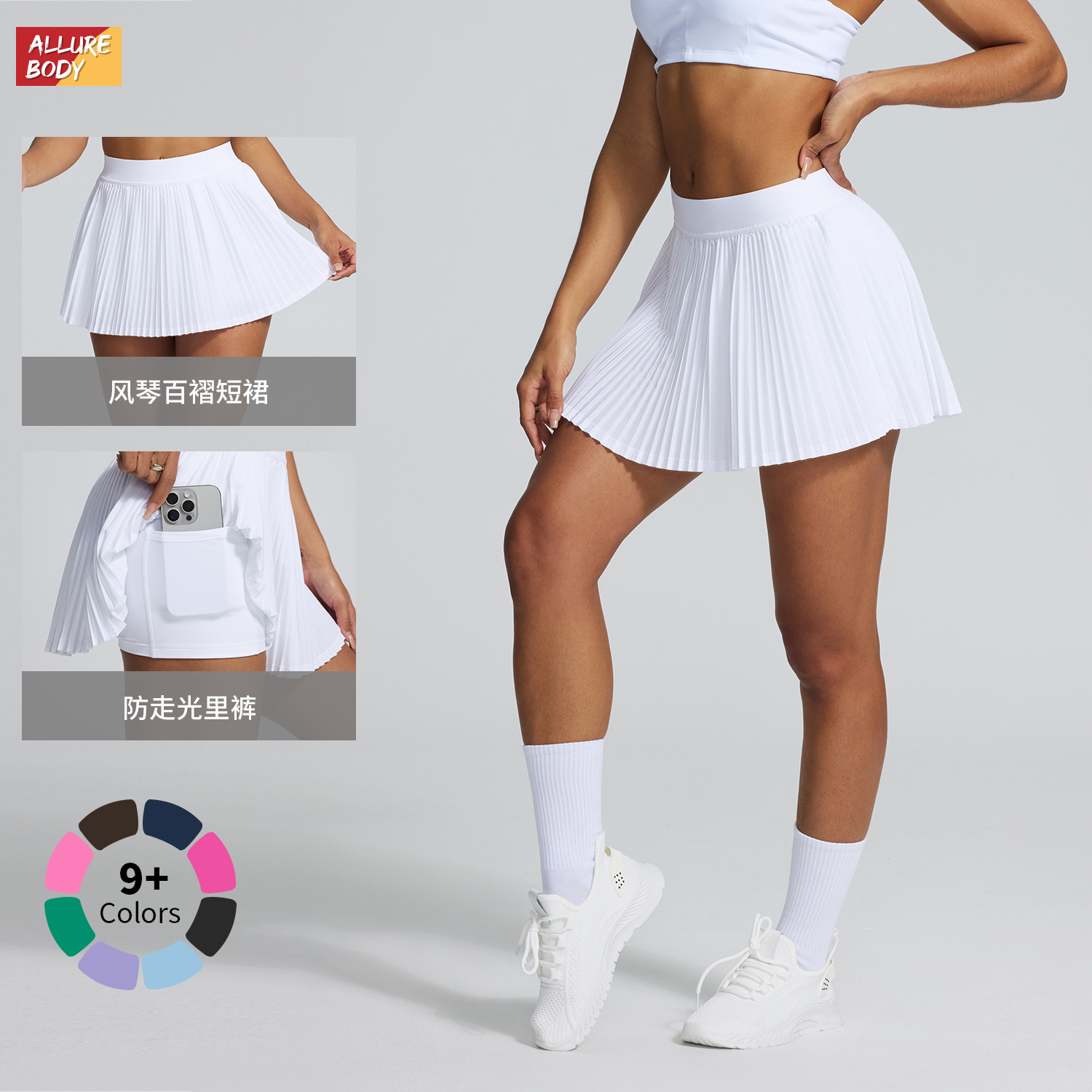 Трансграничная европейская и американская повседневная плиссированная спортивная юбка с тонкими бедрами на открытом воздухе фитнес теннисная юбка анти-легкая йога юбка