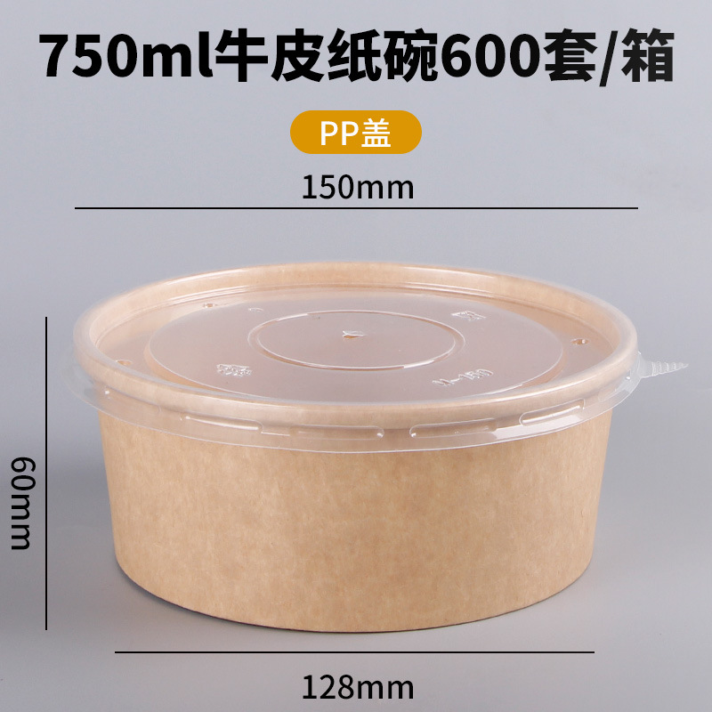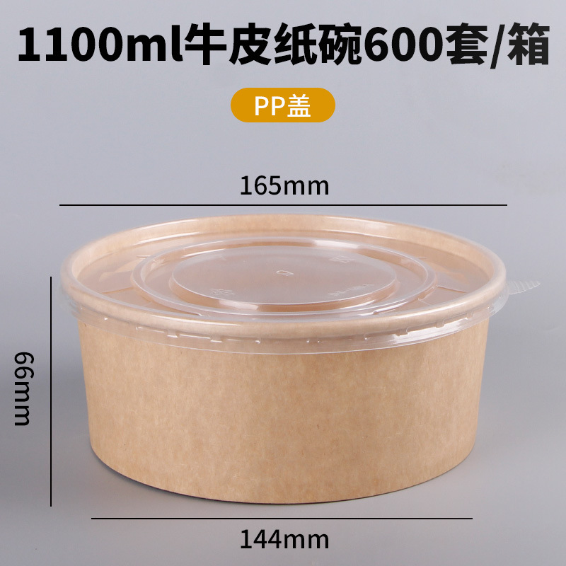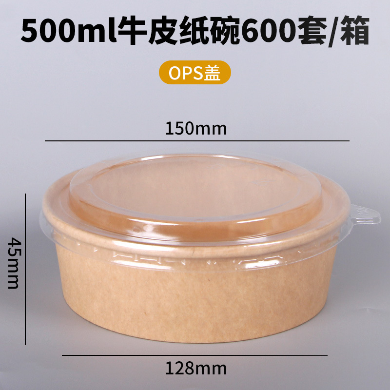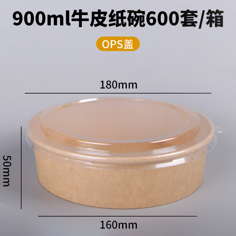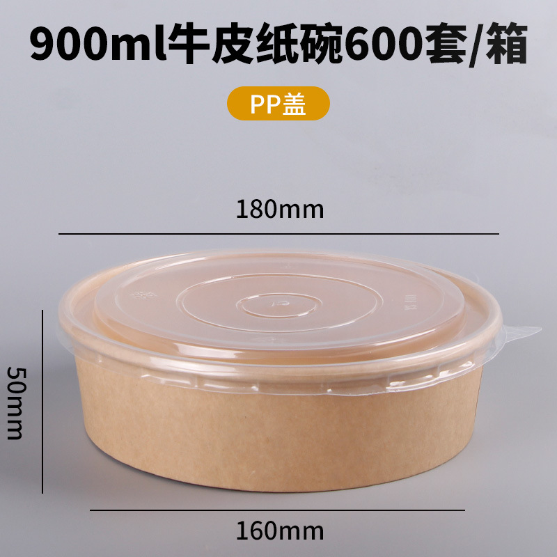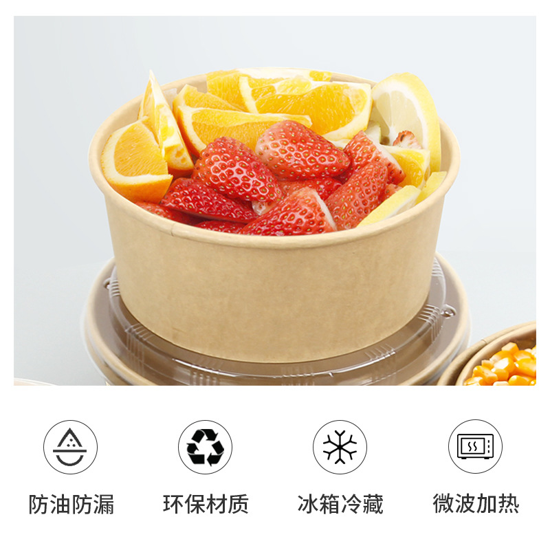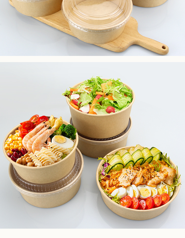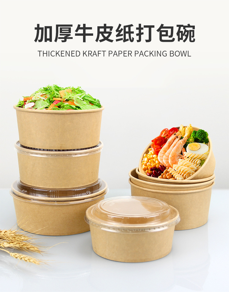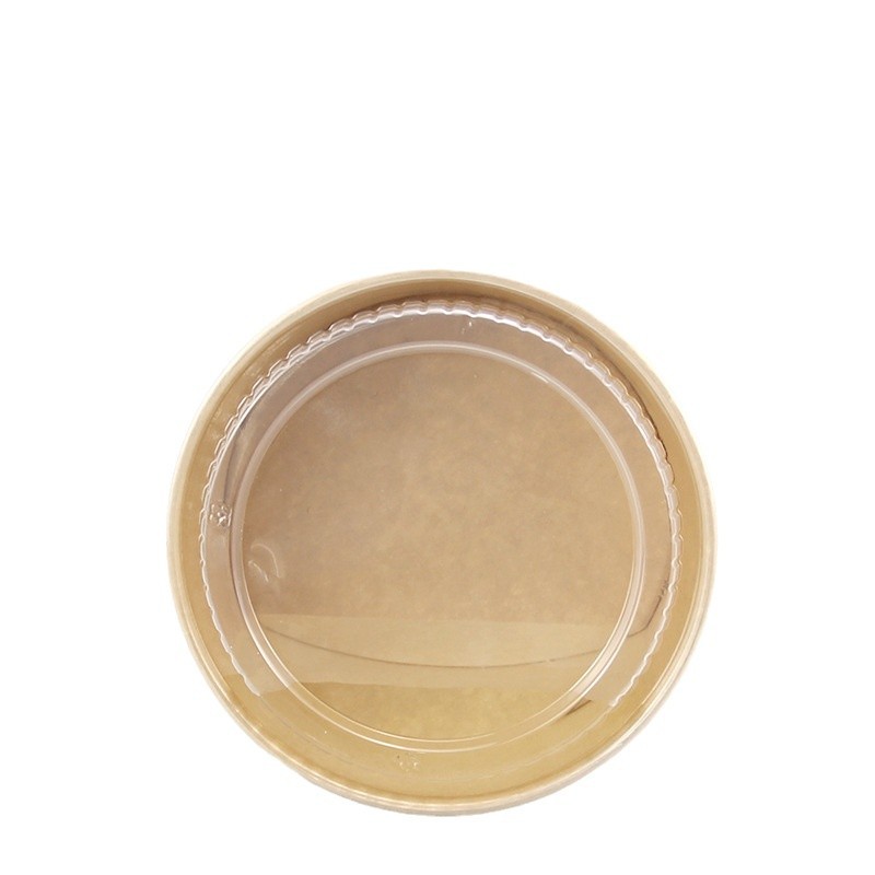 Одноразовая миска из крафт-бумаги, круглая картонная упаковочная коробка с прозрачной крышкой, утолщенная миска для фруктового салата на вынос, оптовая продажа