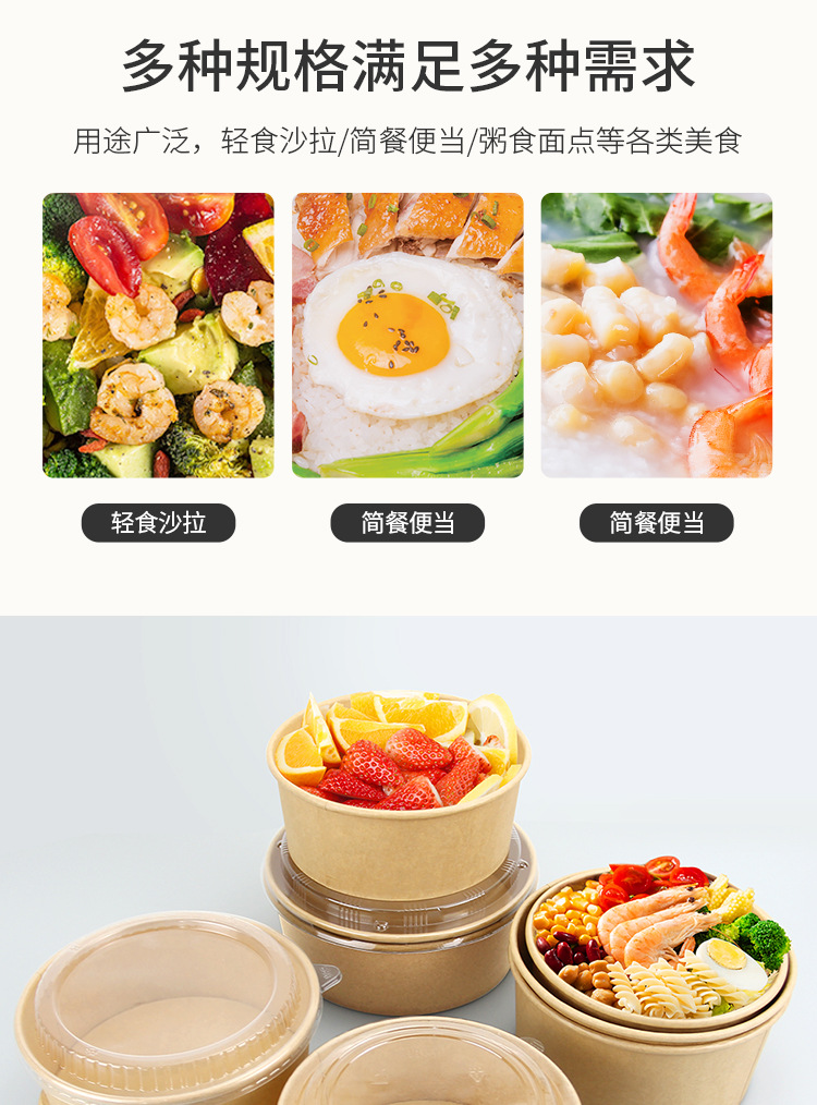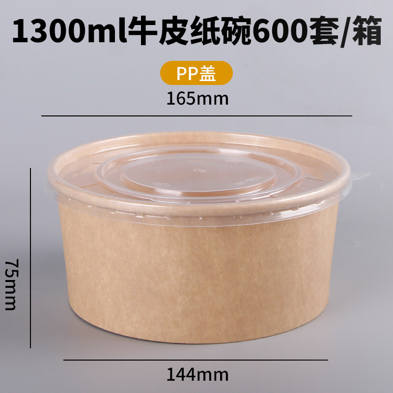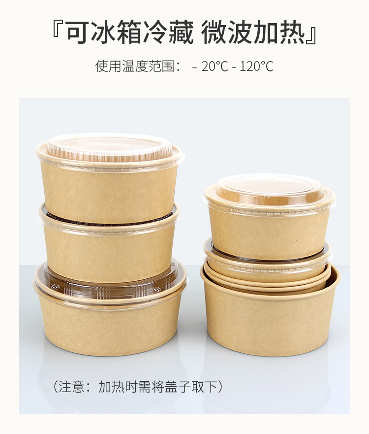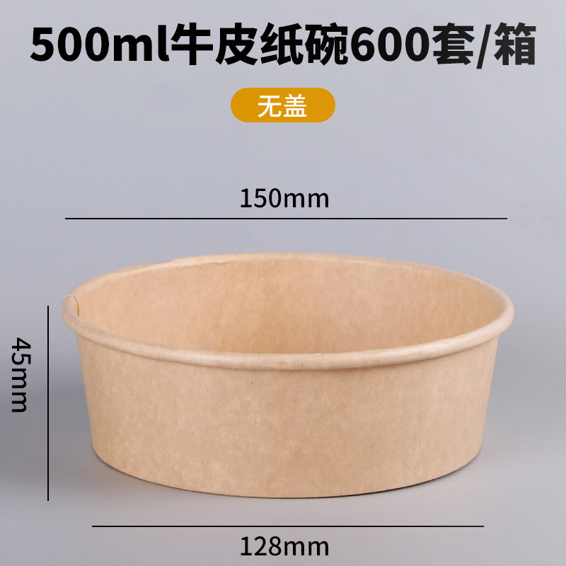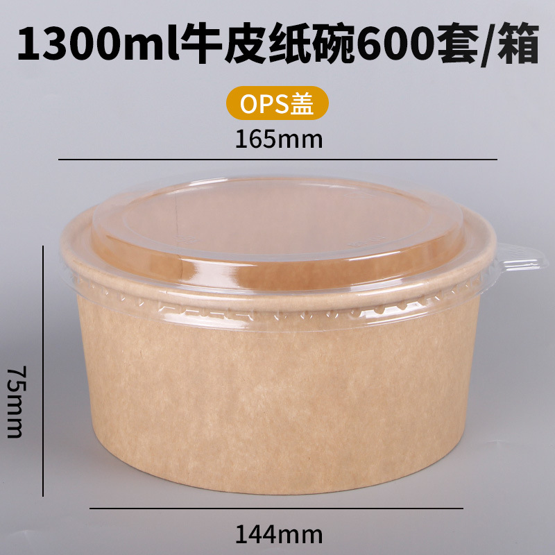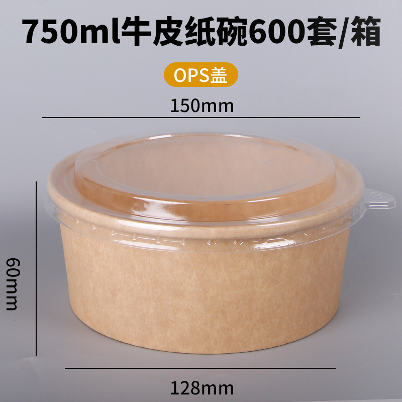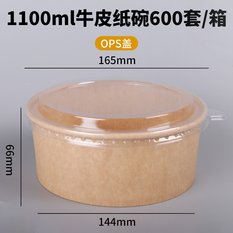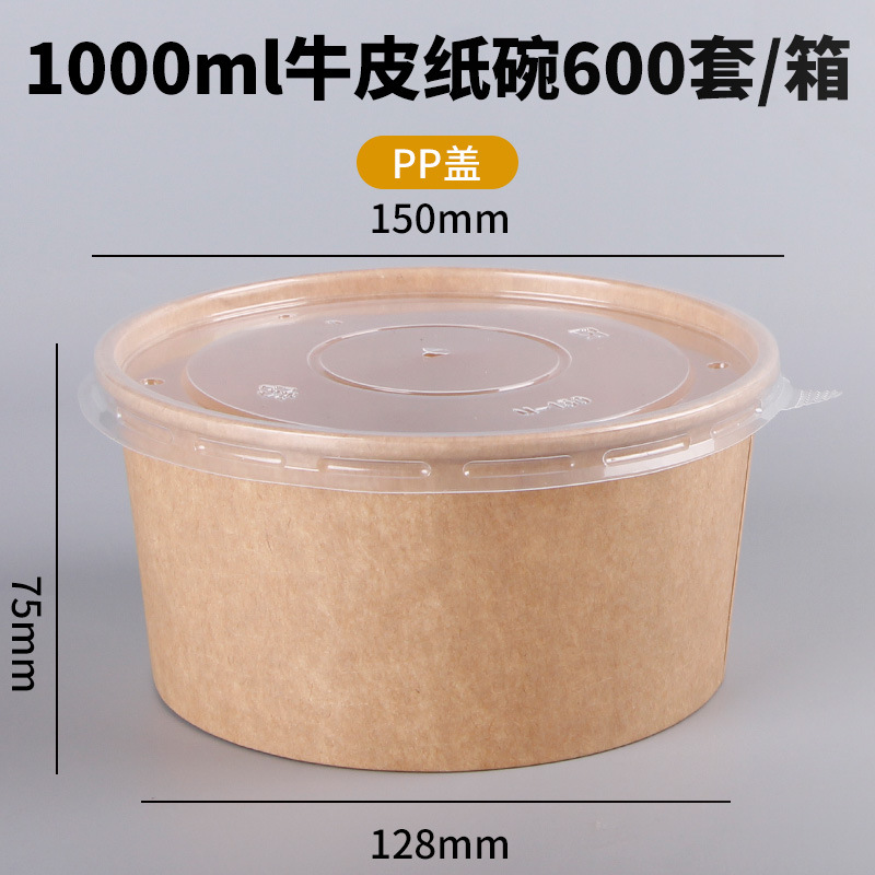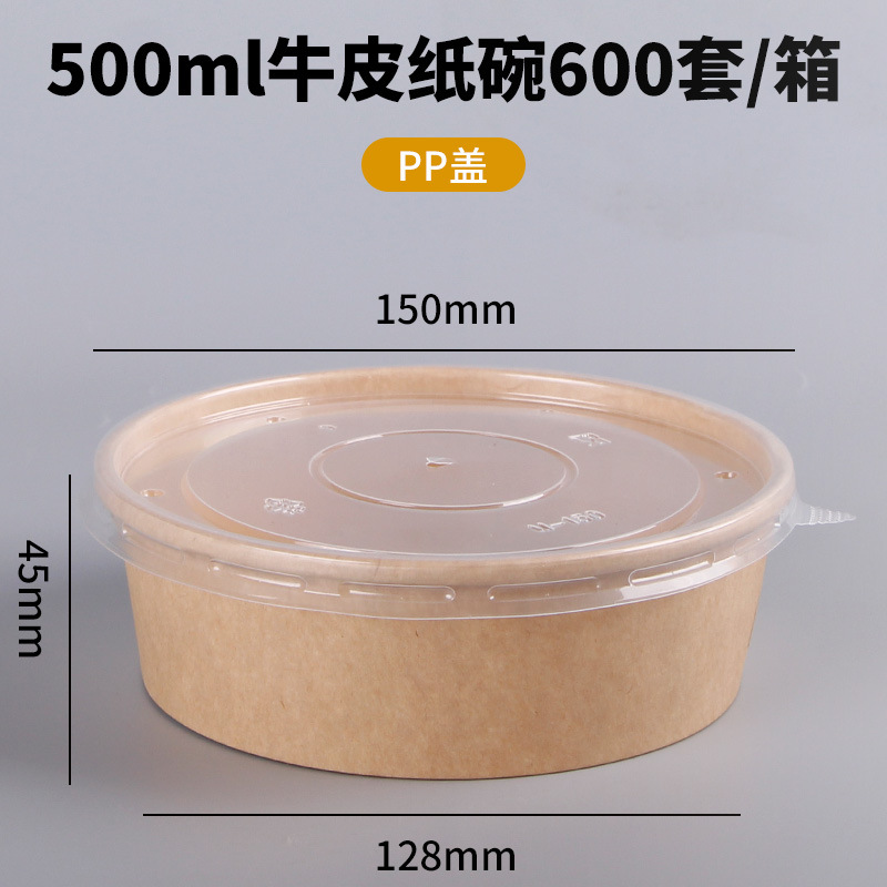 Одноразовая миска из крафт-бумаги, круглая картонная упаковочная коробка с прозрачной крышкой, утолщенная миска для фруктового салата на вынос, оптовая продажа