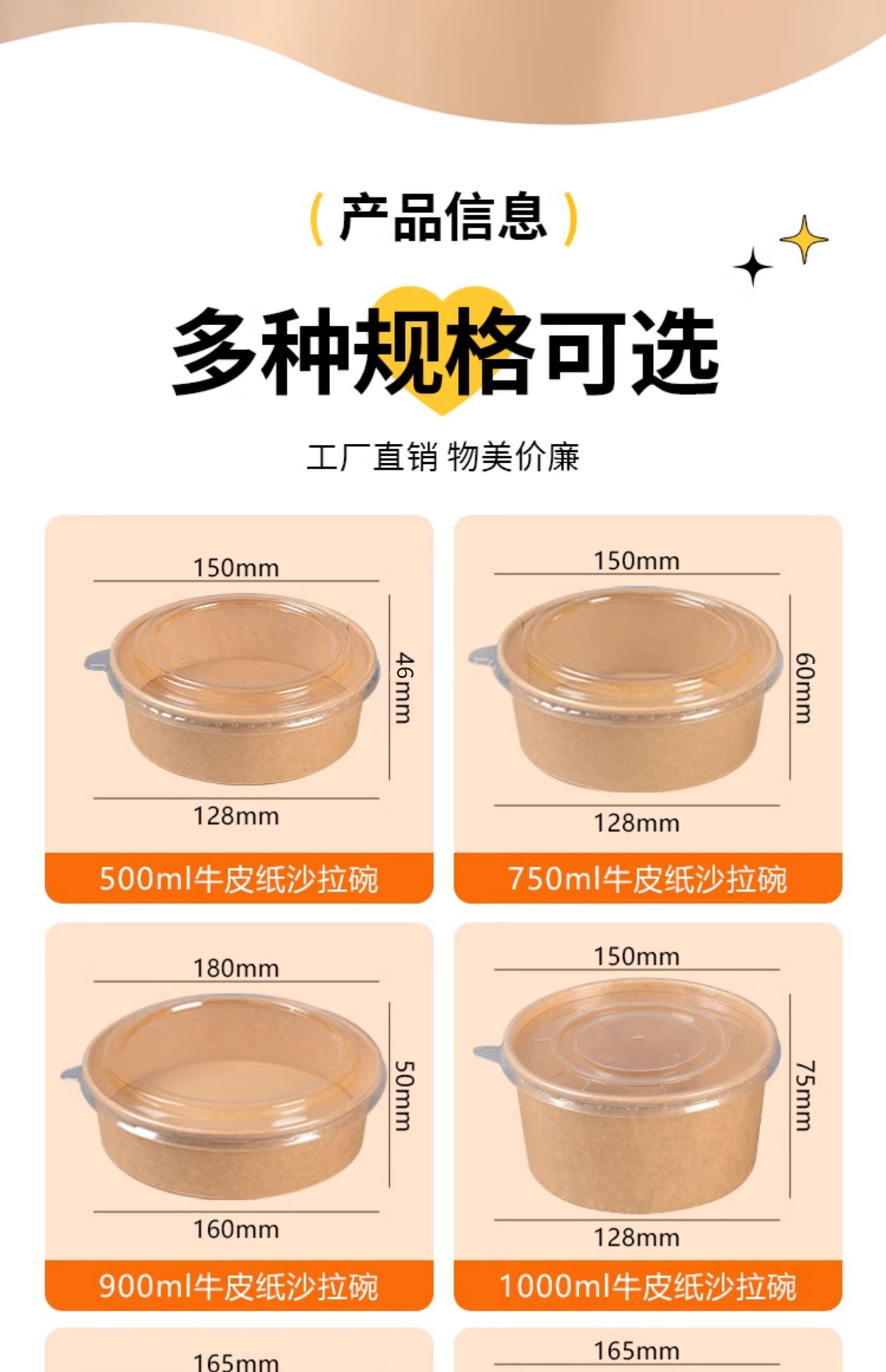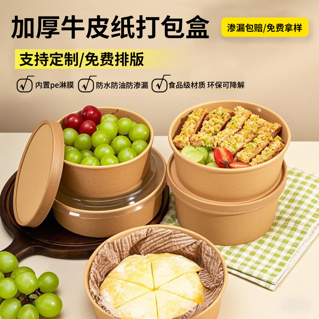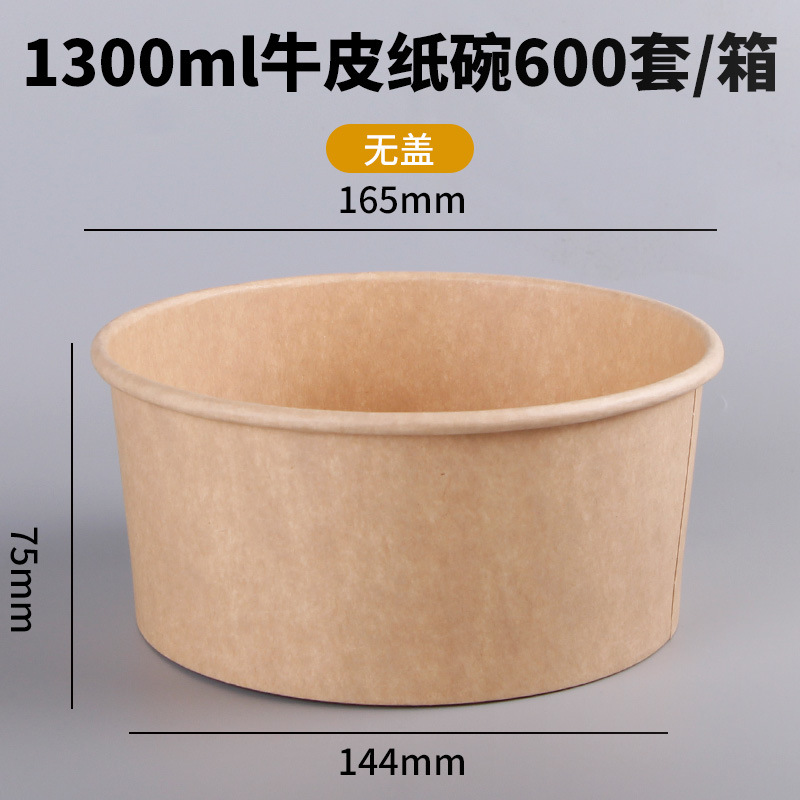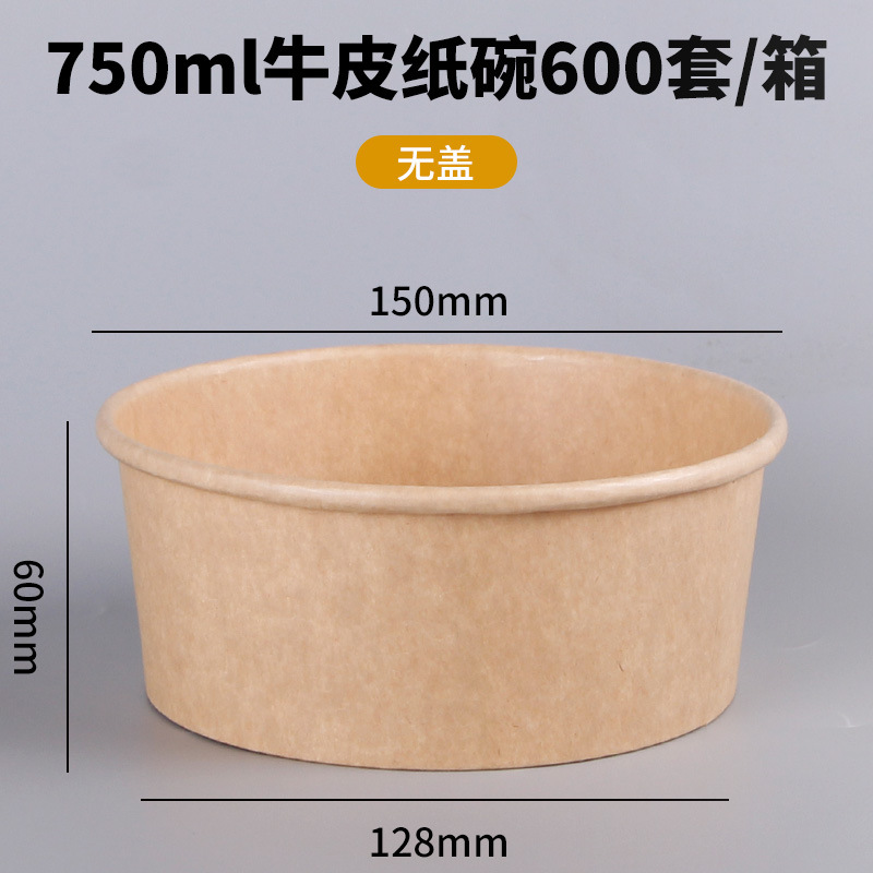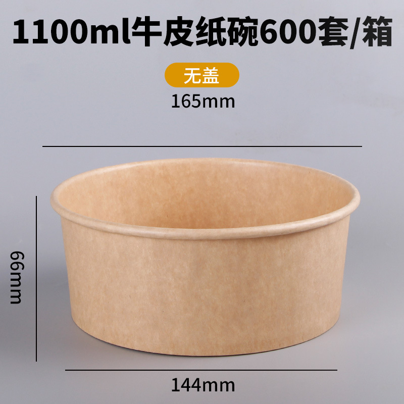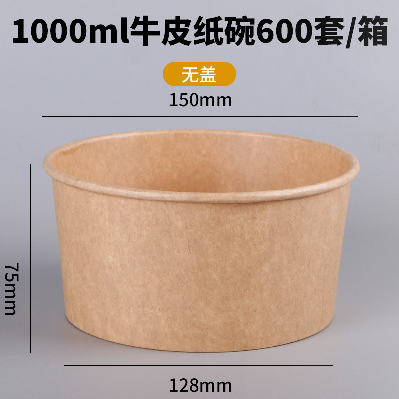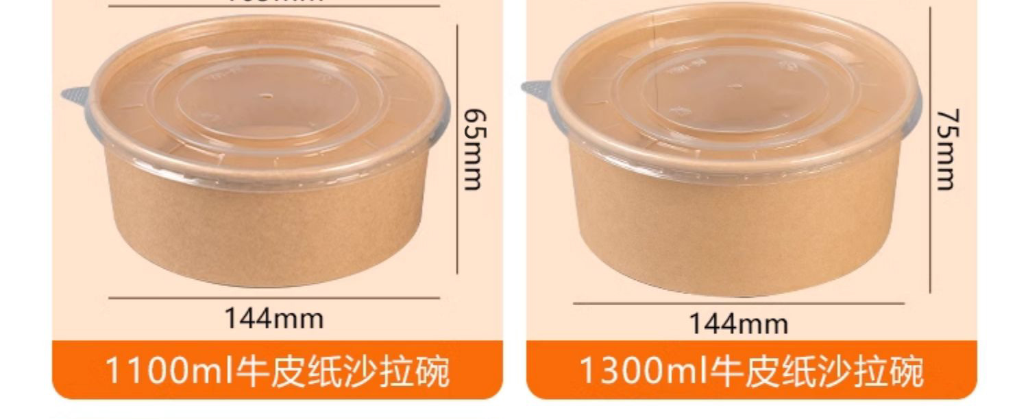 Одноразовая миска из крафт-бумаги, круглая картонная упаковочная коробка с прозрачной крышкой, утолщенная миска для фруктового салата на вынос, оптовая продажа