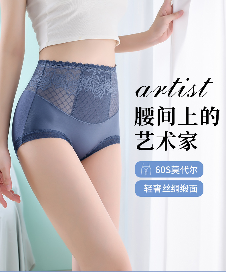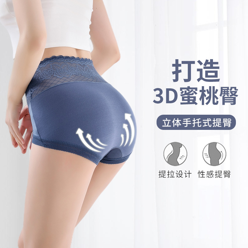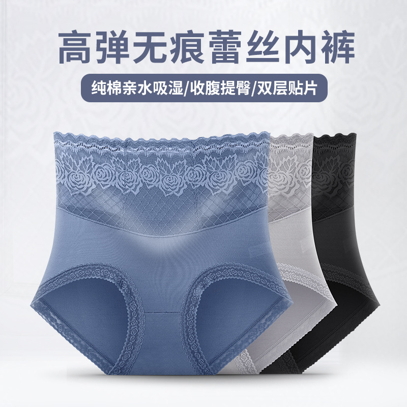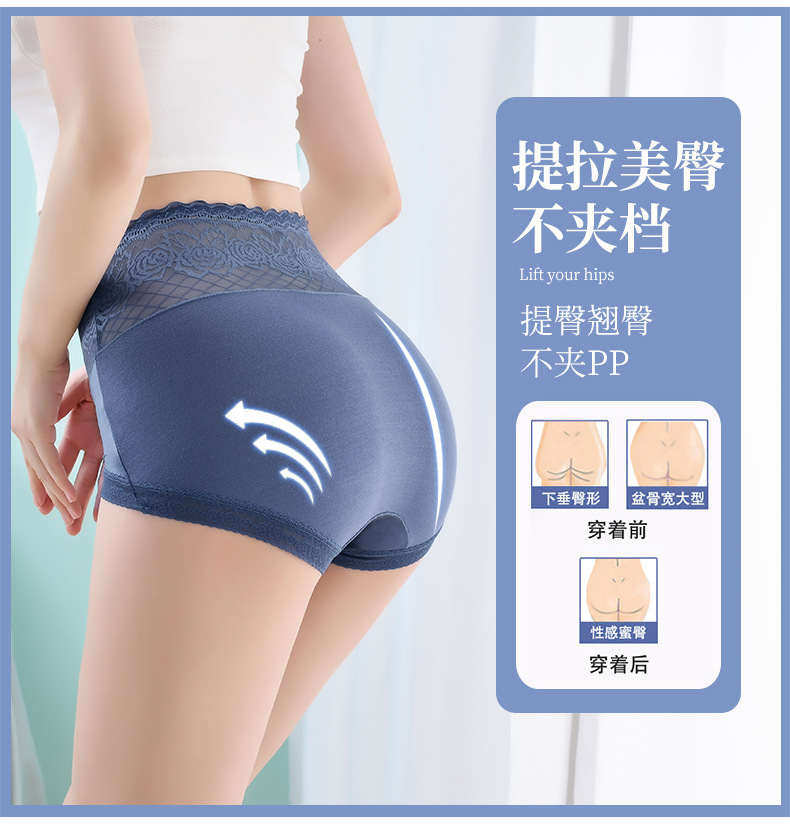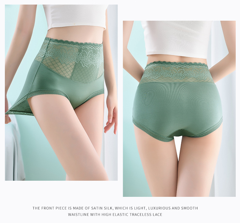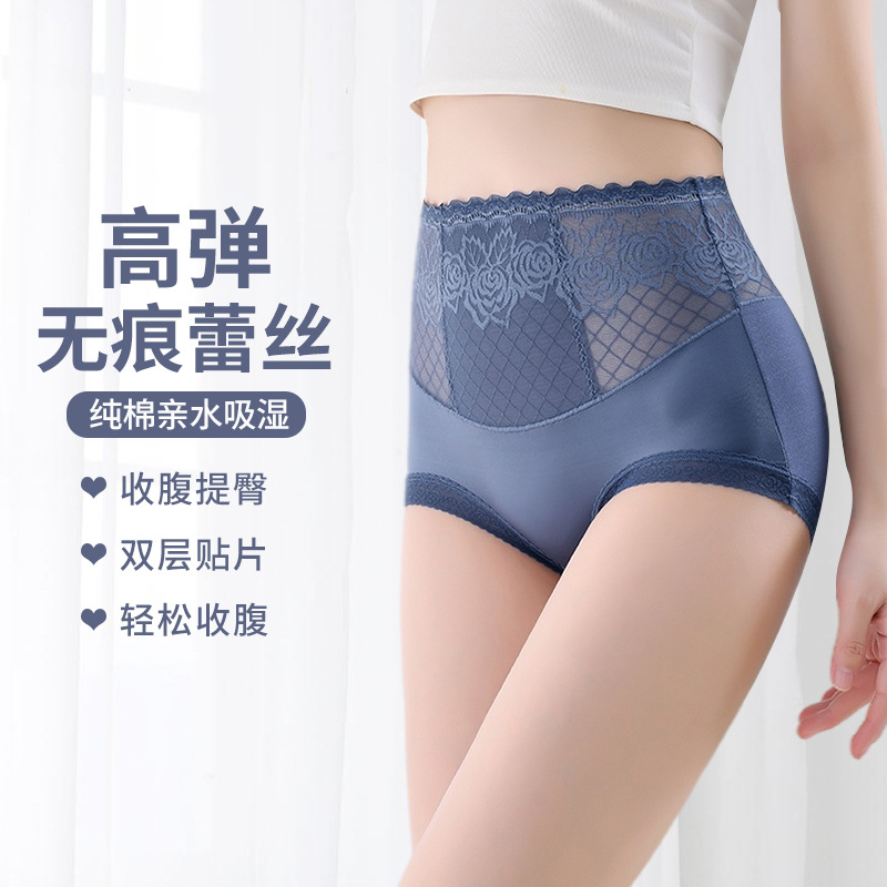 Летние бесшовные трусики с высокой эластичностью и кружевом для женщин, с подкладкой из чистого хлопка, влагоотводящим модалом, эффектом утяжки живота и подтягивания ягодиц.
