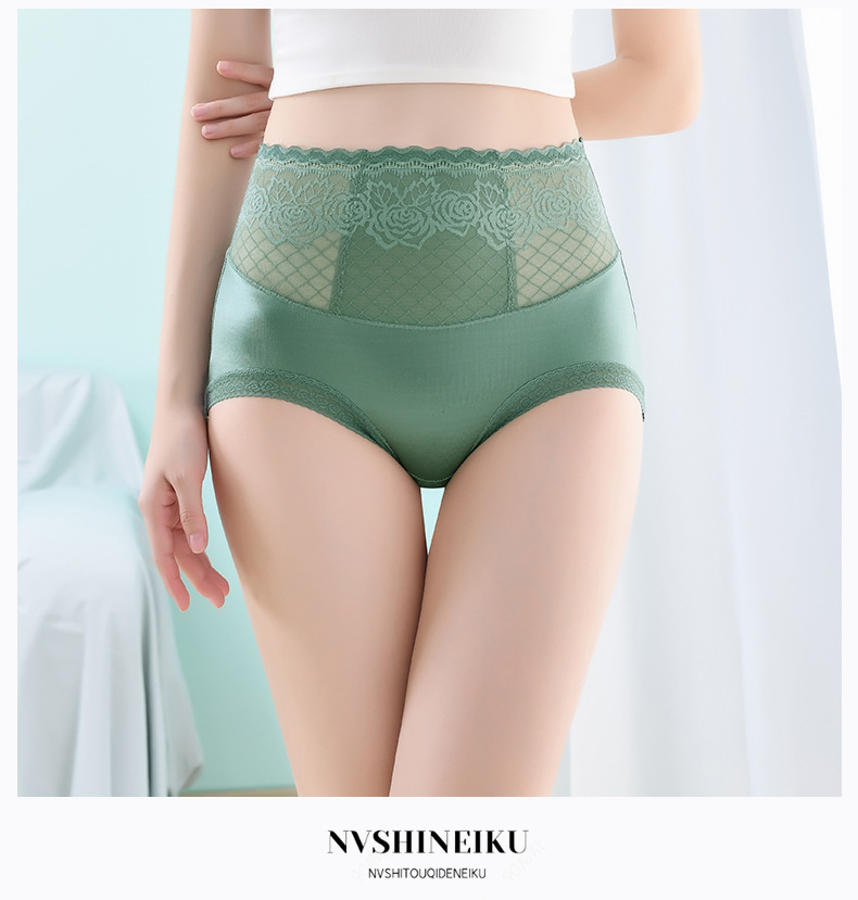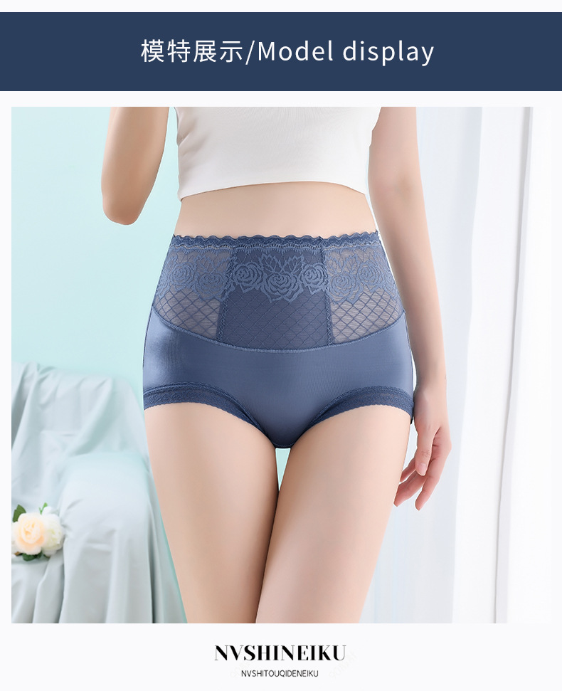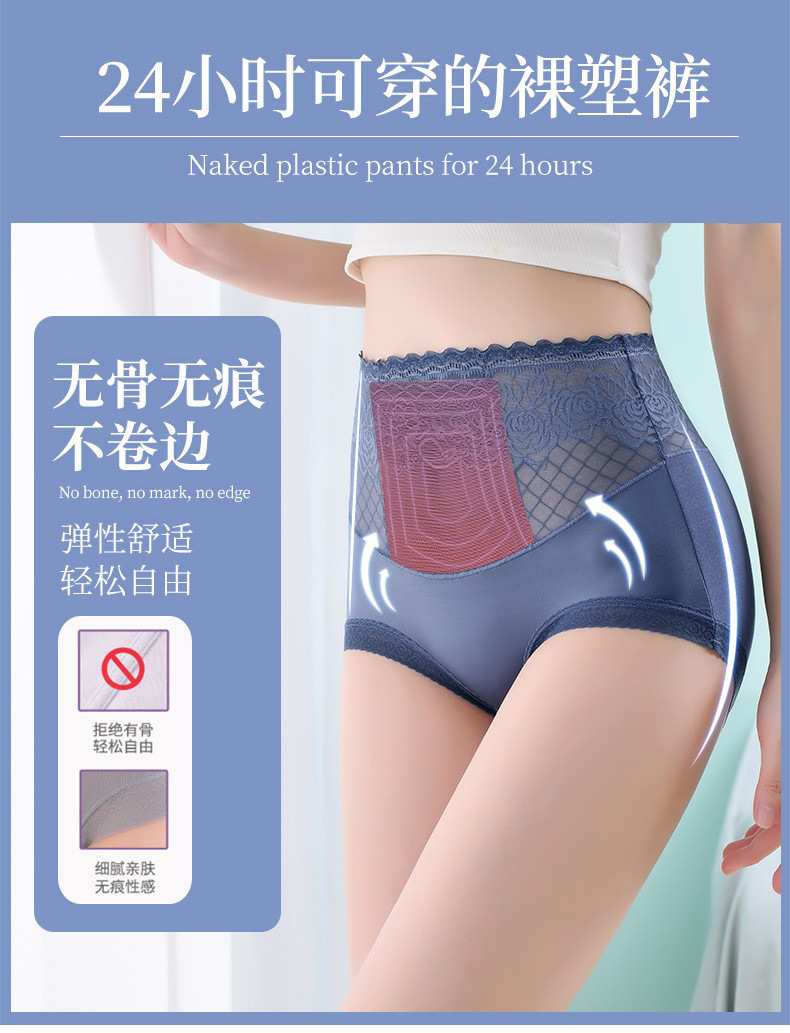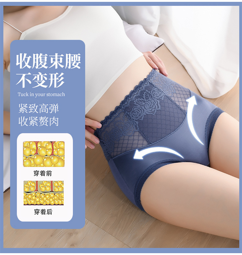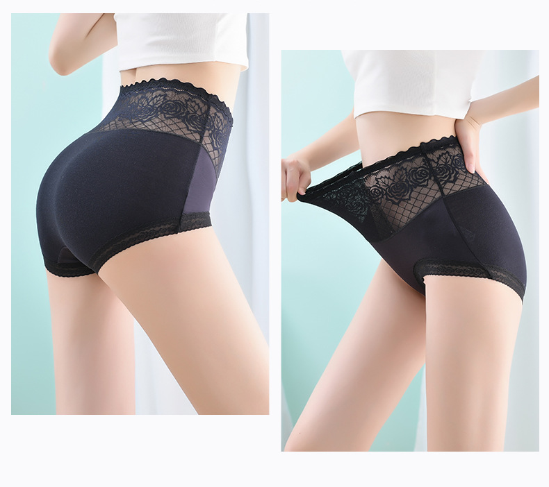 Летние бесшовные трусики с высокой эластичностью и кружевом для женщин, с подкладкой из чистого хлопка, влагоотводящим модалом, эффектом утяжки живота и подтягивания ягодиц.