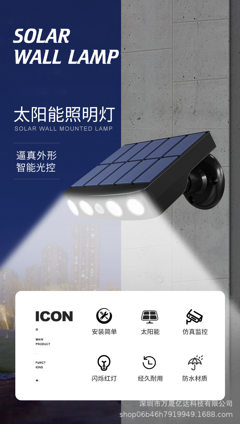 Солнечный уличный фонарь Искусственная камера 4LED Мониторинговый свет Сельское наружное освещение Датчик уличного освещения