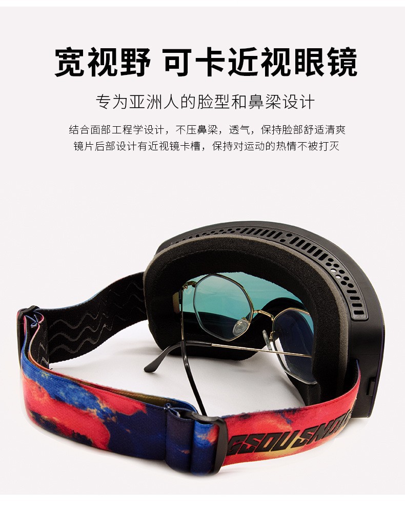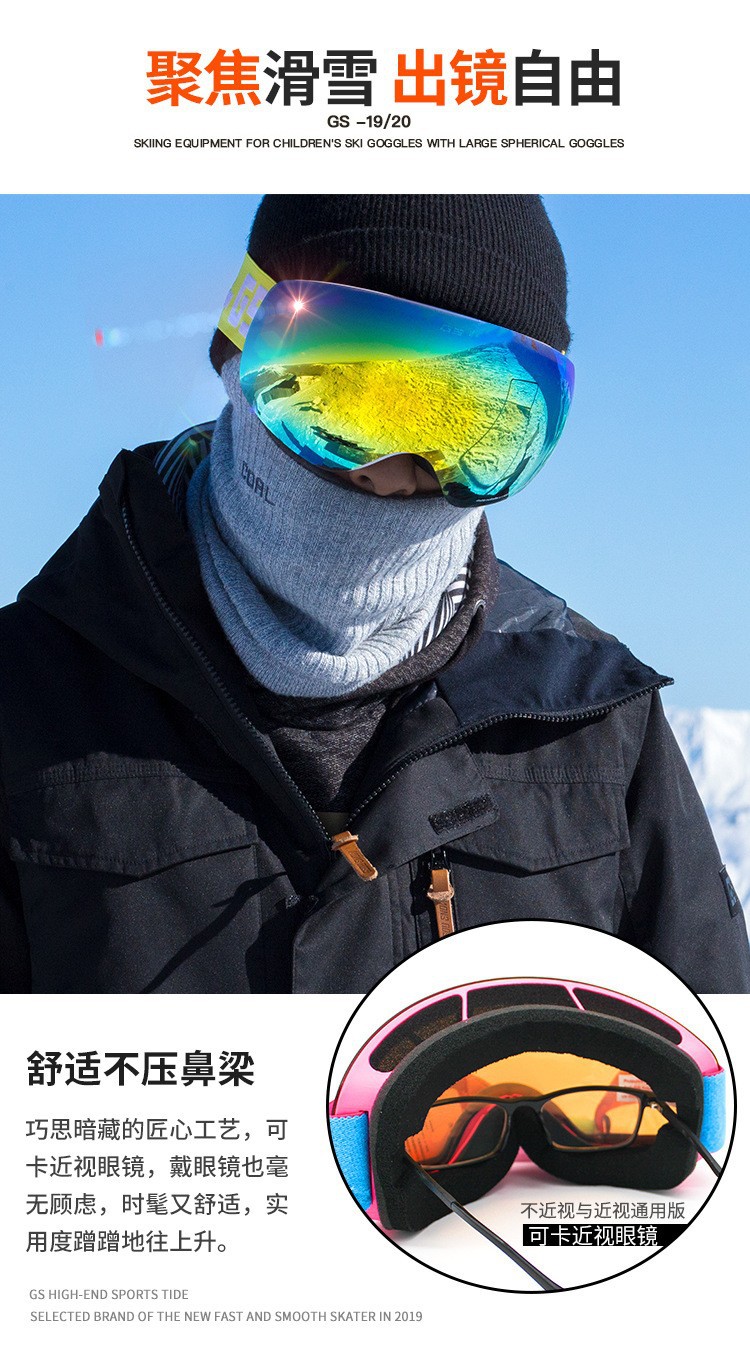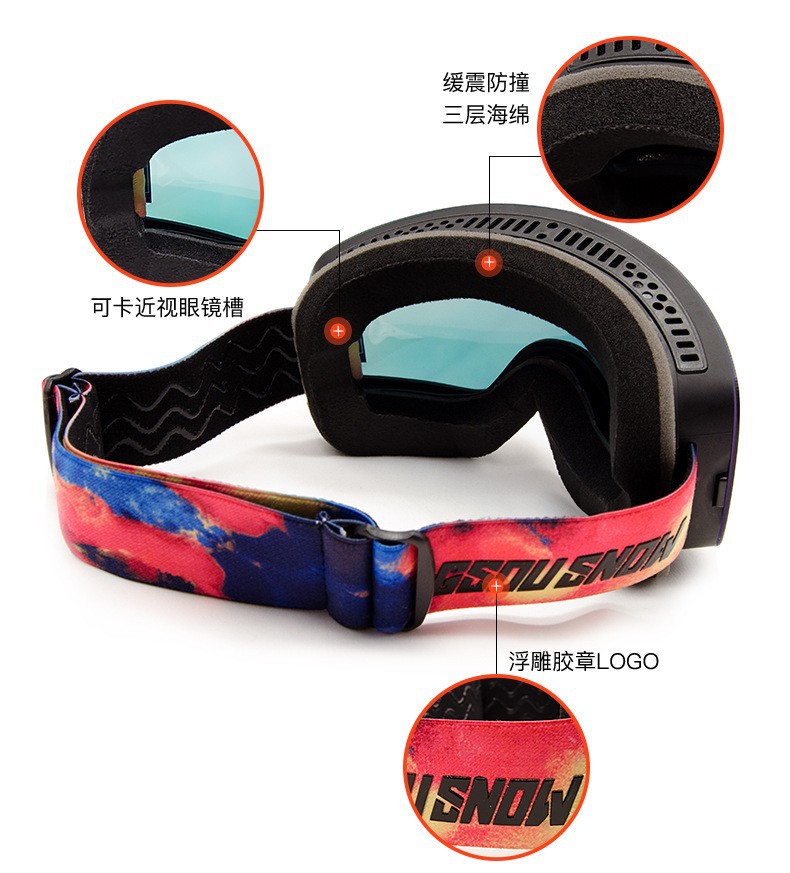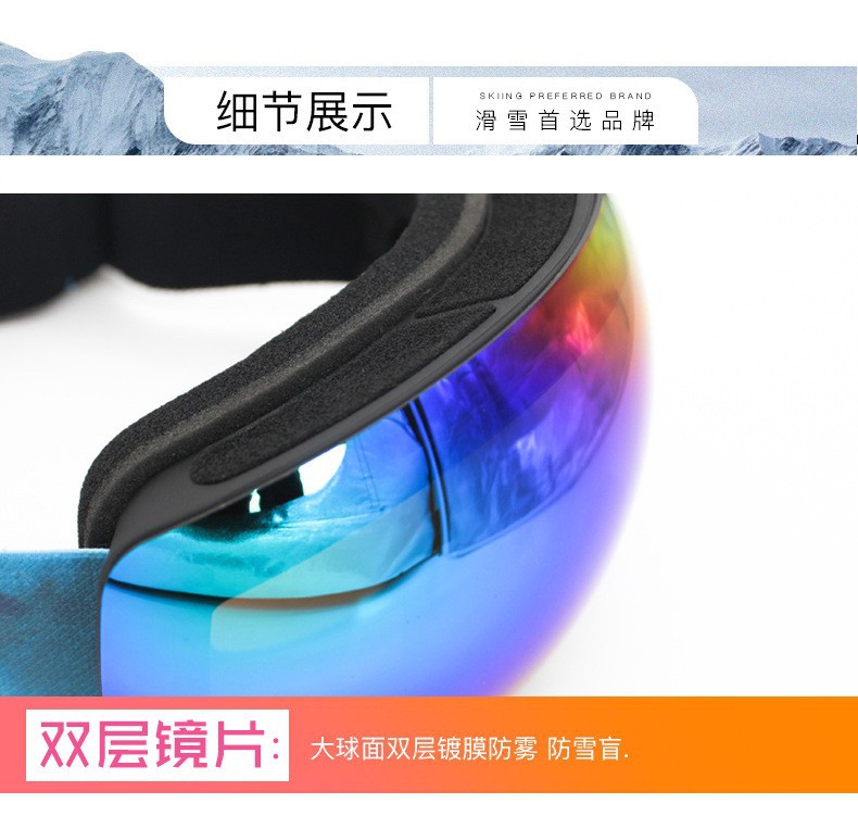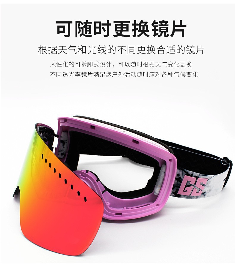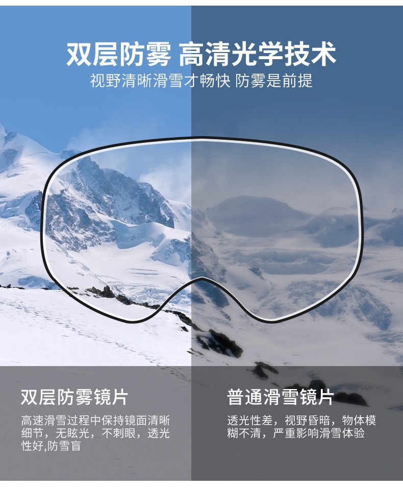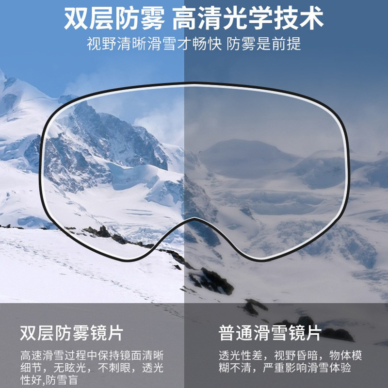 滑雪镜成人可带眼镜双层防雾高清磁吸镜片登山滑雪户外护目镜儿童