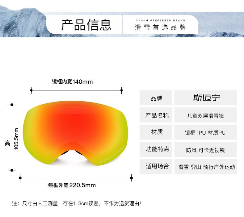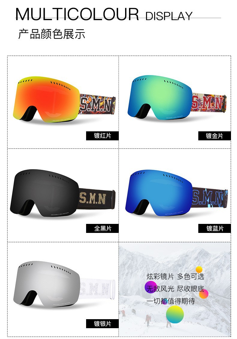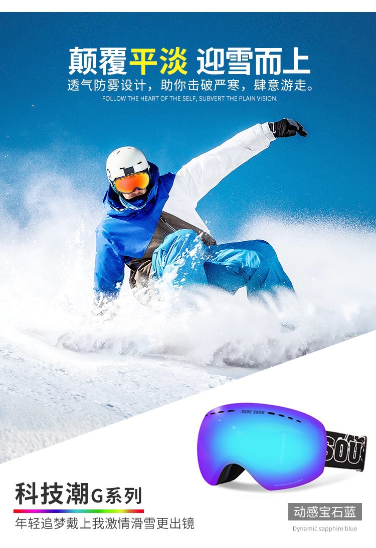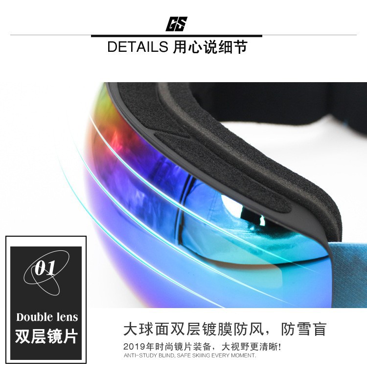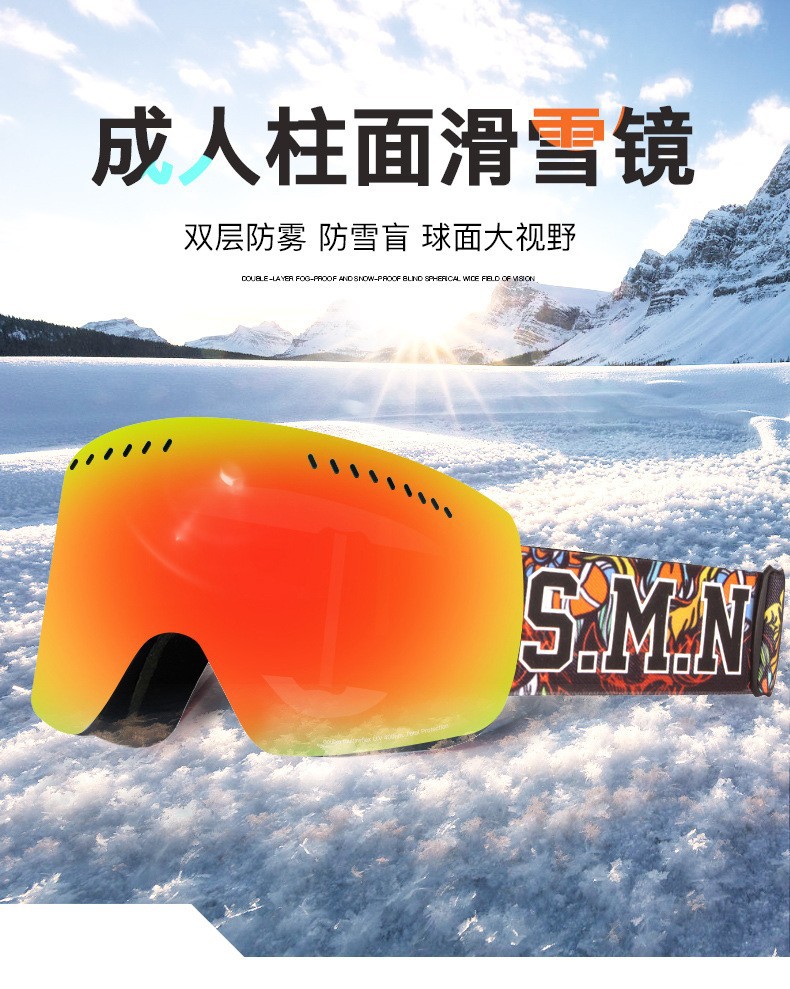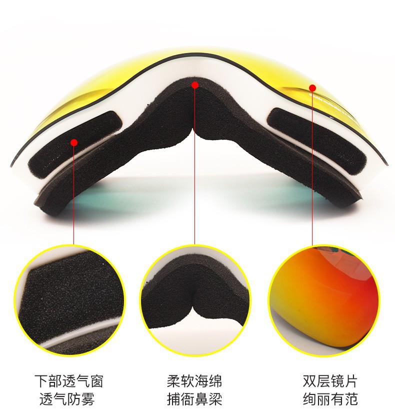 滑雪镜成人可带眼镜双层防雾高清磁吸镜片登山滑雪户外护目镜儿童