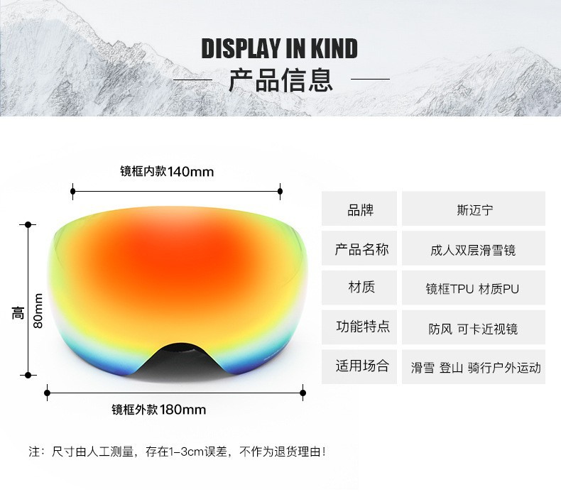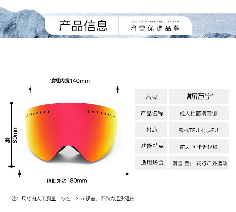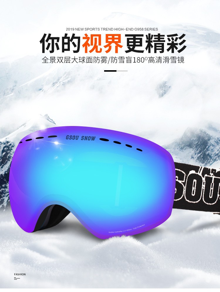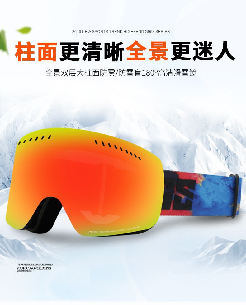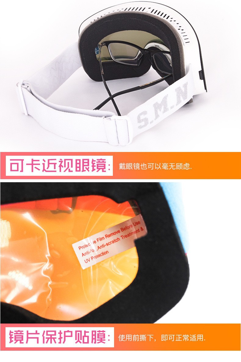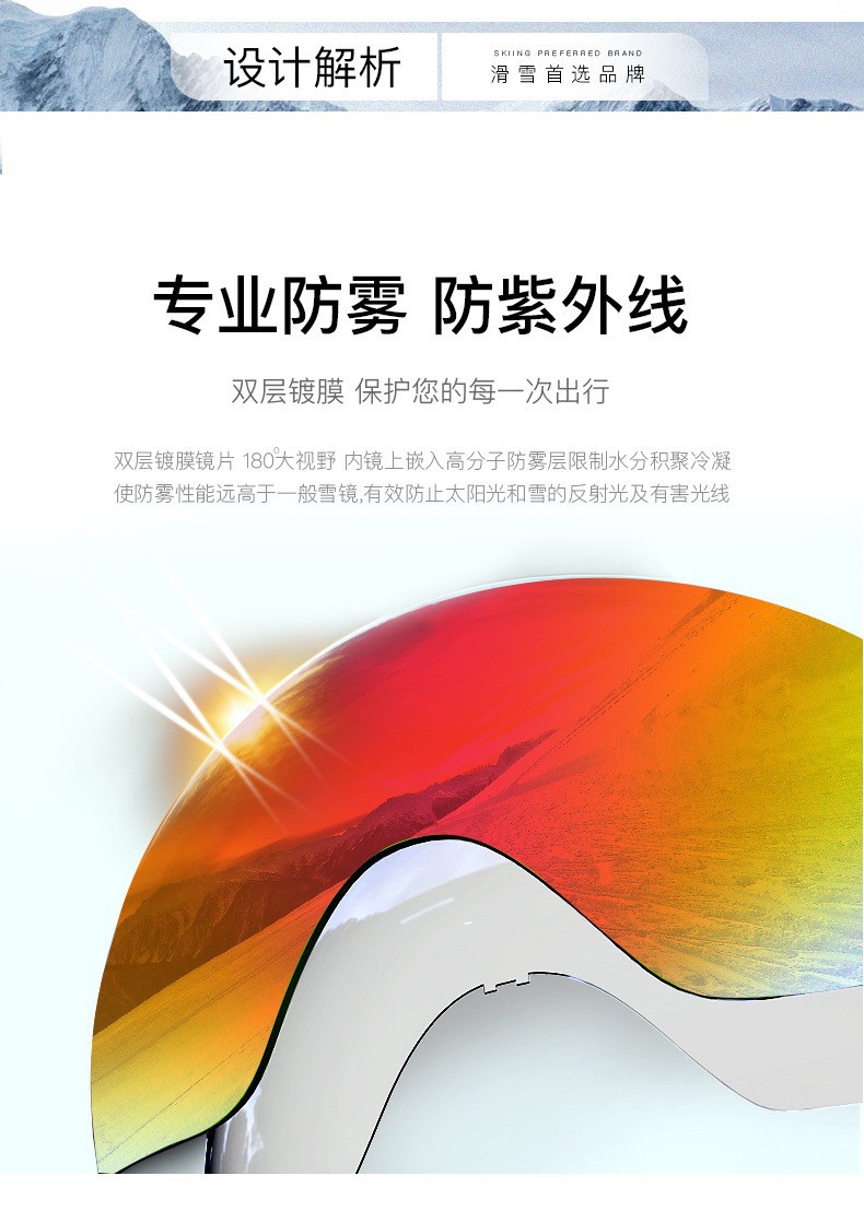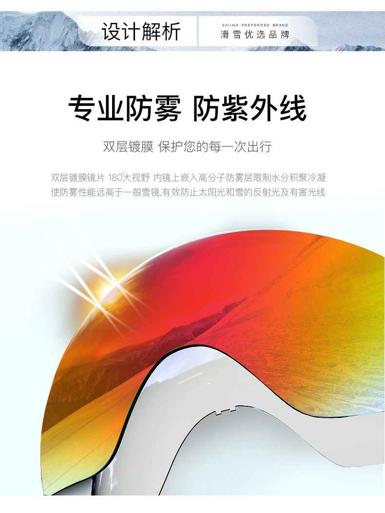 滑雪镜成人可带眼镜双层防雾高清磁吸镜片登山滑雪户外护目镜儿童