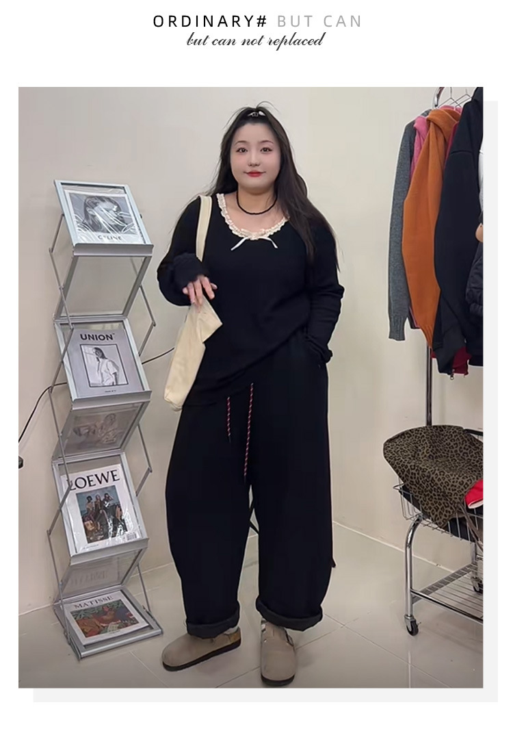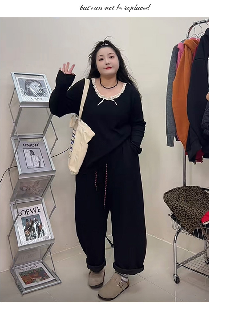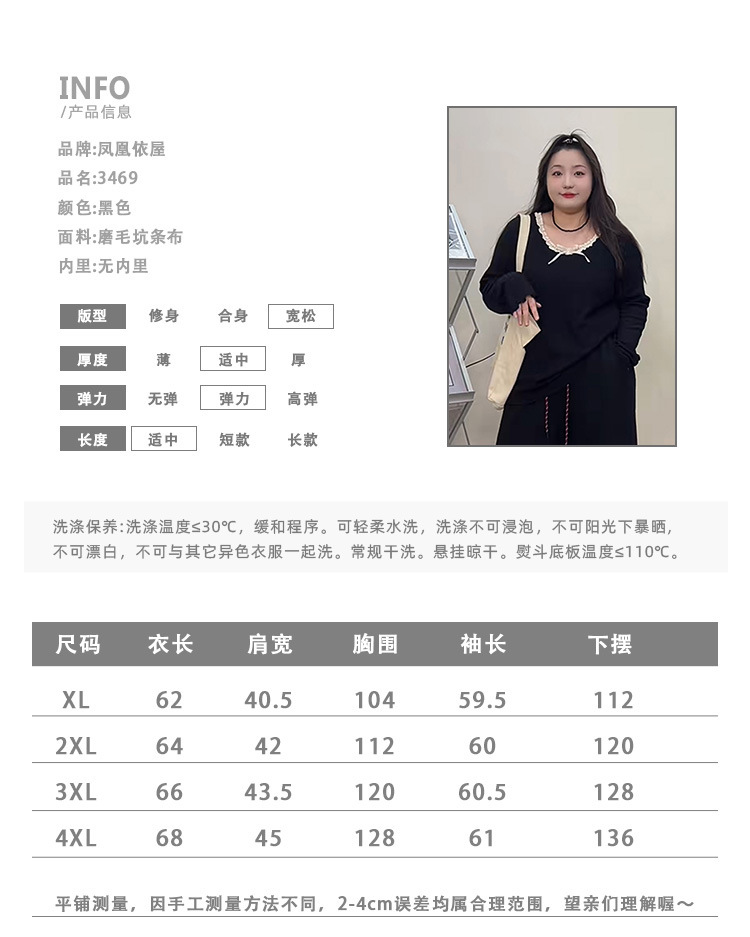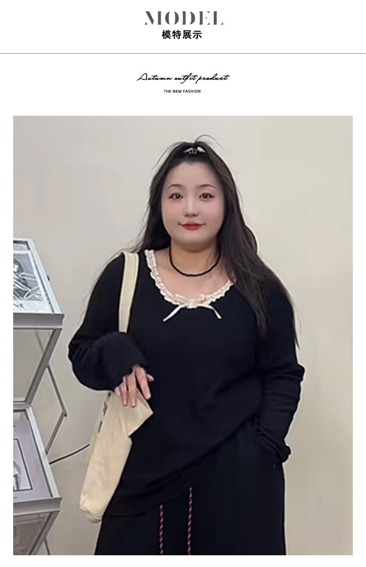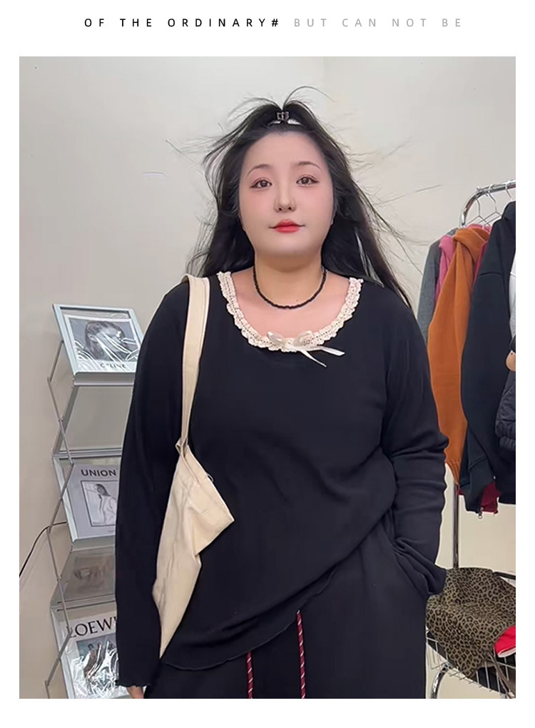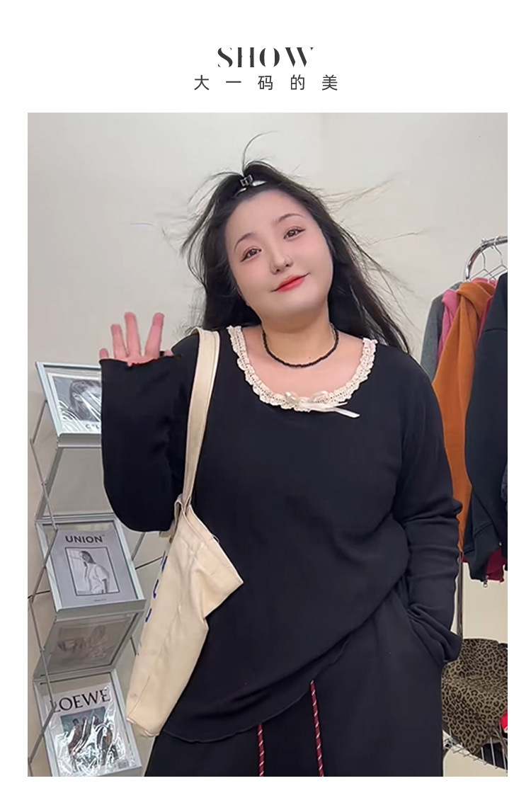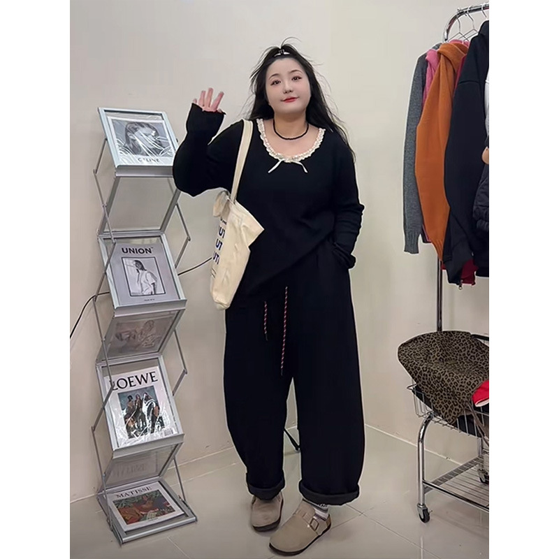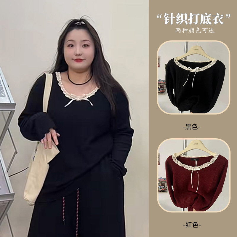 240 фунтов толстый мм в топе с бантом большого размера женщина тонкая и покрытая плотью дизайн трикотажный свитер и нижняя одежда 3469