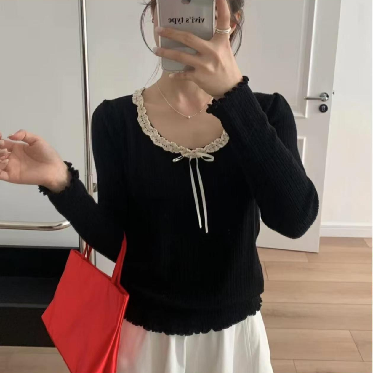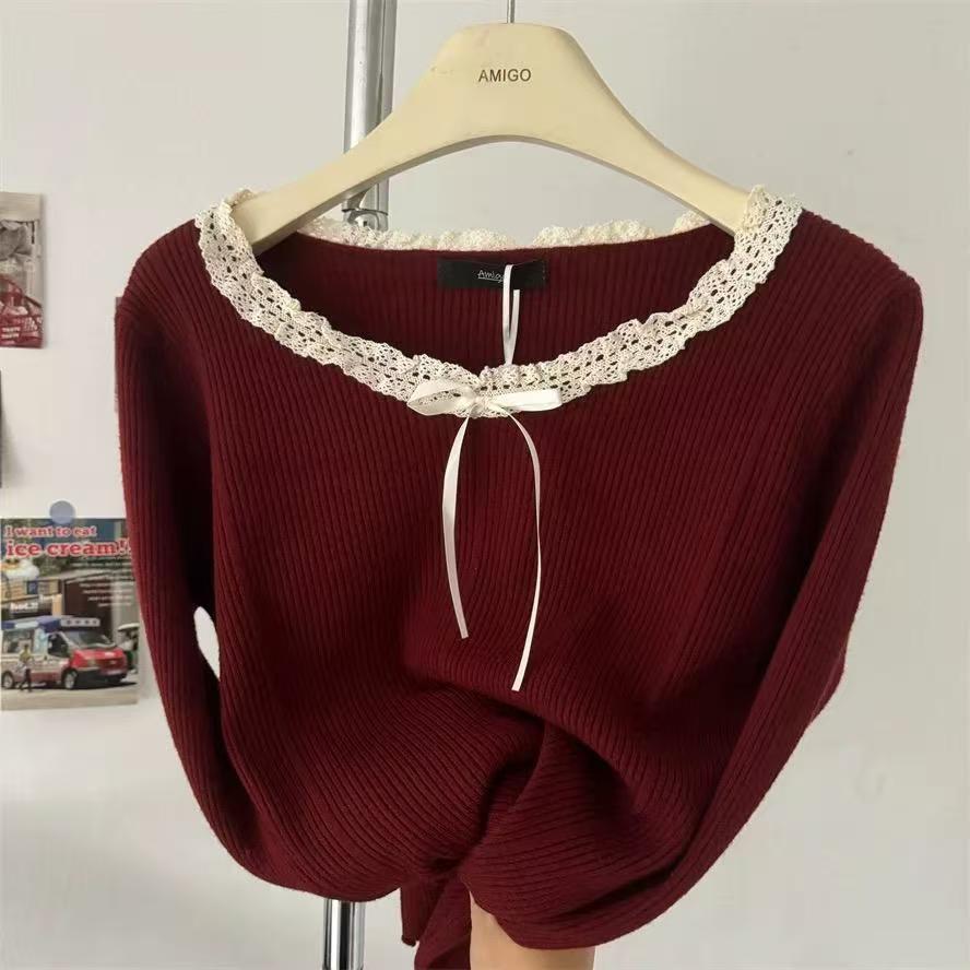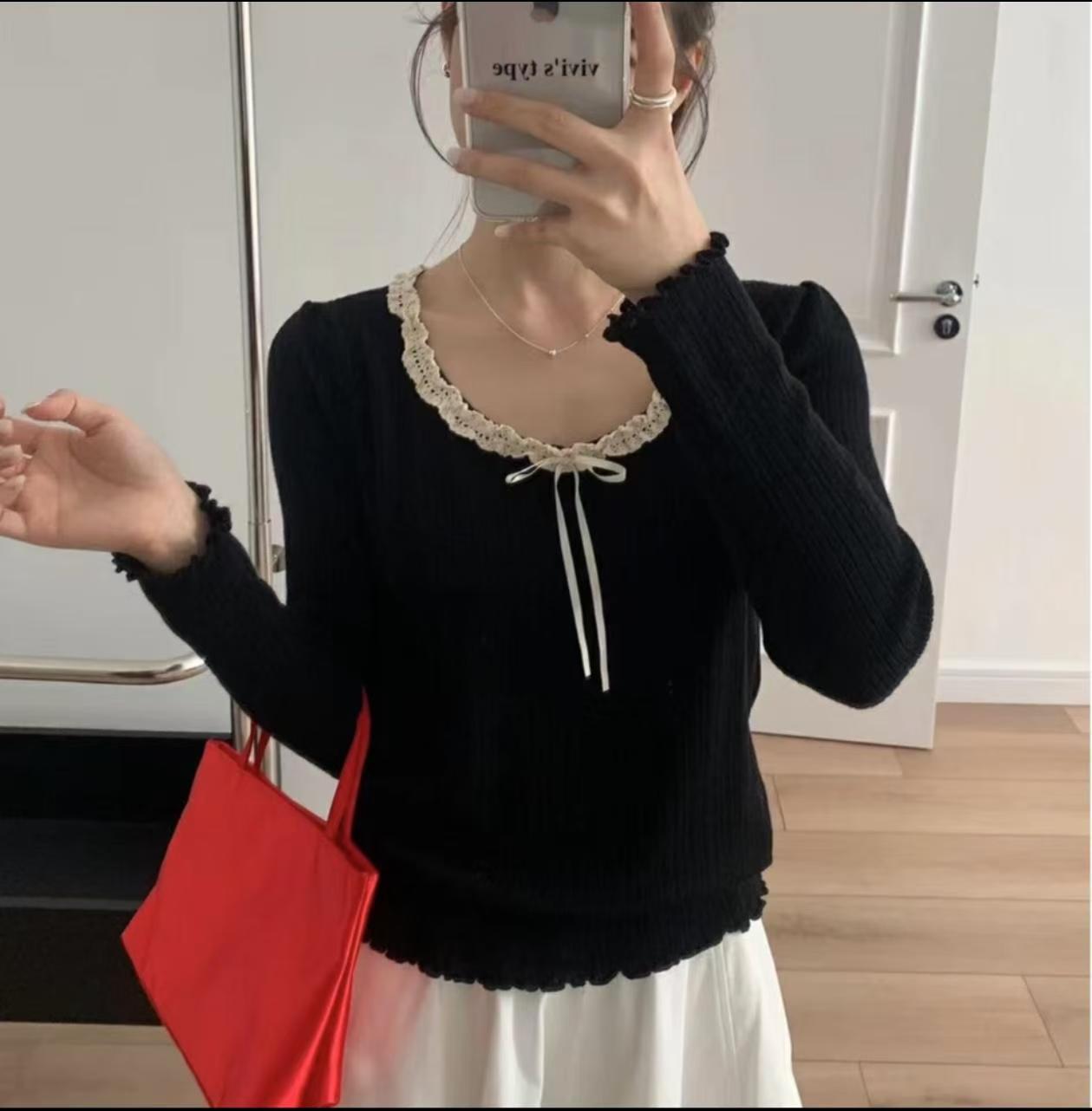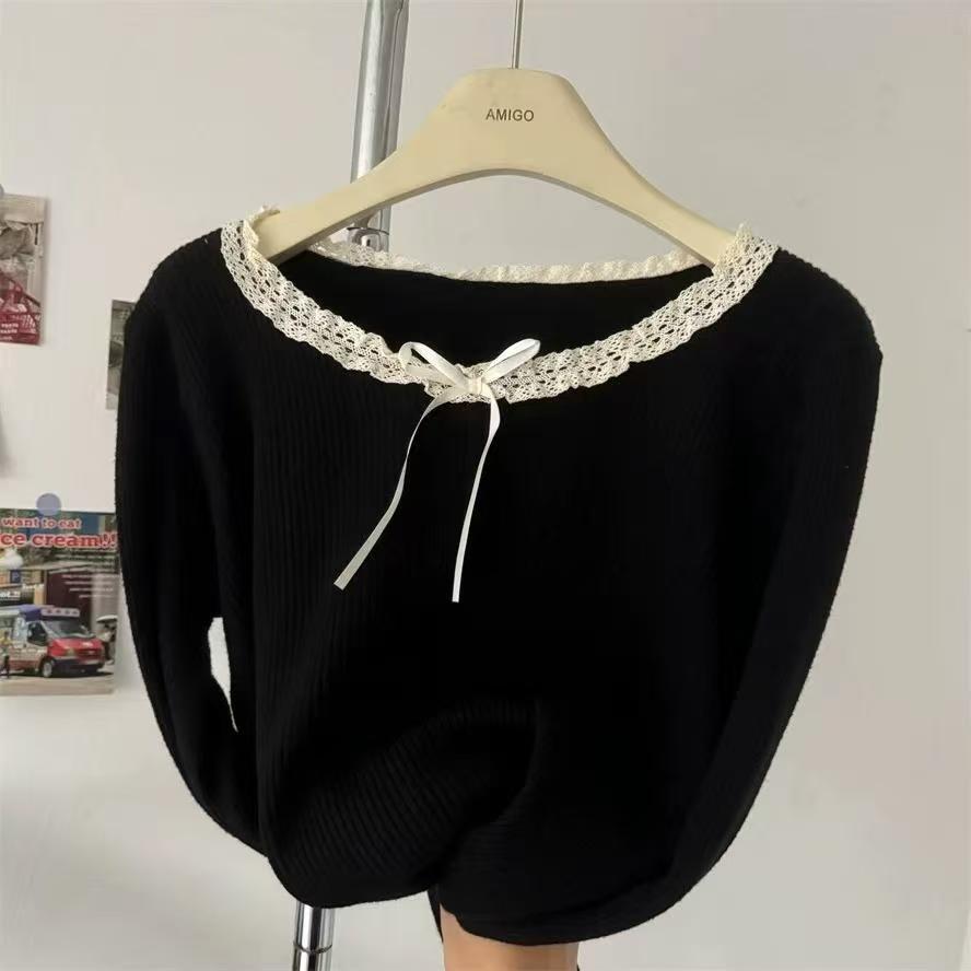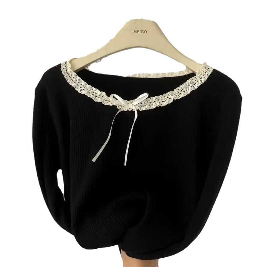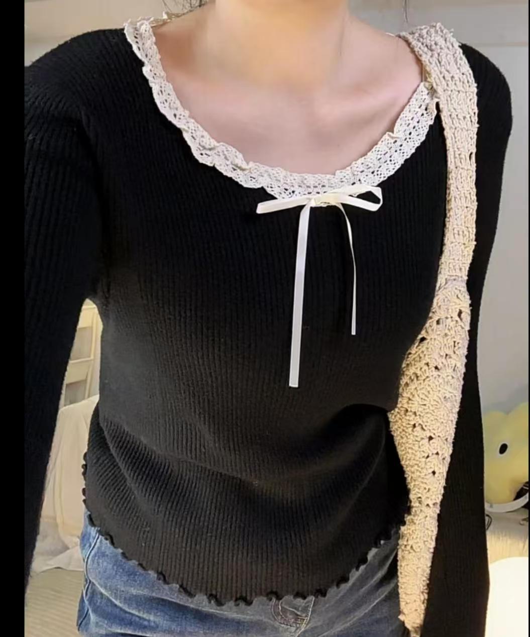 240 фунтов толстый мм в топе с бантом большого размера женщина тонкая и покрытая плотью дизайн трикотажный свитер и нижняя одежда 3469